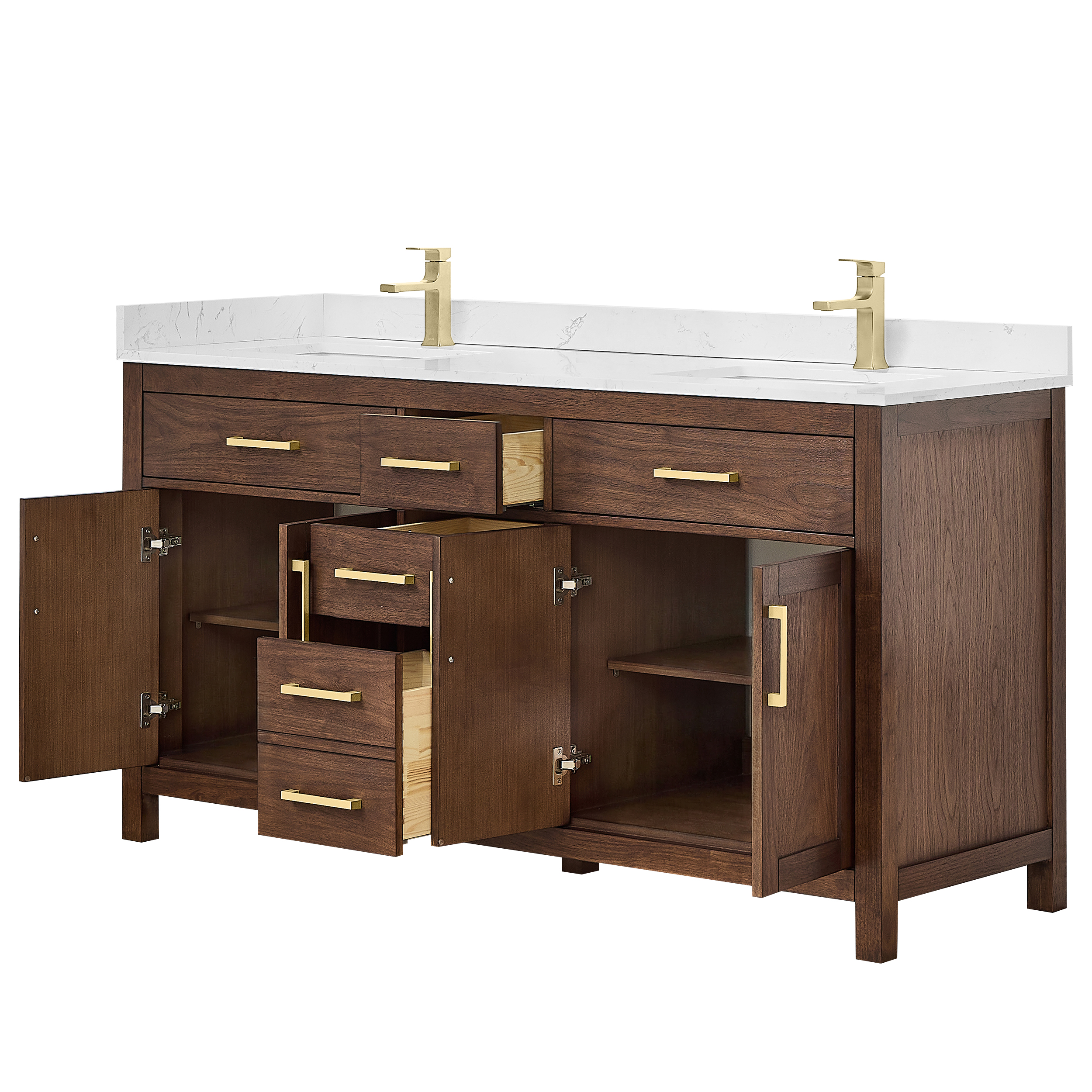 Beckett 66" Double Bathroom Vanity - Dark Walnut
