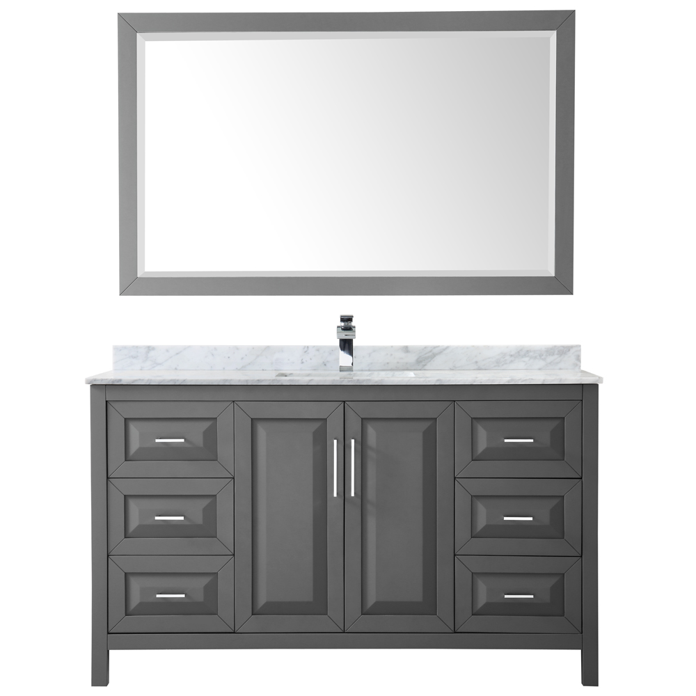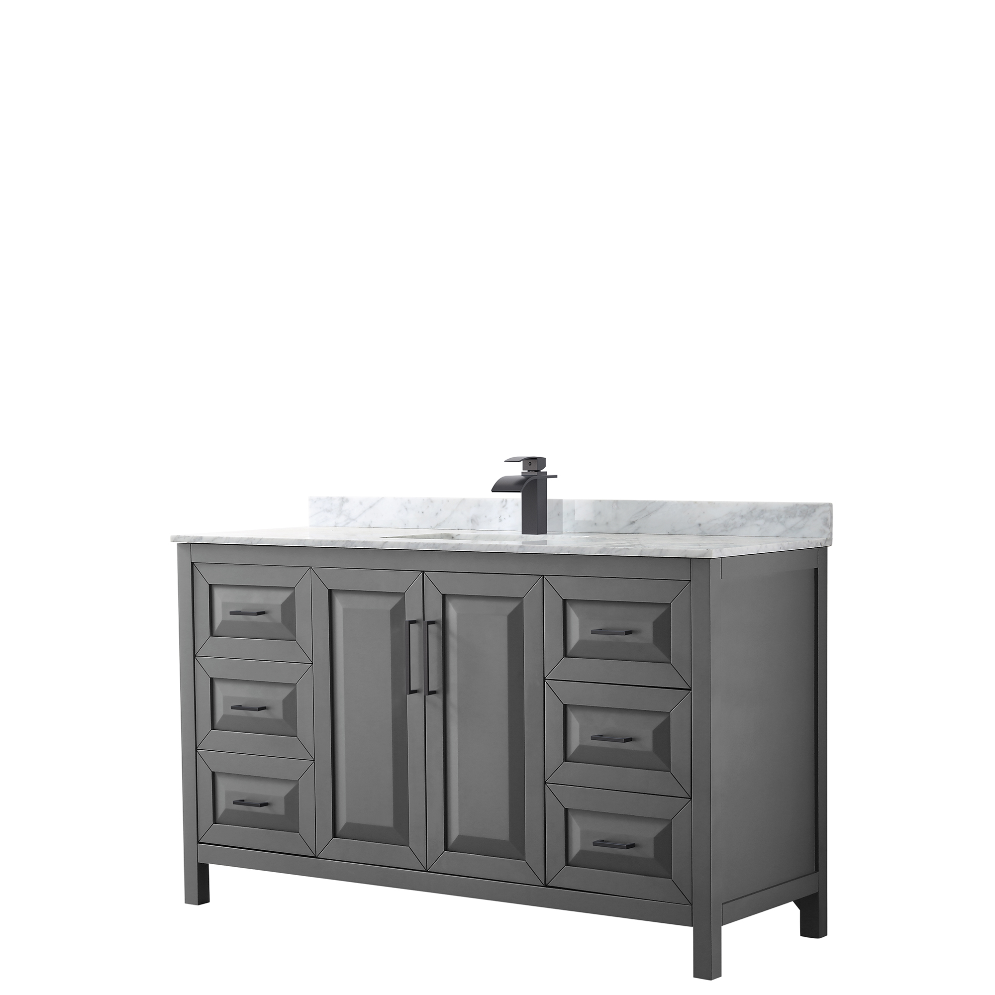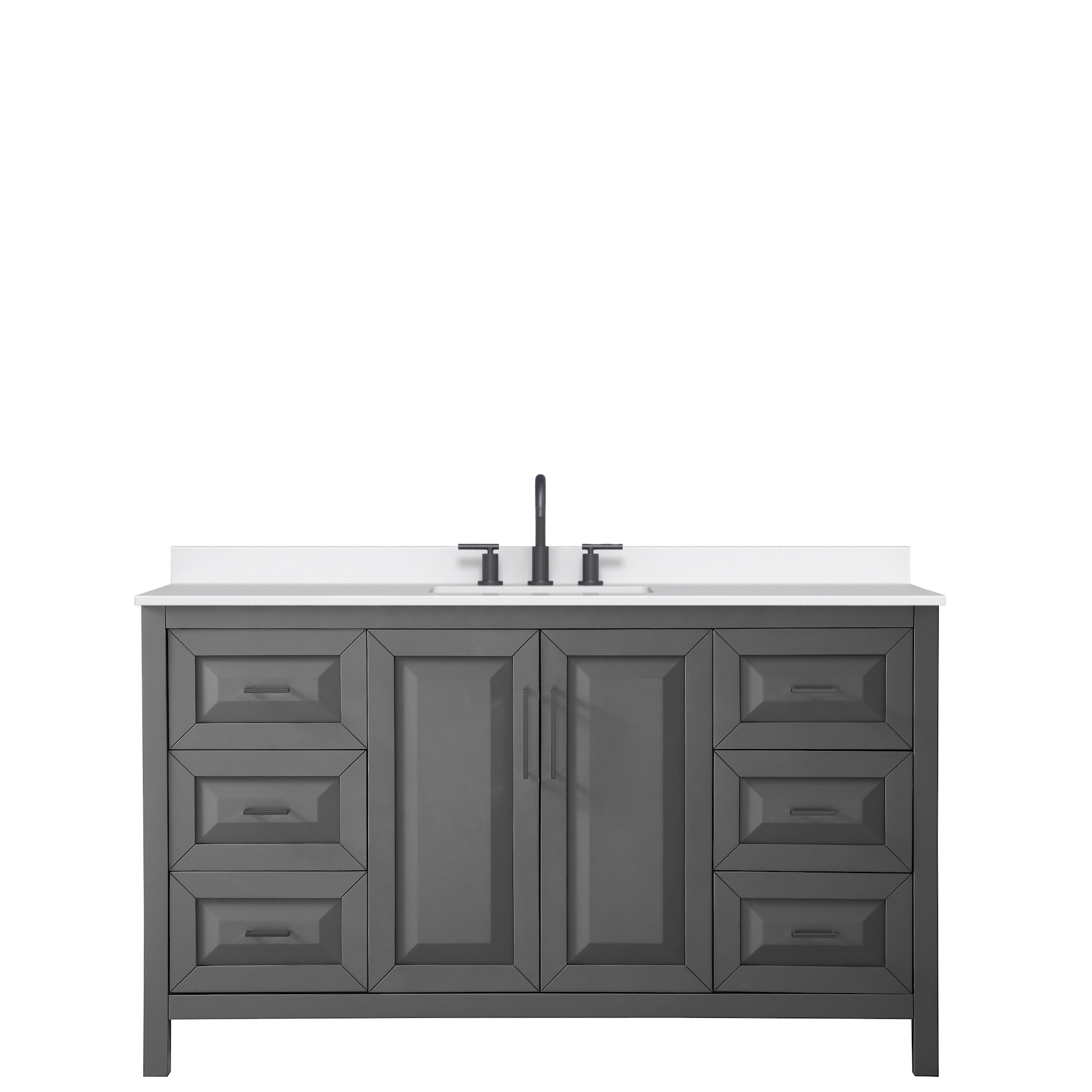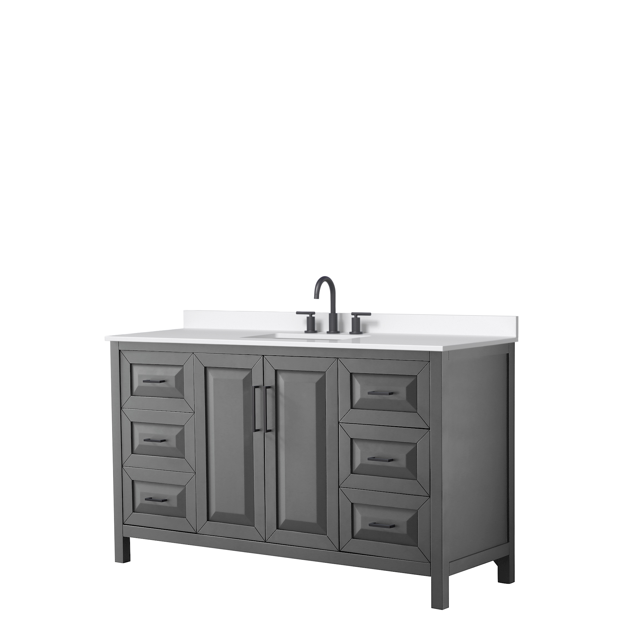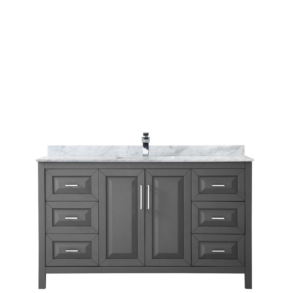The beautiful Daria collection vanities stand out in any bathroom with strong, clean lines, raised panels and elegant counters with square sinks. There's plenty of cabinet space, the fully extending drawers are dovetail construction, and polished chrome or matte black finish detailing completes the look. Daria vanities deftly combine the function of today with a nod to the elegance of the past. It's the new modern - classic styling with a contemporary twist.