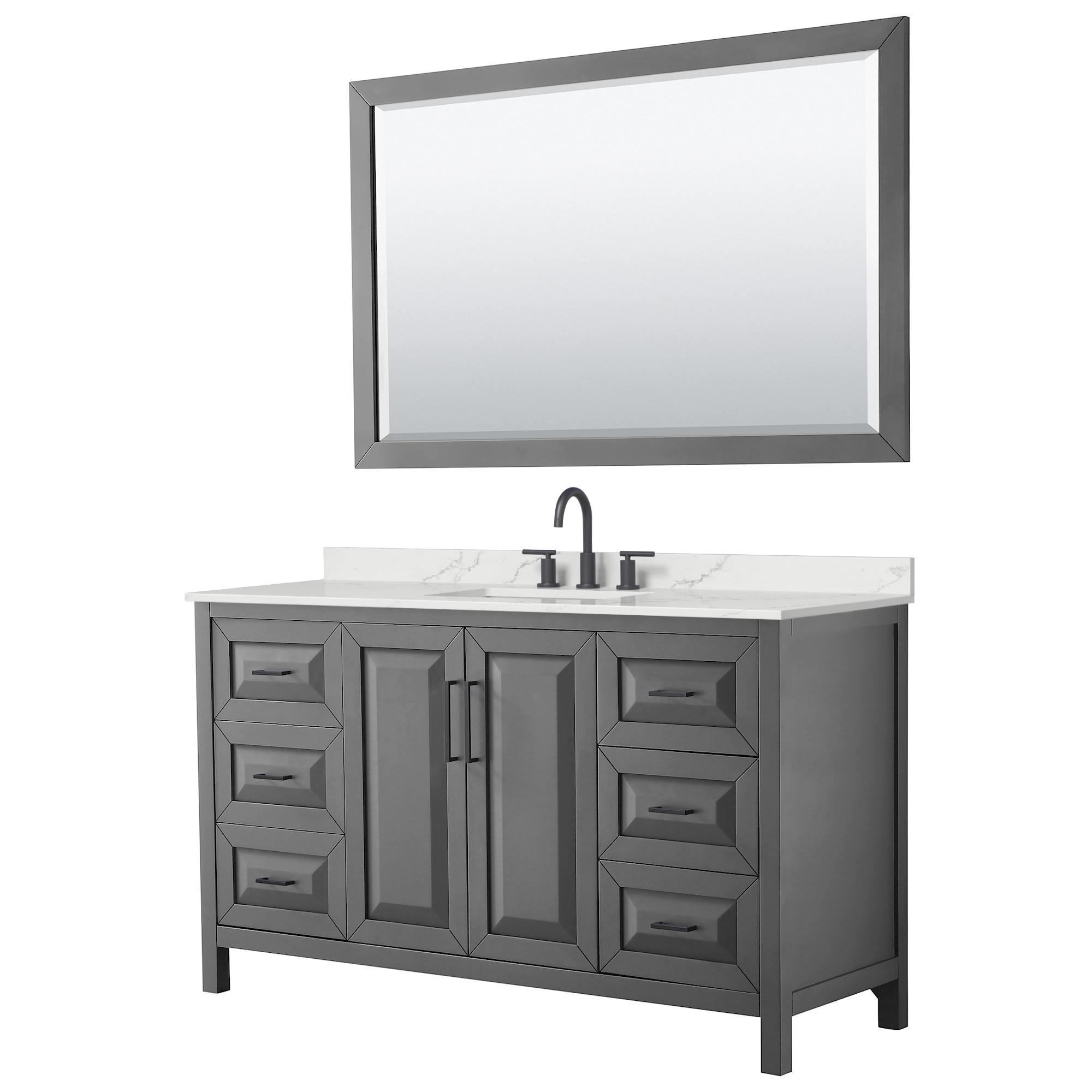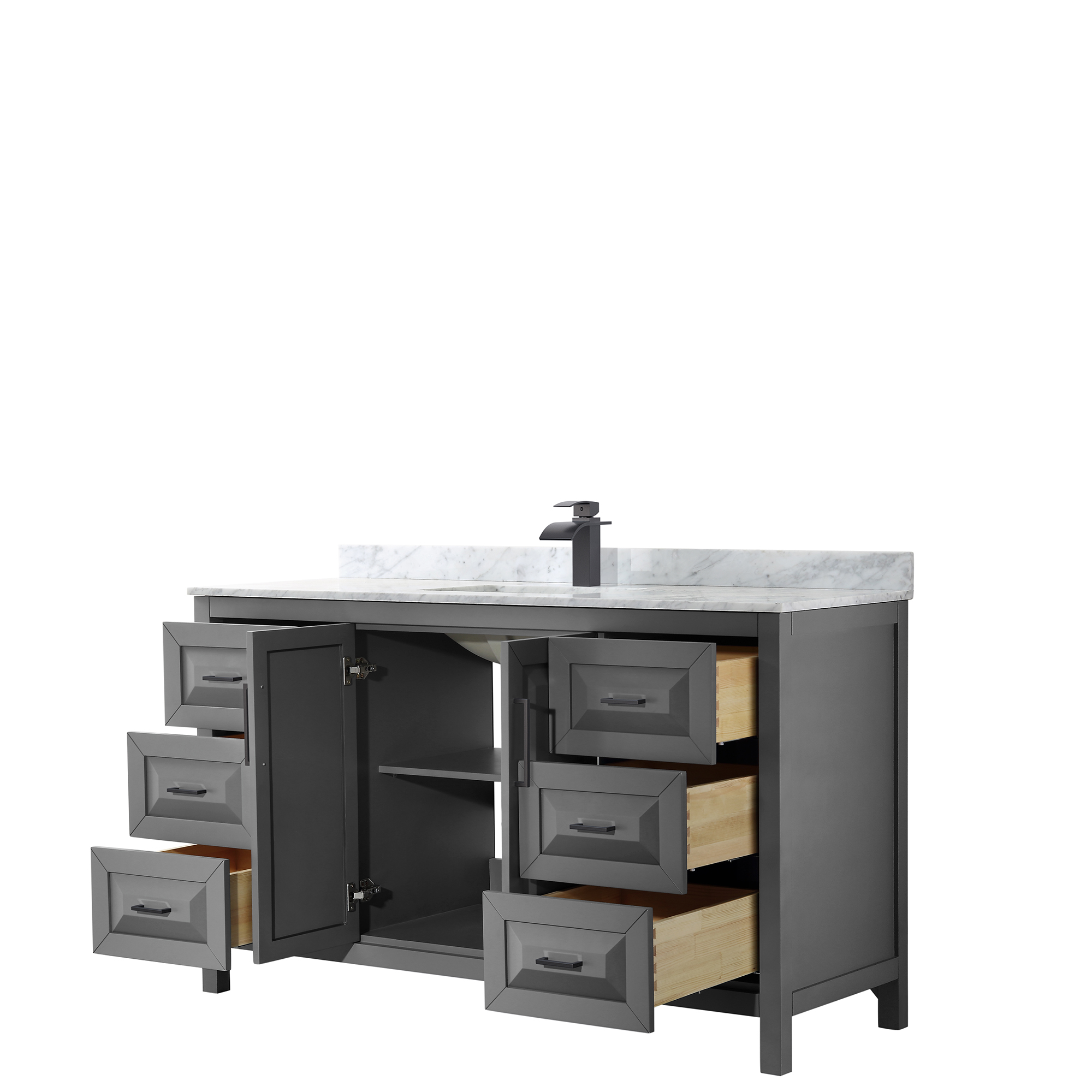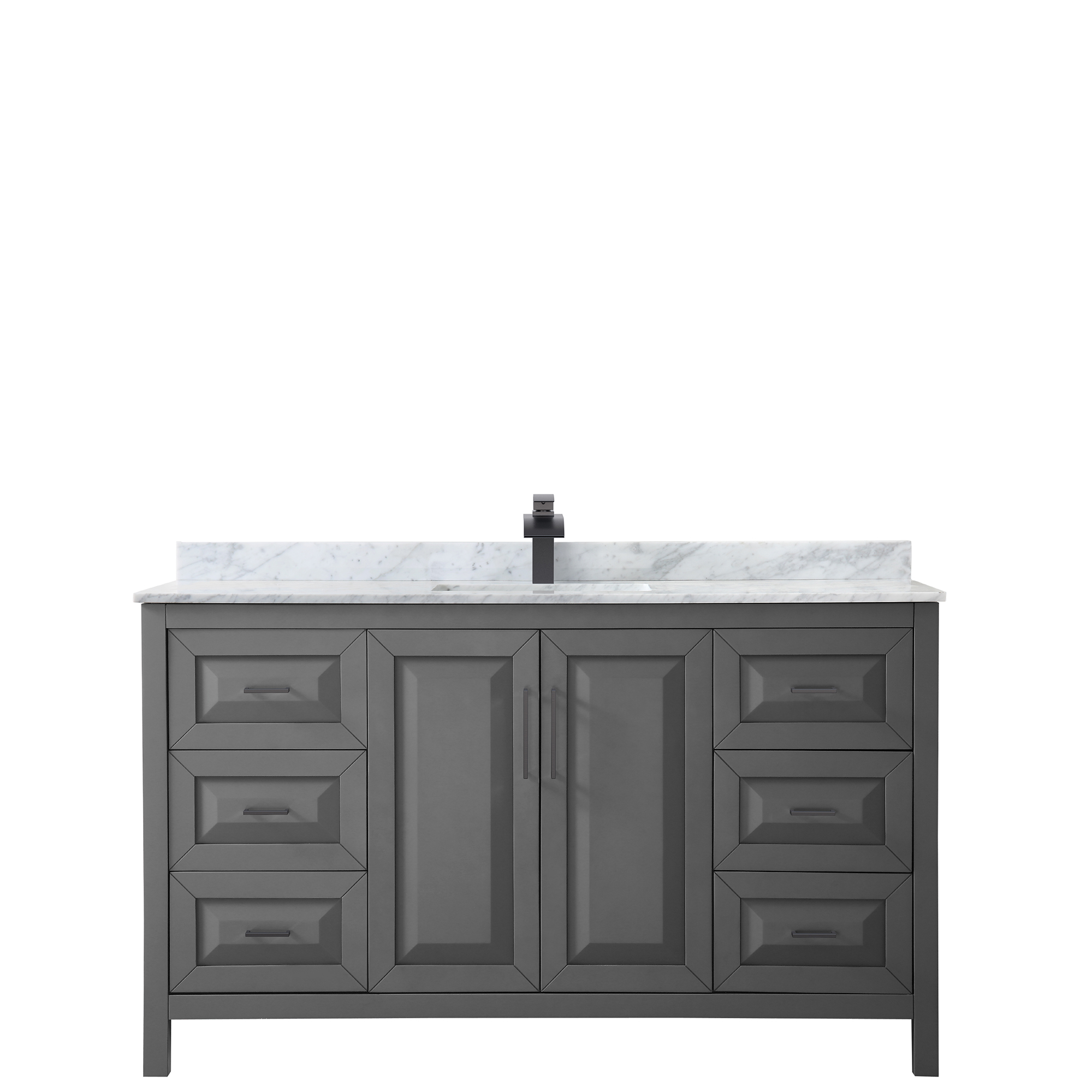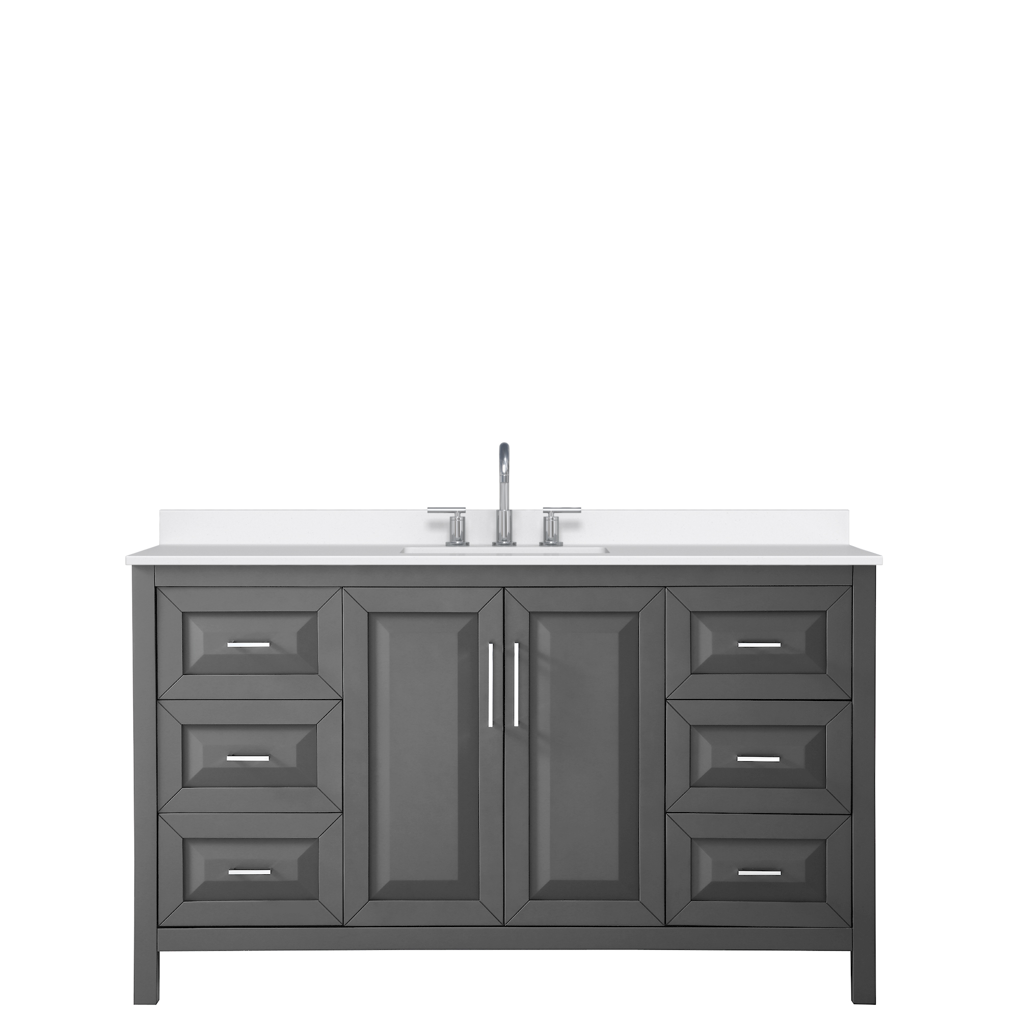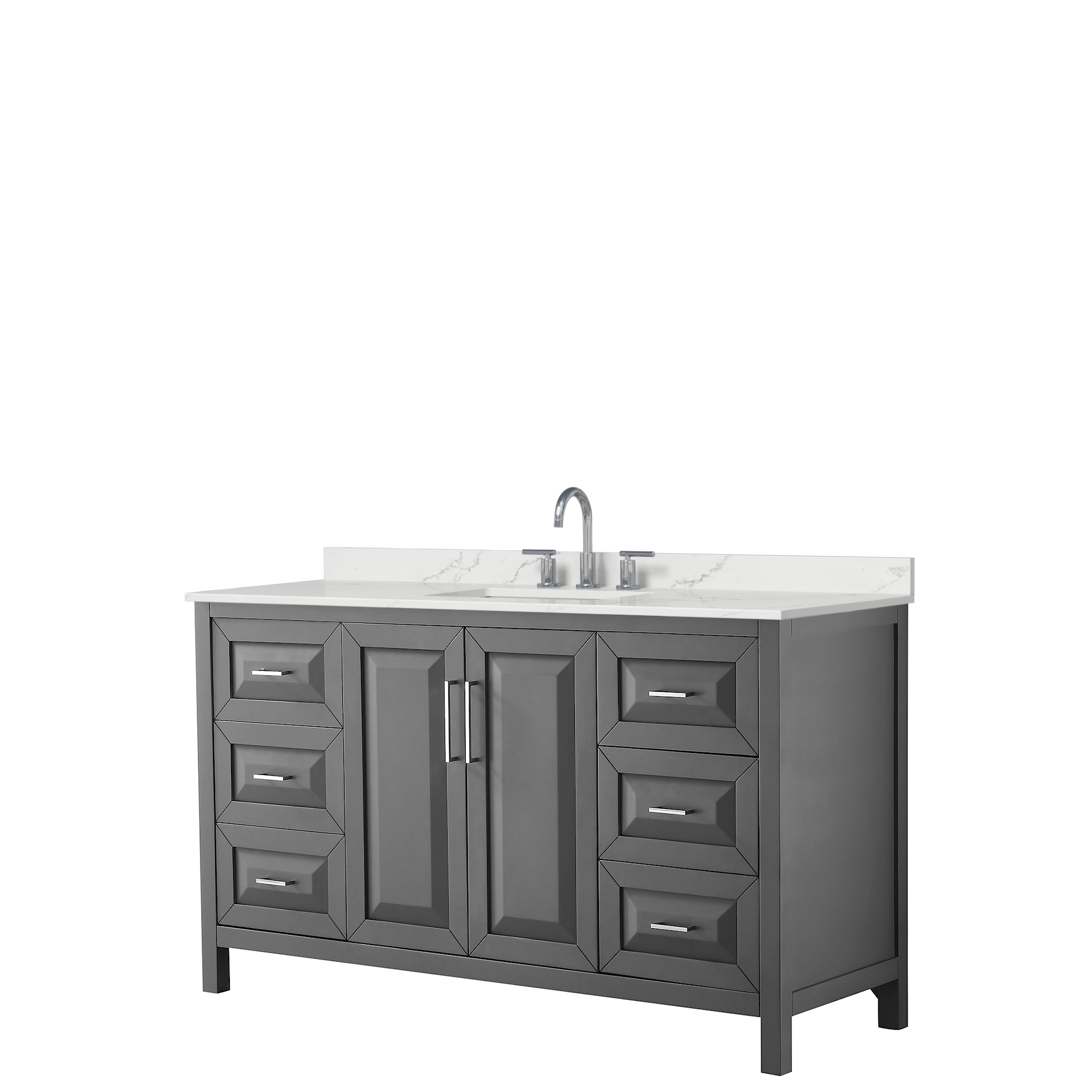 The beautiful Daria collection vanities stand out in any bathroom with strong, clean lines, raised panels and elegant counters with square sinks. There's plenty of cabinet space, the fully extending drawers are dovetail construction, and polished chrome or matte black finish detailing completes the look. Daria vanities deftly combine the function of today with a nod to the elegance of the past. It's the new modern - classic styling with a contemporary twist.