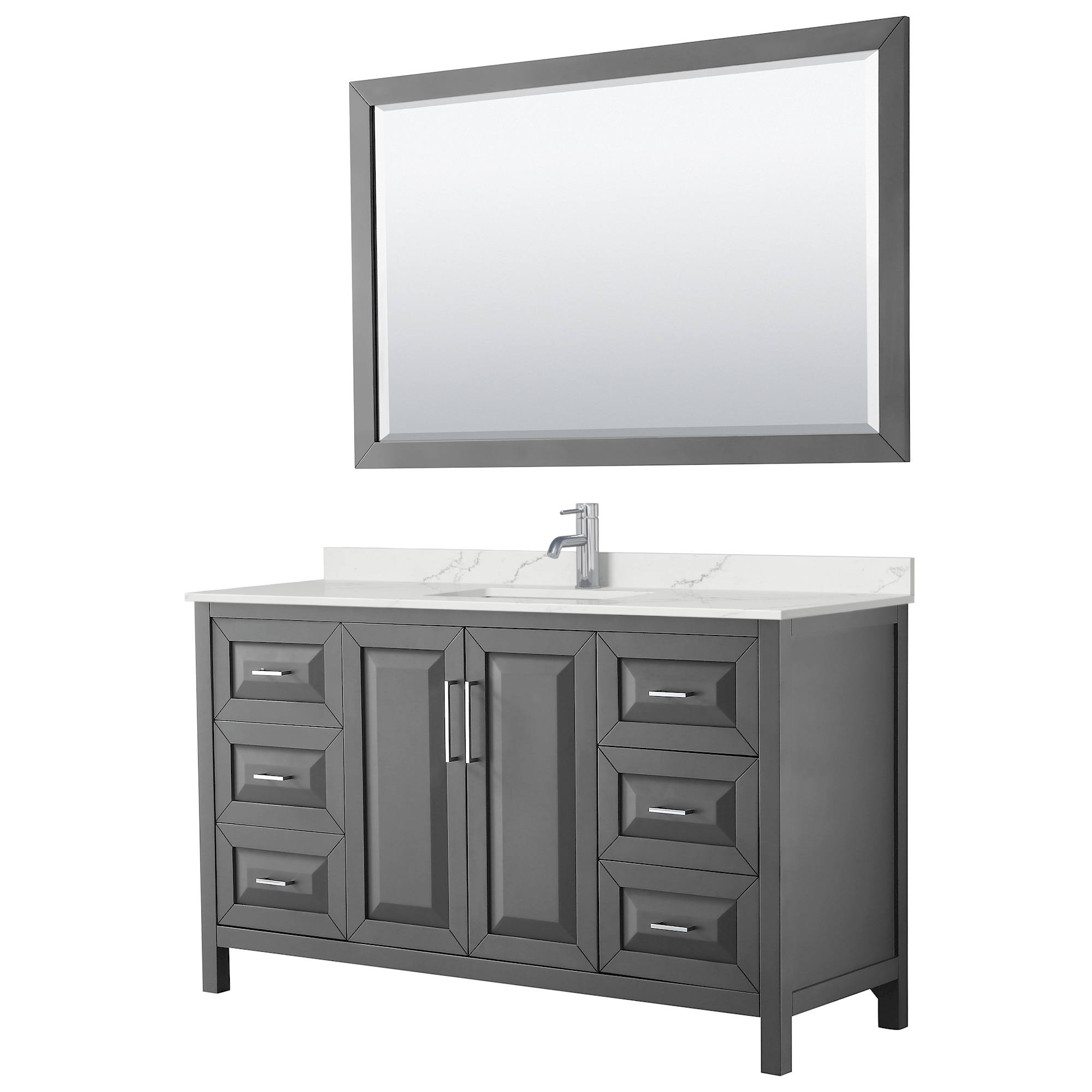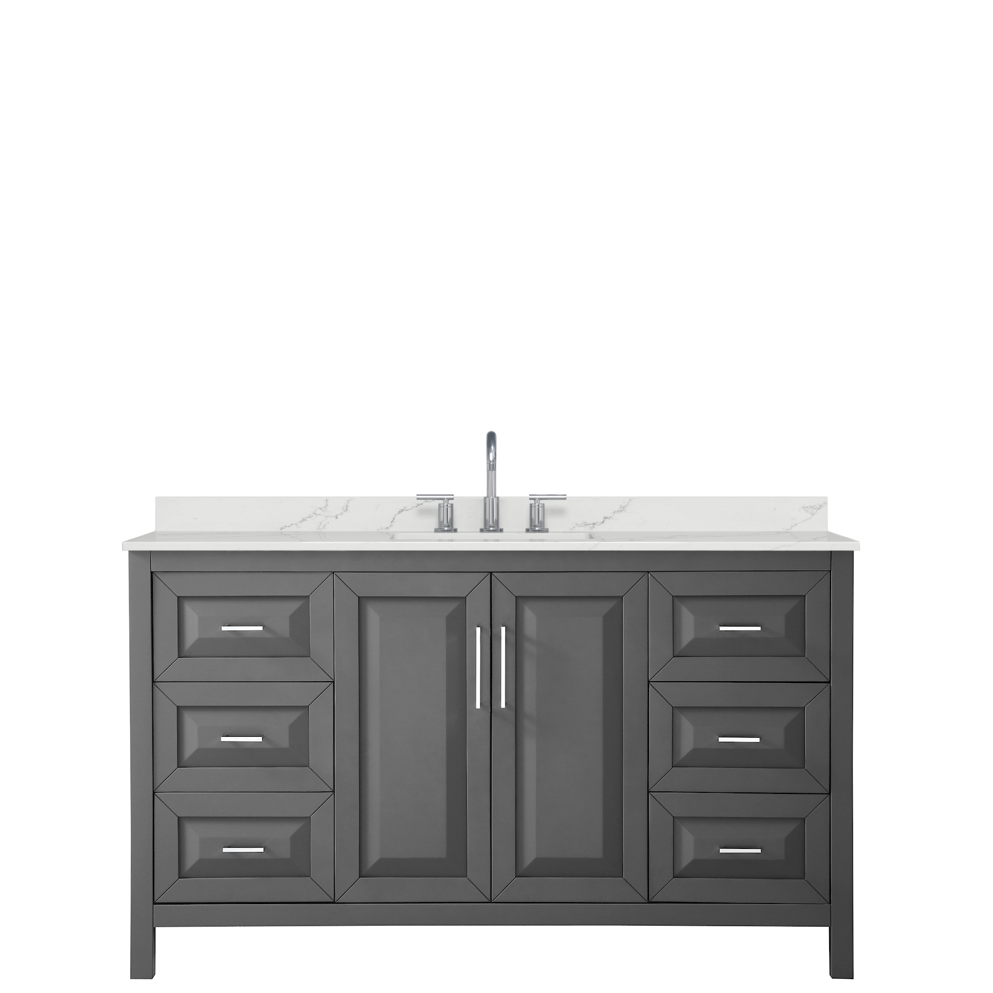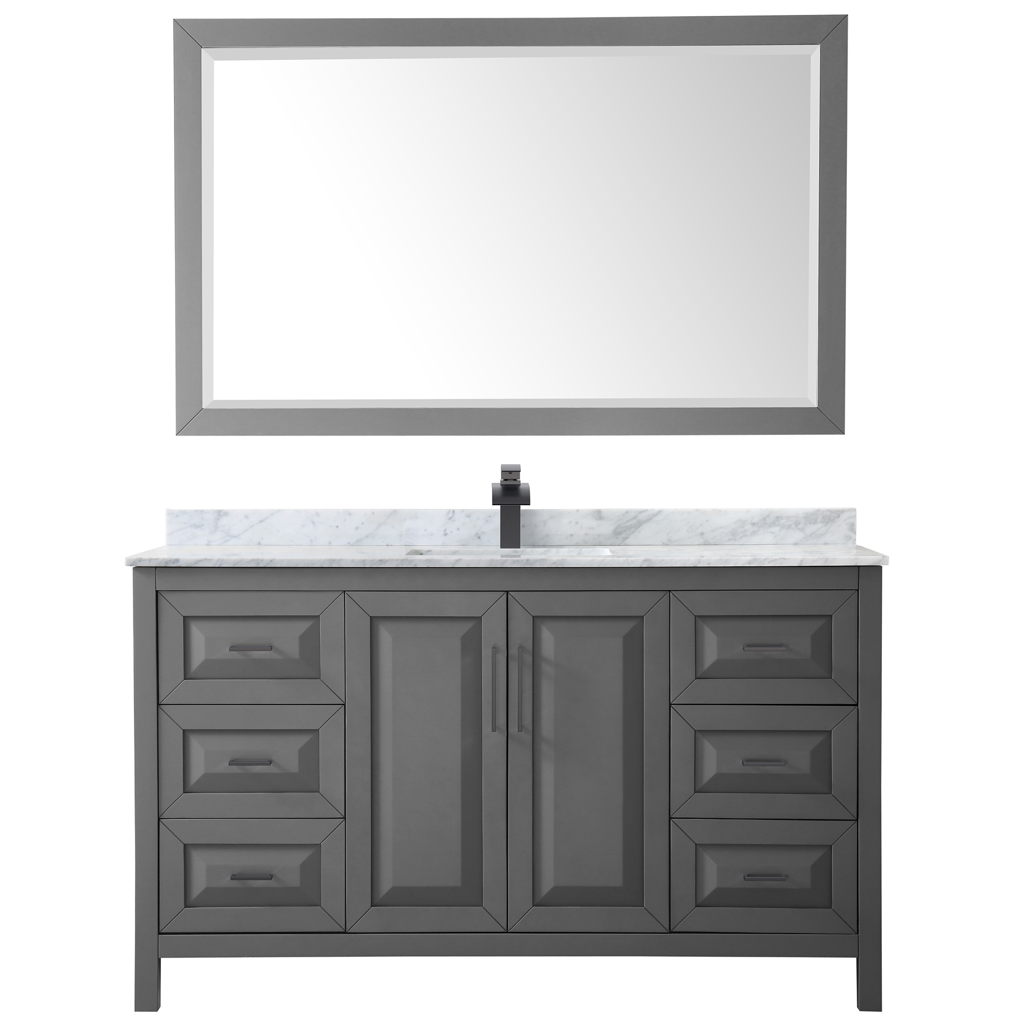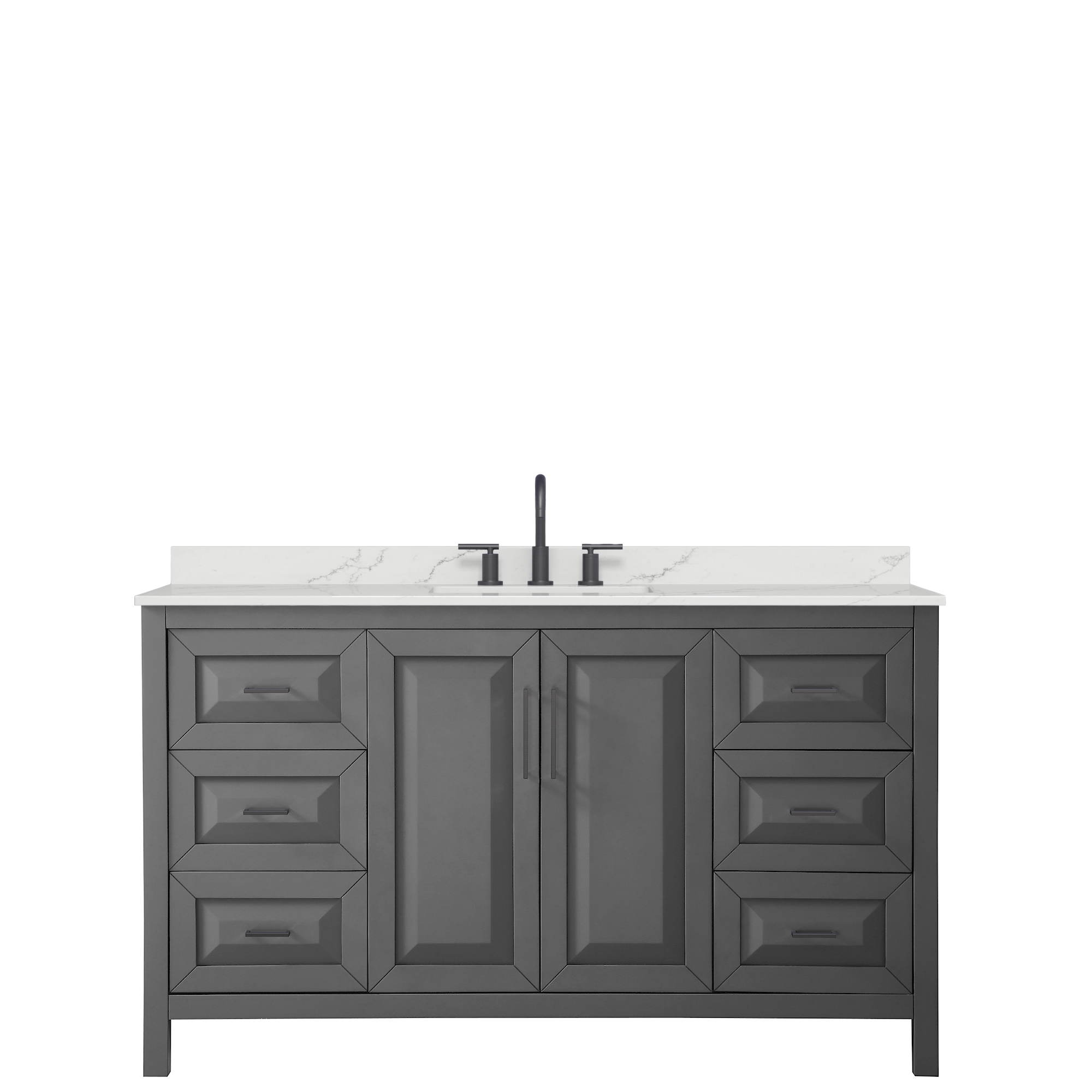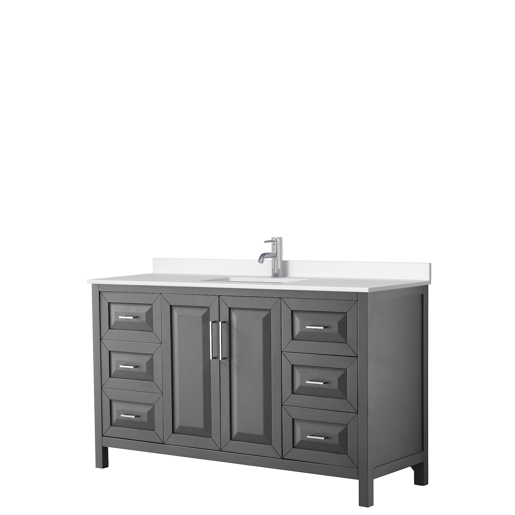 The beautiful Daria collection vanities stand out in any bathroom with strong, clean lines, raised panels and elegant counters with square sinks. There's plenty of cabinet space, the fully extending drawers are dovetail construction, and polished chrome or matte black finish detailing completes the look. Daria vanities deftly combine the function of today with a nod to the elegance of the past. It's the new modern - classic styling with a contemporary twist.