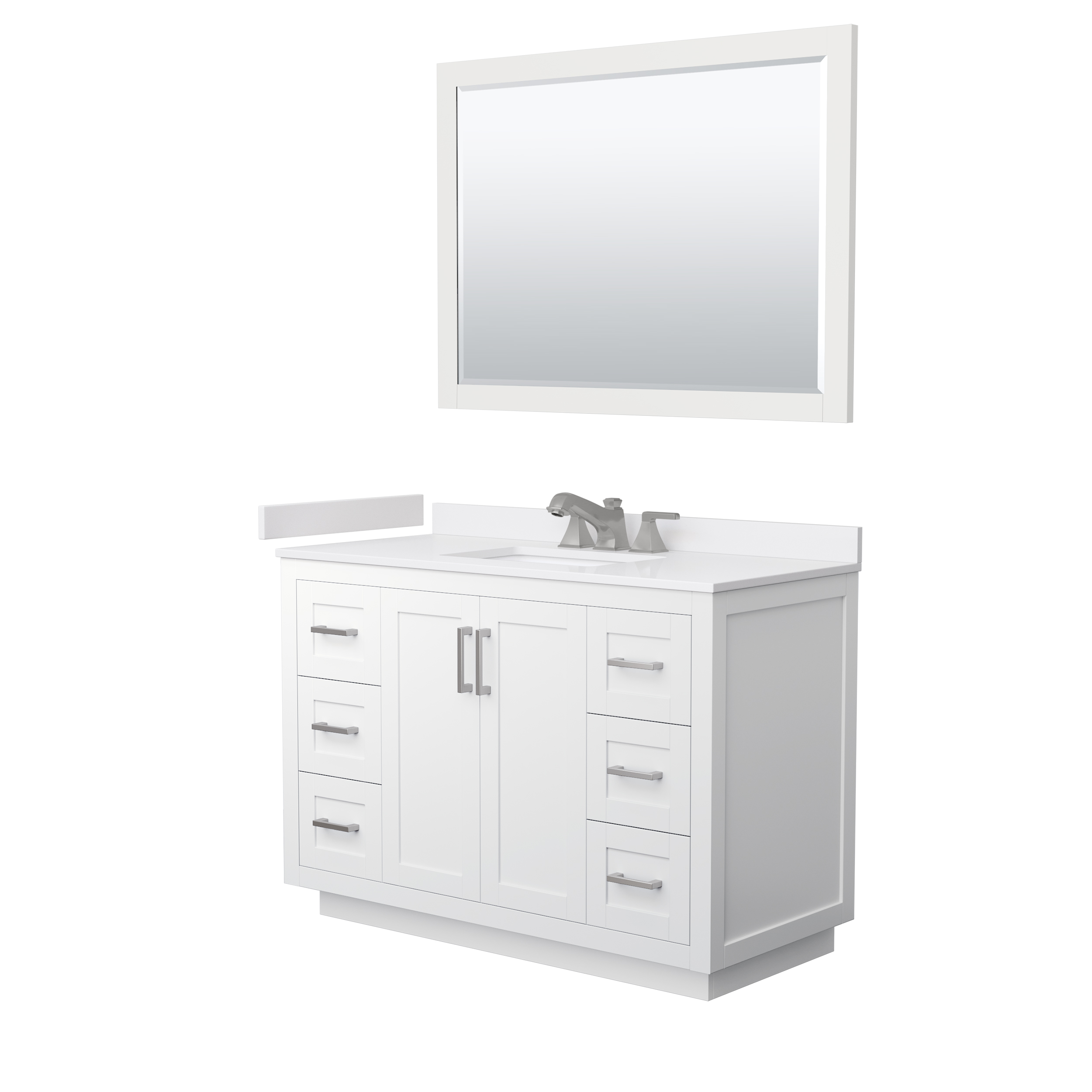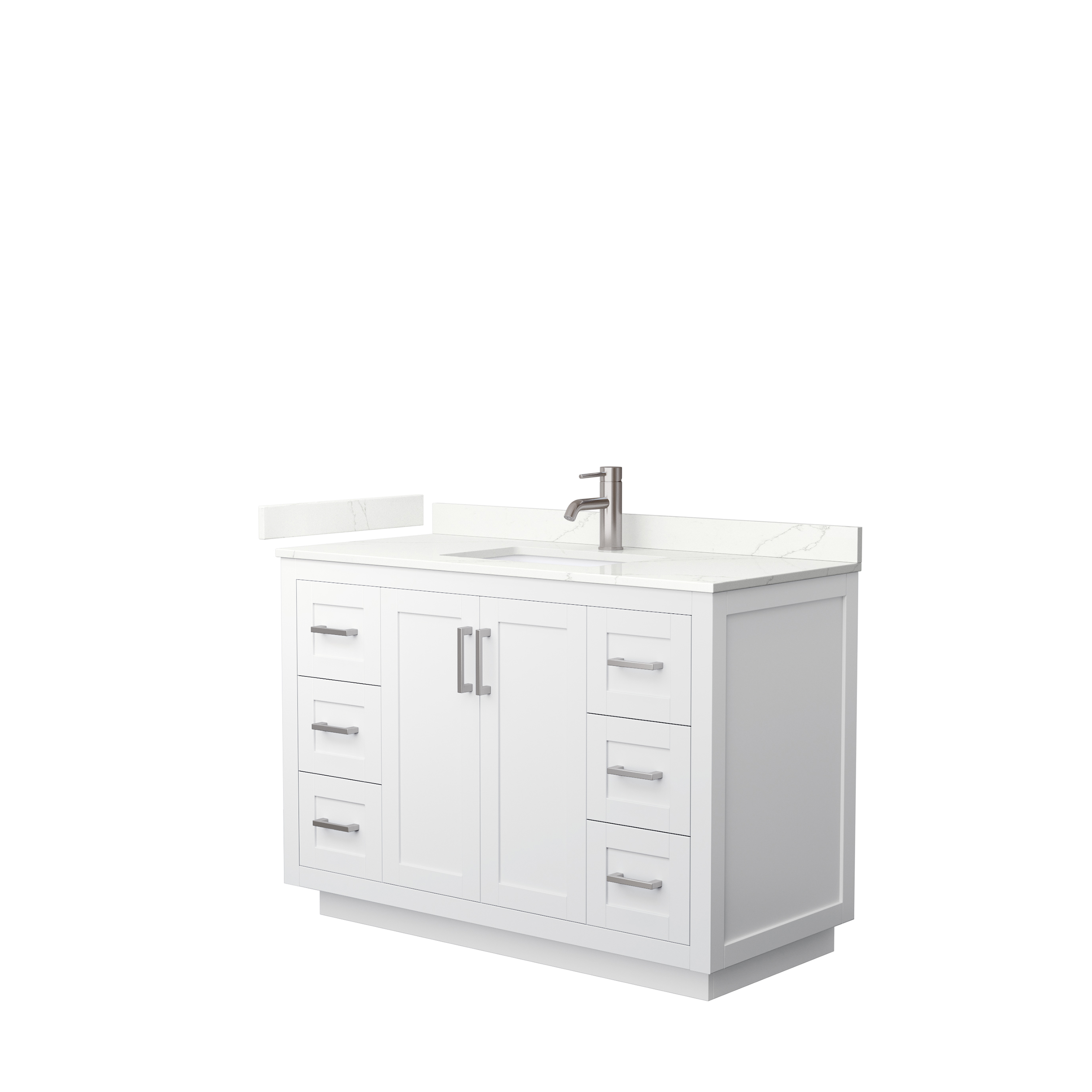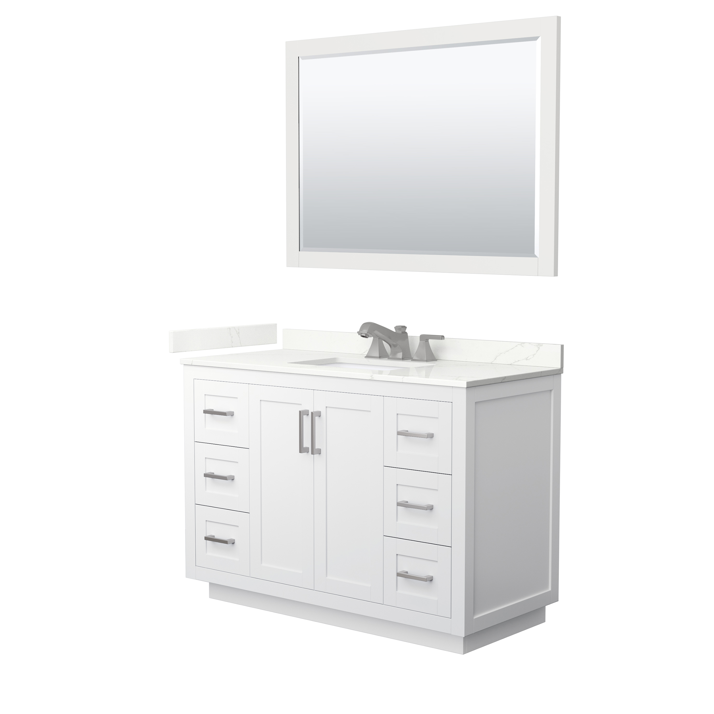 Sleek and Chic are the best words to describe this European shaker vanity, a piece that bridges modern and contemporary. The Miranda vanity is manufactured in high quality durable materials and finished to the exacting standards you've come to expect from the Wyndham Collection. With function as important as form, the elegant design focuses on ample storage and counter space, a choice of three handle colors, and 3D adjustable soft-close doors and dovetail drawers. Available with your choice of beautiful Quartz, Carrara Marble, or Cultured Marble counter.