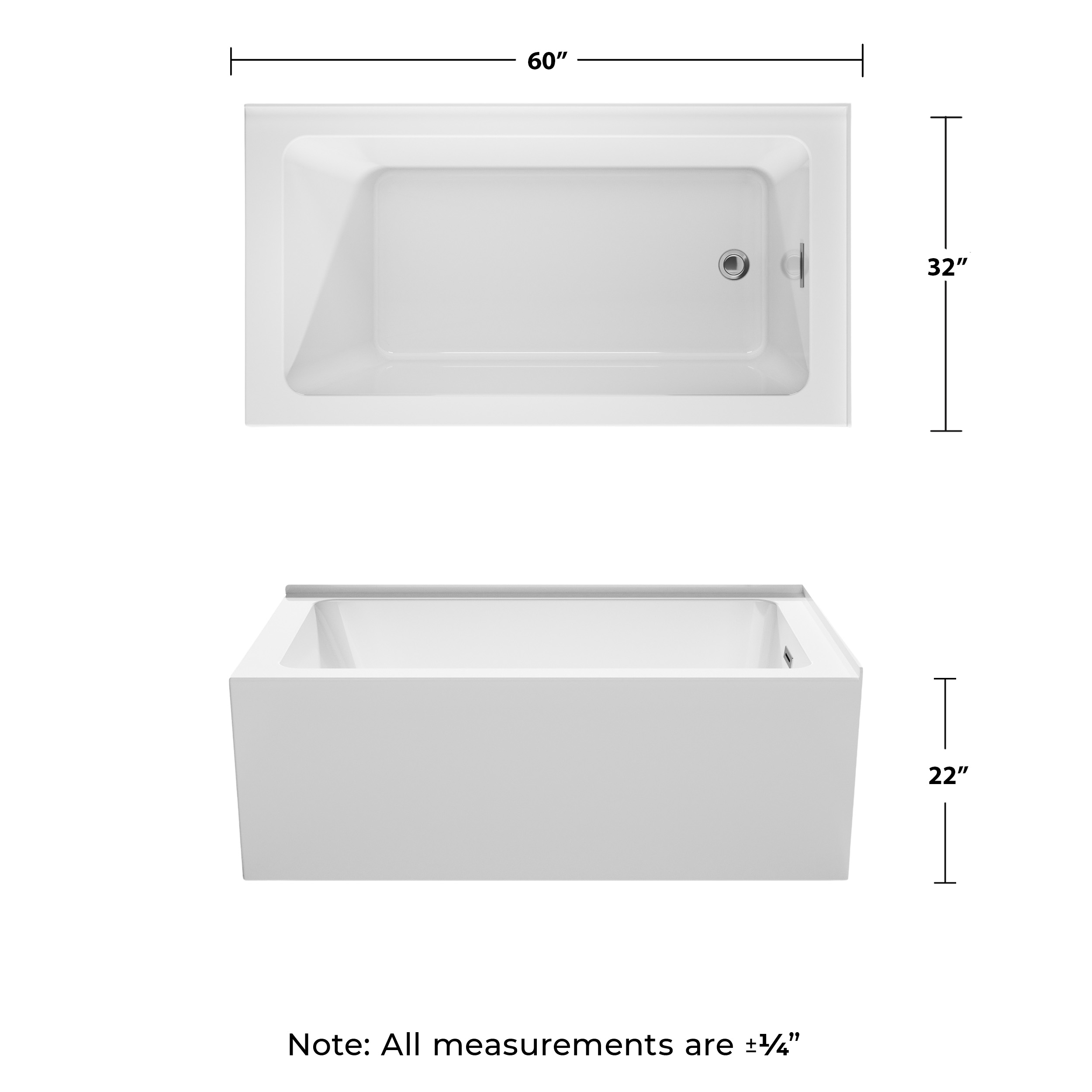Grayley Alcove 60" Bathtub with 2 Sided Skirt, Right Side Drain (60"Lx32"Wx22"H)