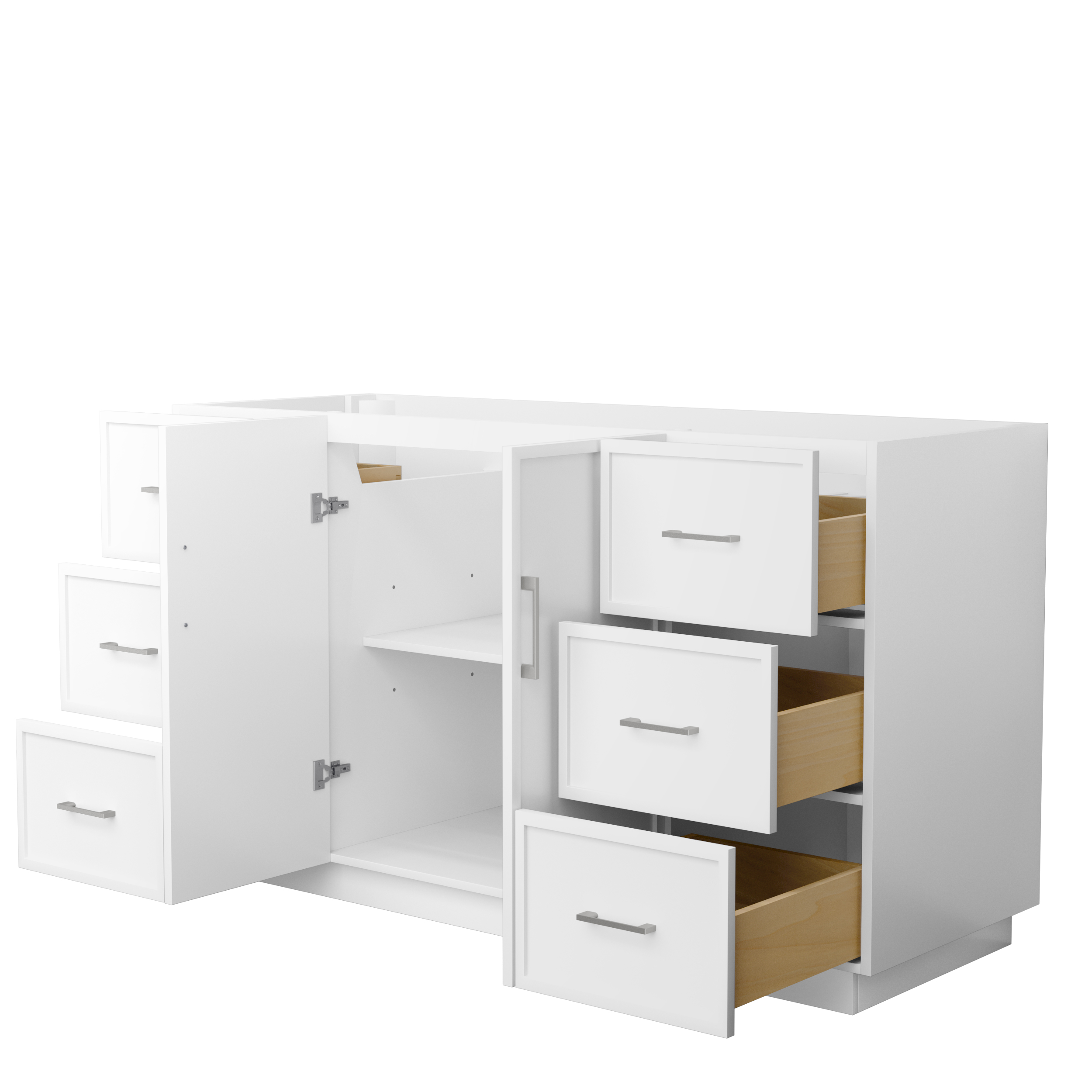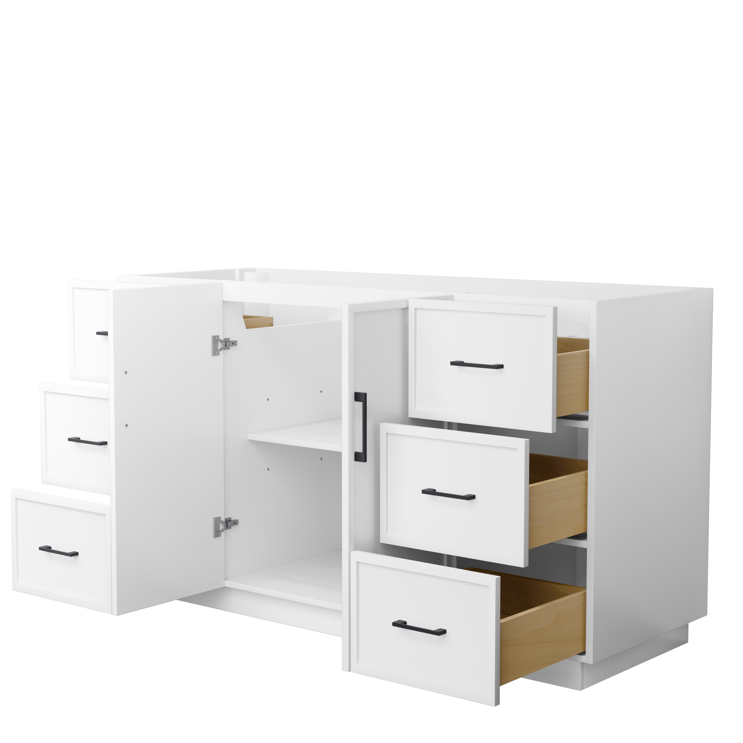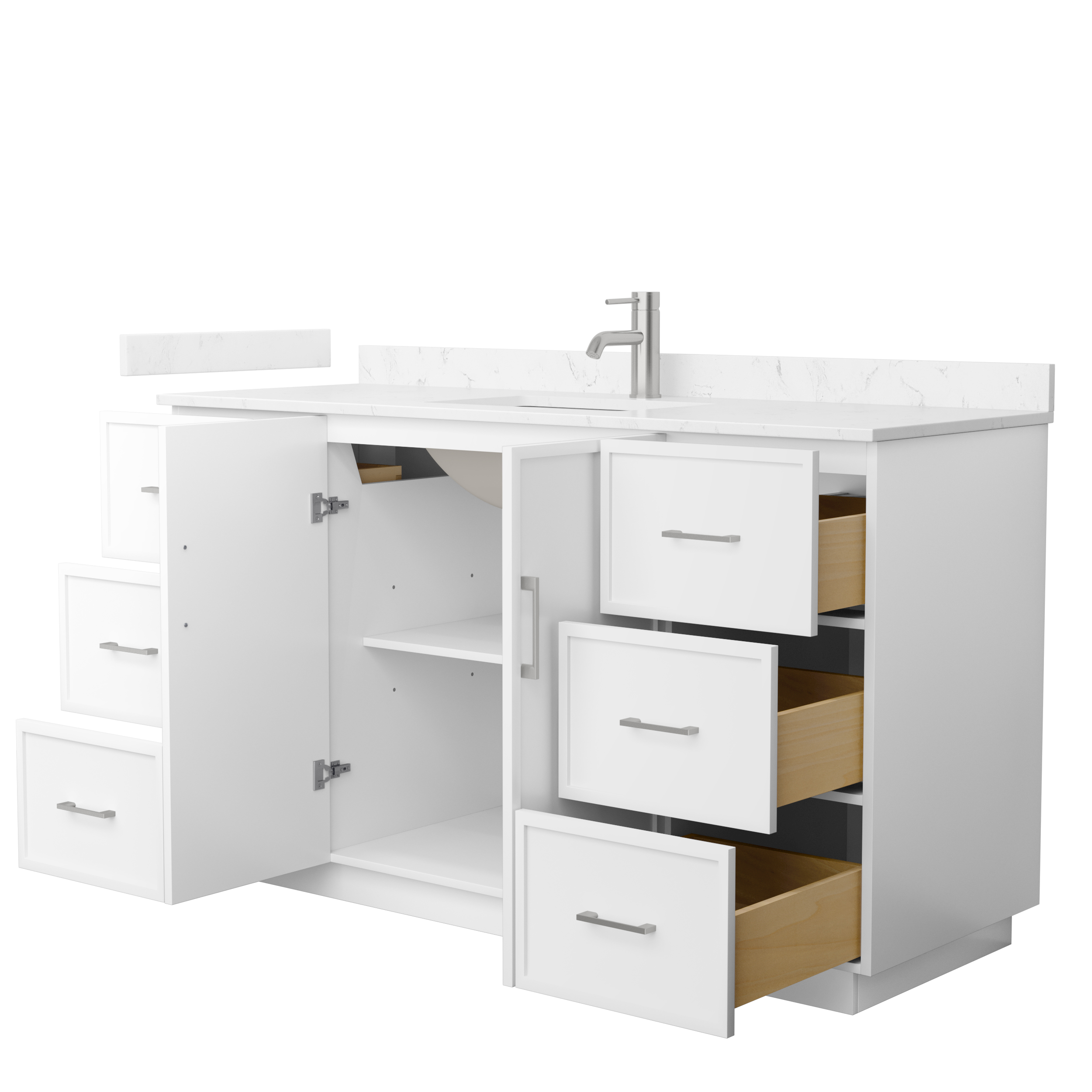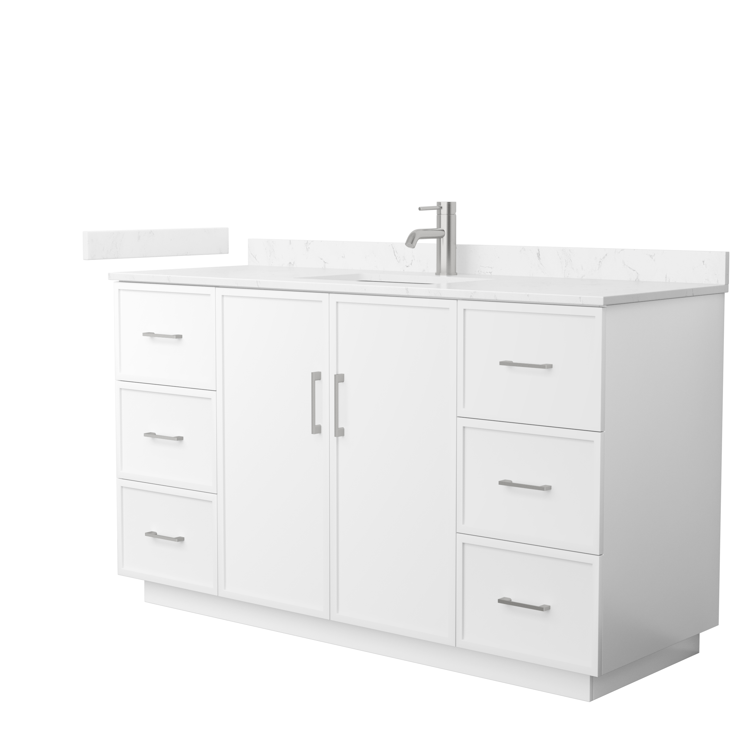 This transitional bathroom vanity exudes sleek sophistication with its clean lines and minimalist slim shaker design. The Elan vanity is crafted from high-quality materials like solid wood, with counters in multiple material options. Quartz and cultured stone counters include a back-and side-splash. Finished painted or in rift-cut light oak veneer, it seamlessly combines beauty and real-life usefulness. Its integrated, soft-closing drawers (featuring 3D adjustable glides) and doors offer ample storage space for toiletries, towels, and other essentials, keeping the space clutter-free. The sleek, angular hardware contributes to the overall aesthetic, creating a stylish focal point in the bathroom. Elevate your bathroom haven without compromising form or function.