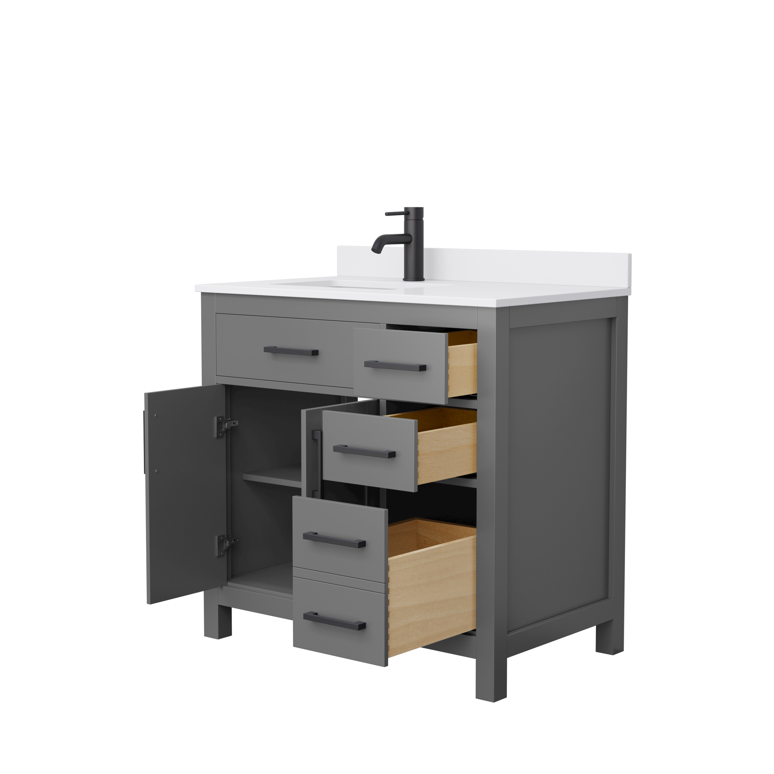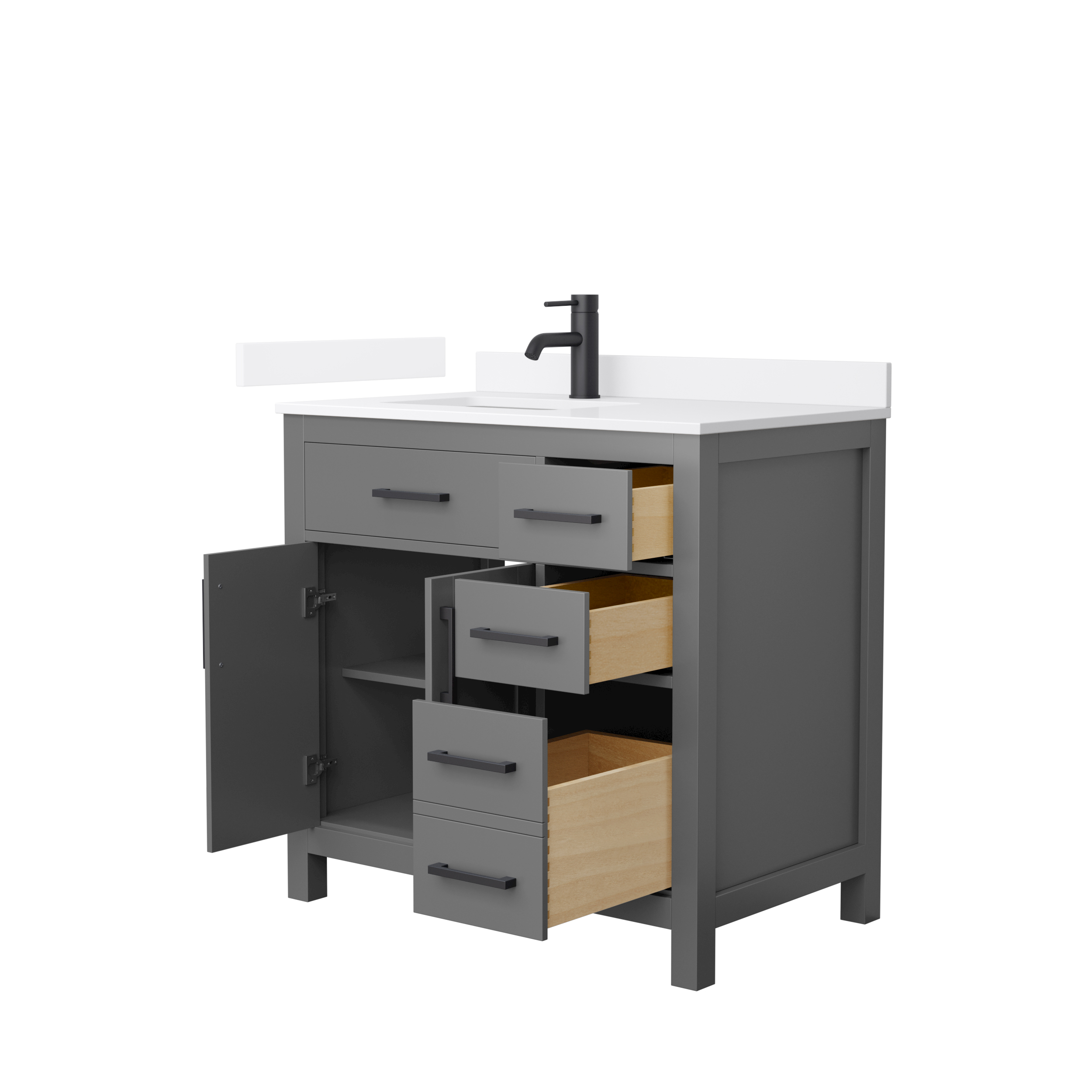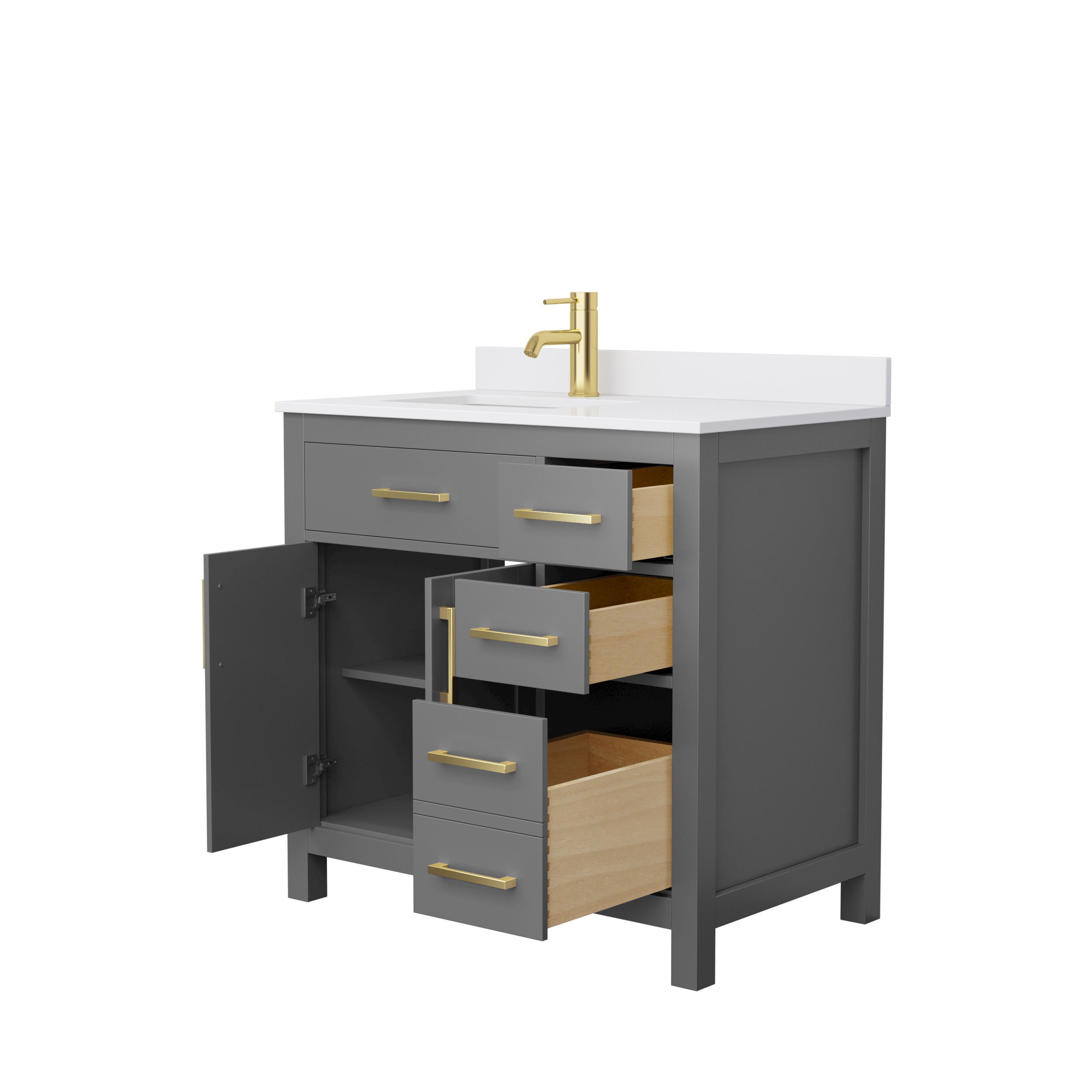 Fantastic value and classic design. The elegant Beckett vanity has it all, with quality touches like brushed nickel, brushed gold, or matte black accents, dove-tailed drawers, cultured marble counters and soft-close doors and drawers. Ample storage and a double-depth lower drawer give you plenty of room for those bathroom necessities. Do your bathroom right, with the beautiful Beckett vanity series.
