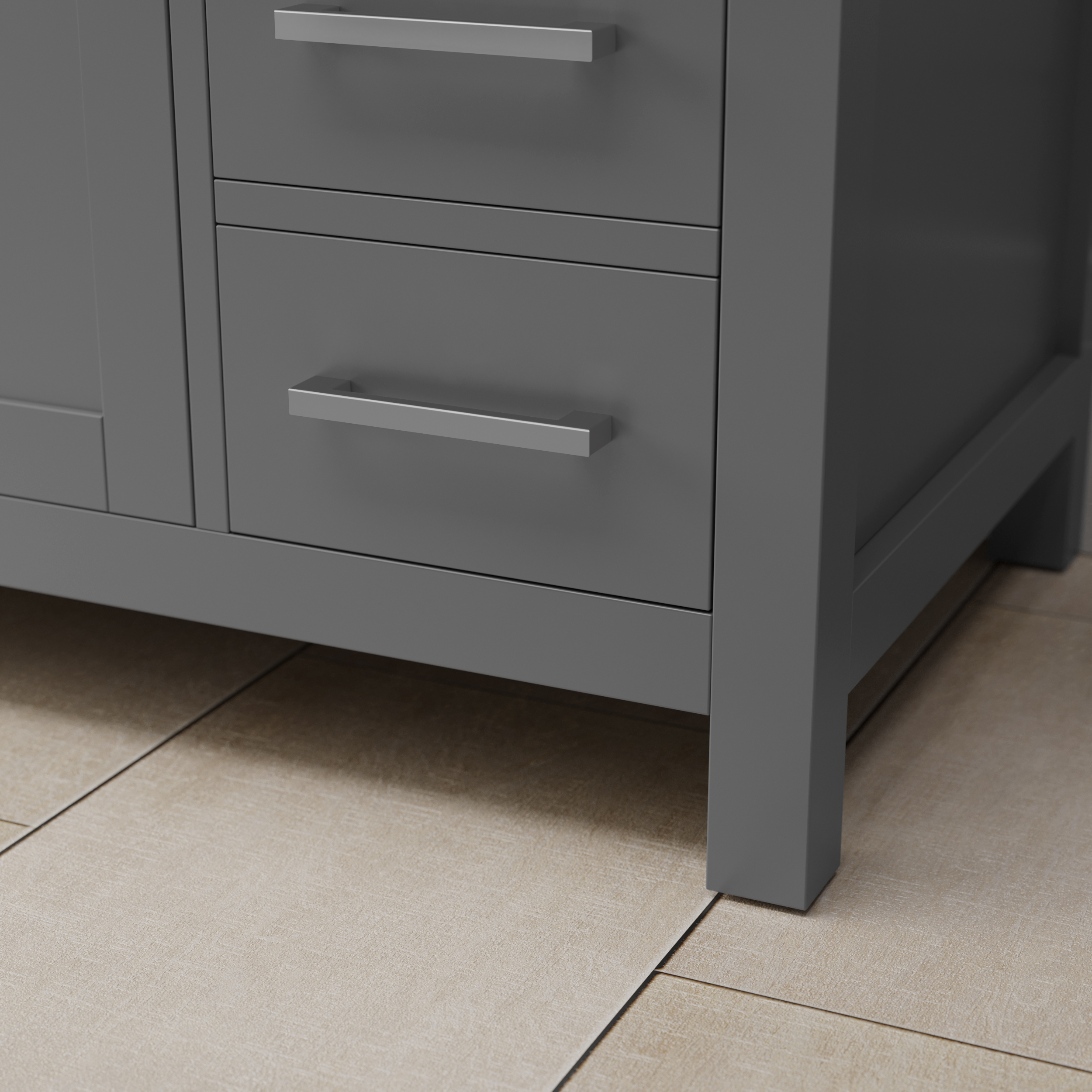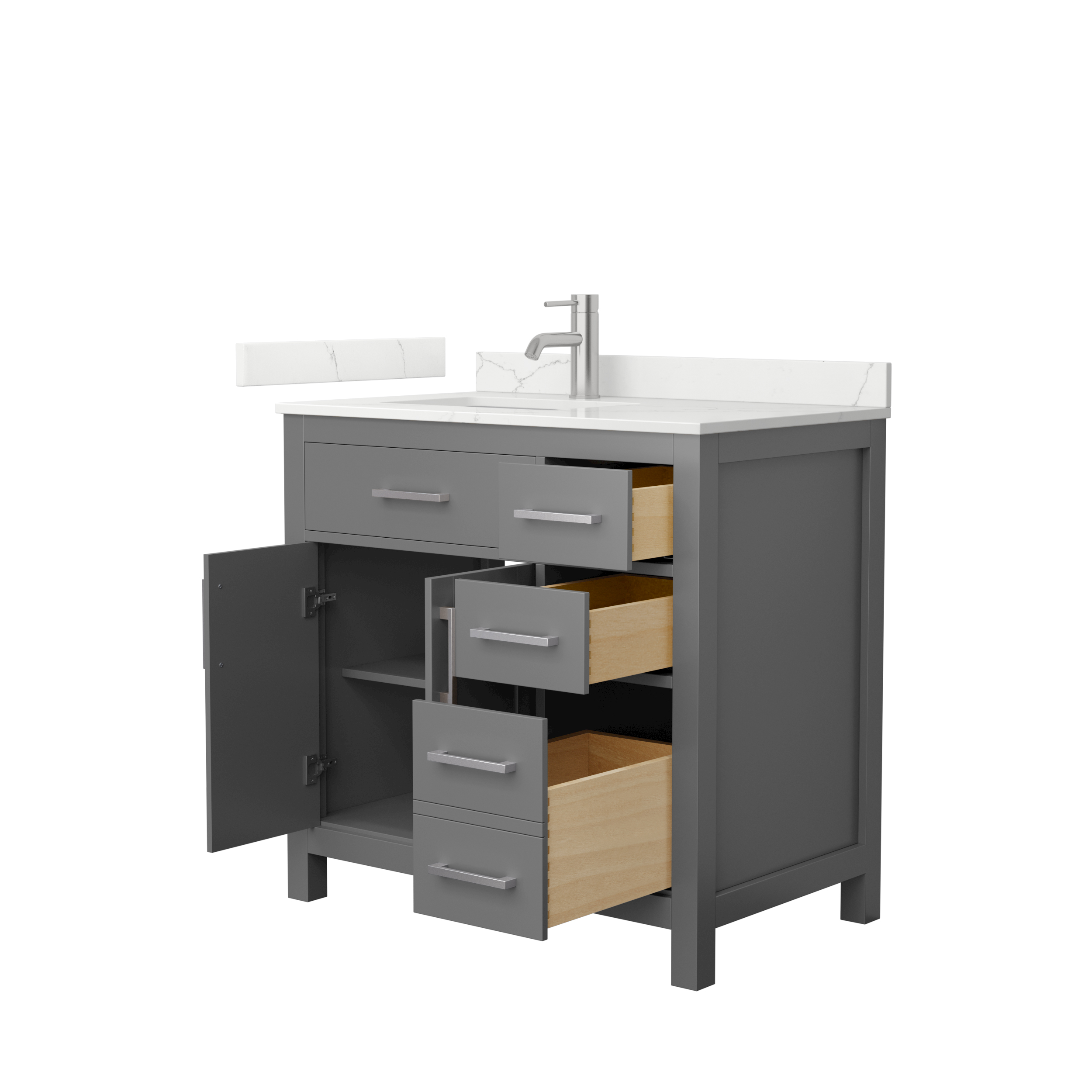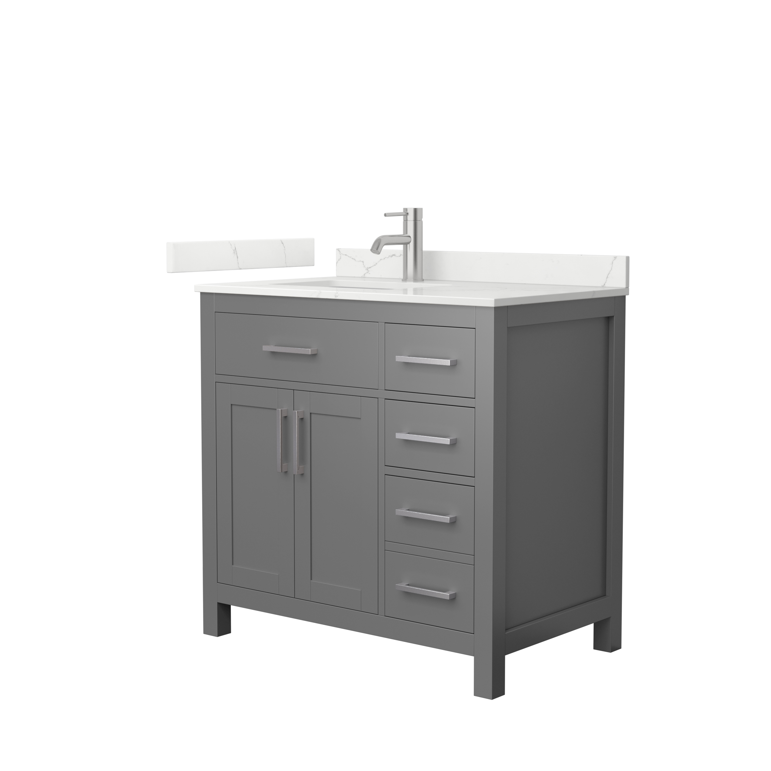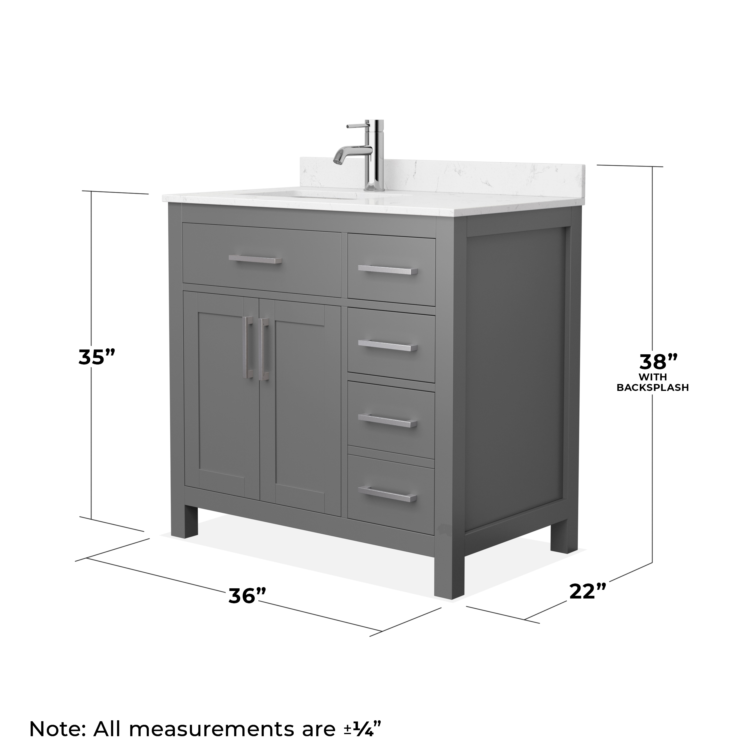 Fantastic value and classic design. The elegant Beckett vanity has it all, with quality touches like brushed nickel, brushed gold, or matte black accents, dove-tailed drawers, cultured marble counters and soft-close doors and drawers. Ample storage and a double-depth lower drawer give you plenty of room for those bathroom necessities. Do your bathroom right, with the beautiful Beckett vanity series.