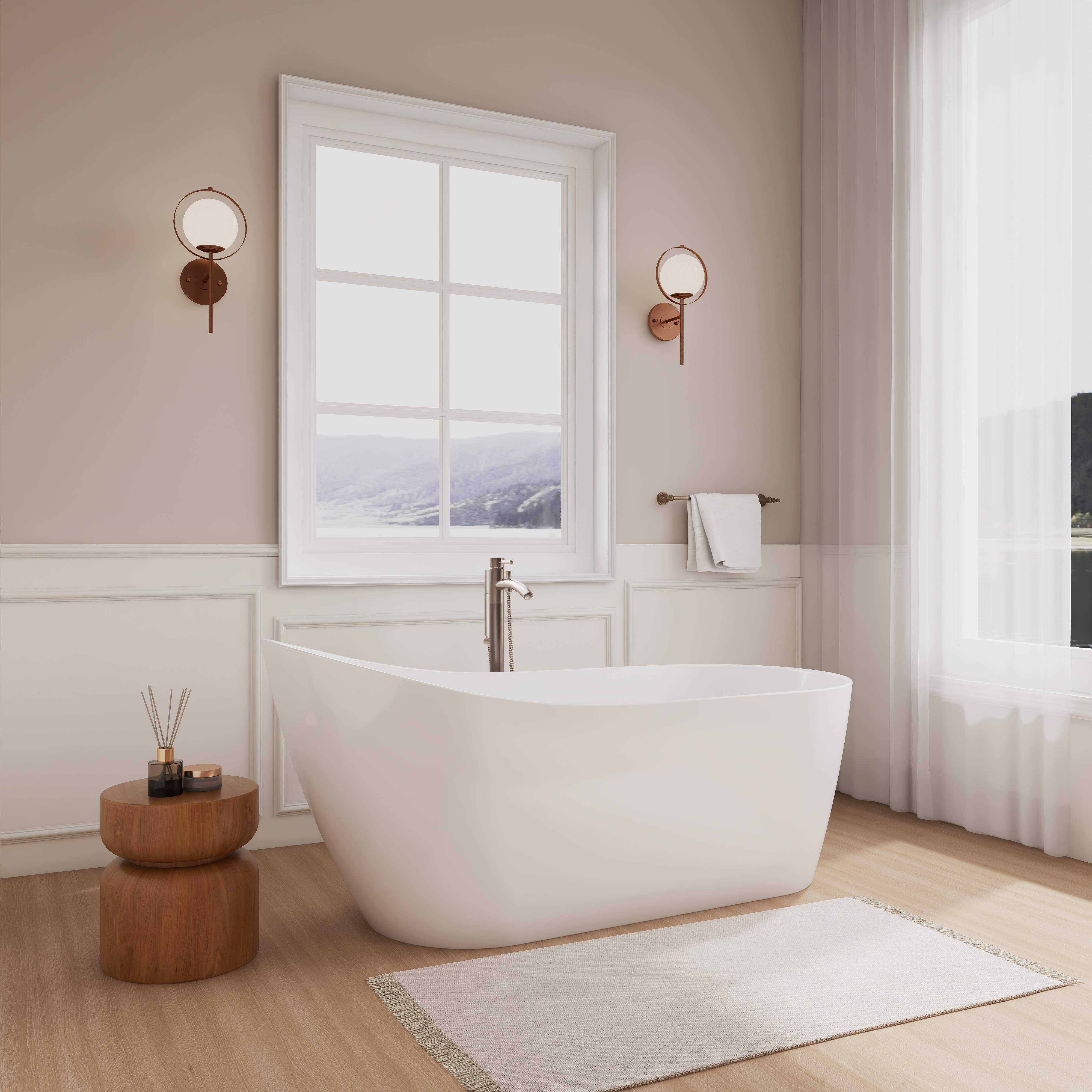 Step into a personal oasis of luxury with the Davia freestanding bathtub by Wyndham Collection. Thoughtfully designed with a gentle sloping back for easy reclining during a restful soak, finding your happy place has never been easier in this bathtub. Double-walled acrylic construction will ensure your tub stays warmer for longer, while the clean, elegant lines of the exterior guarantee it will be a stunning addition to any bathroom. All that's left is to fill it up, sink in, and let the stress of the day melt away. Make the Davia bathtub the new centerpiece to your bathroom today.