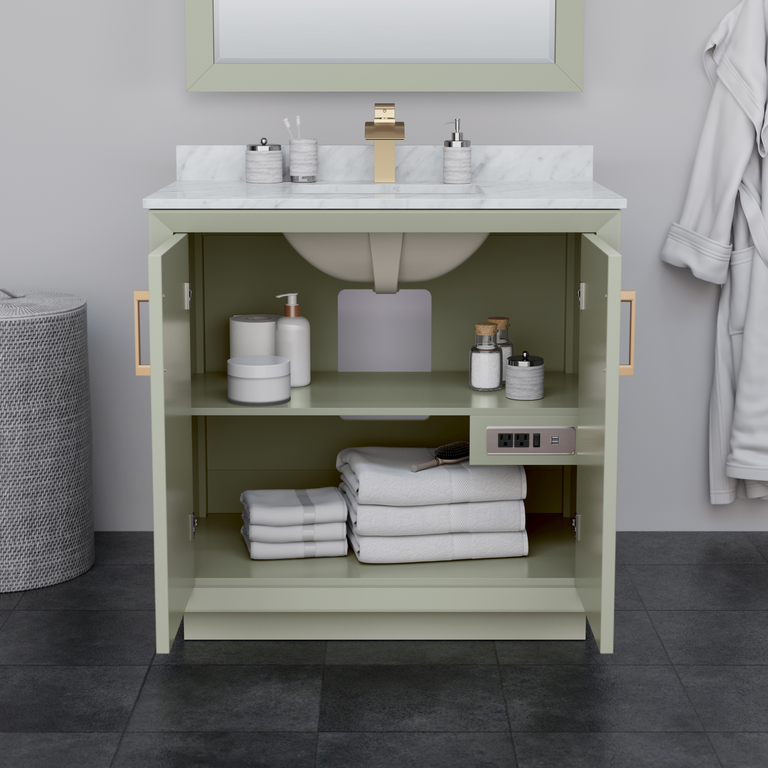 Perfect for a modern update, the Strada bathroom vanity features clean and understated contemporary lines that highlight the elegance and simplicity of this transitional vanity by Wyndham Collection. It comes well equipped with soft-close doors and drawers, ample storage space, 110V power and USB outlets, adjustable shelves, and a cutout back for easy access to plumbing and electrical.