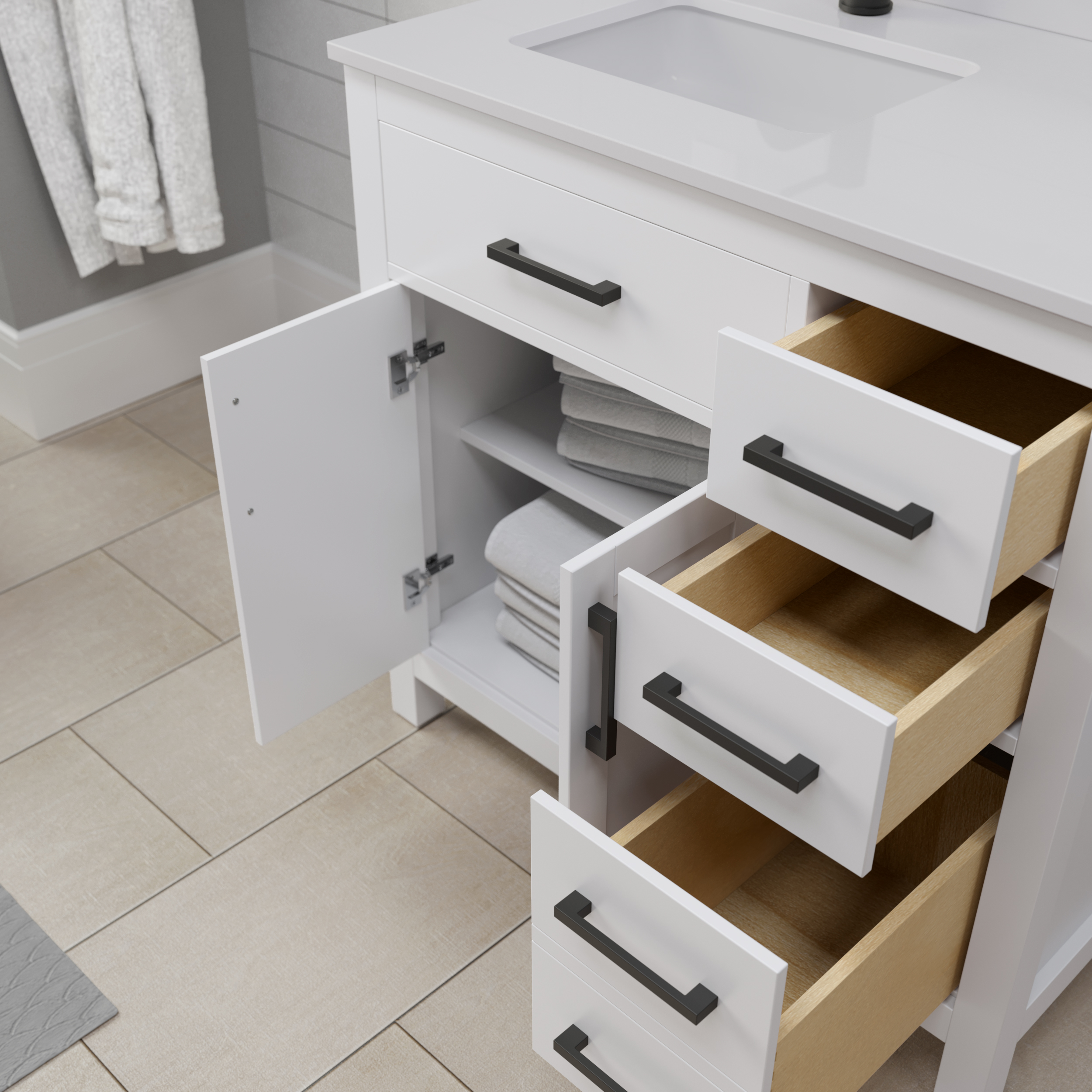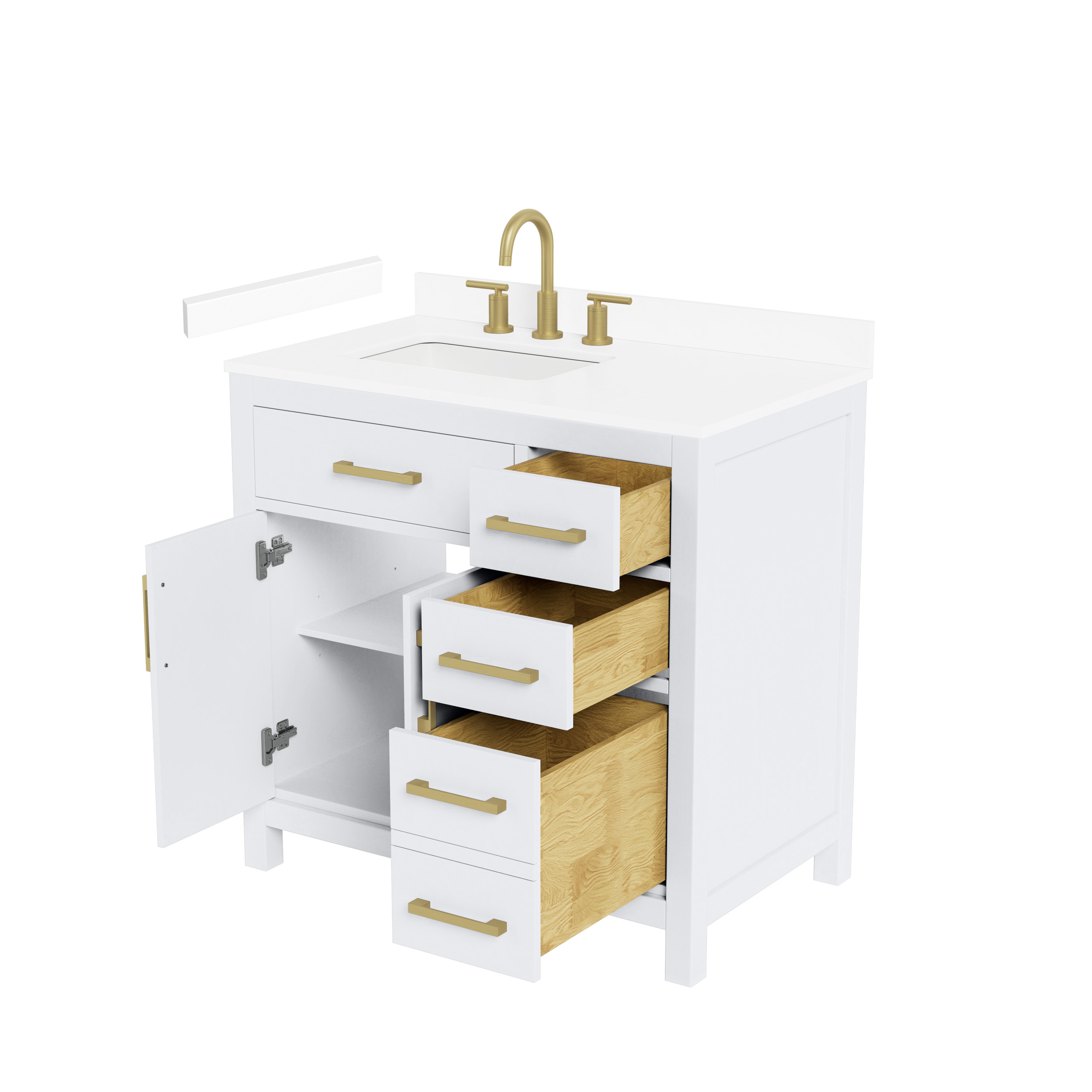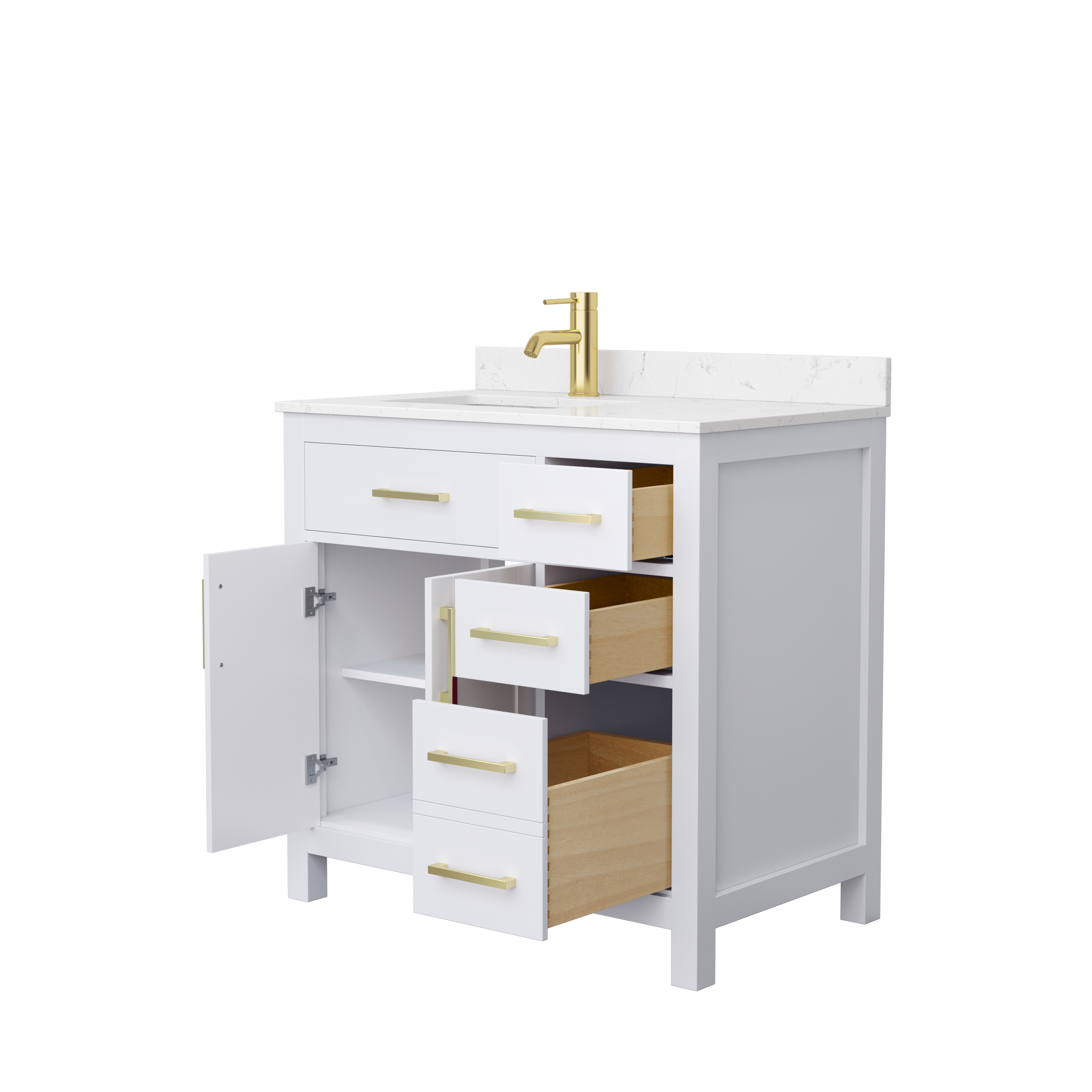 Fantastic value and classic design. The elegant Beckett vanity has it all, with quality touches like brushed nickel, brushed gold, or matte black accents, dove-tailed drawers, and soft-close doors and drawers. Ample storage and a double-depth lower drawer give you plenty of room for those bathroom necessities. Do your bathroom right, with the beautiful Beckett vanity series.