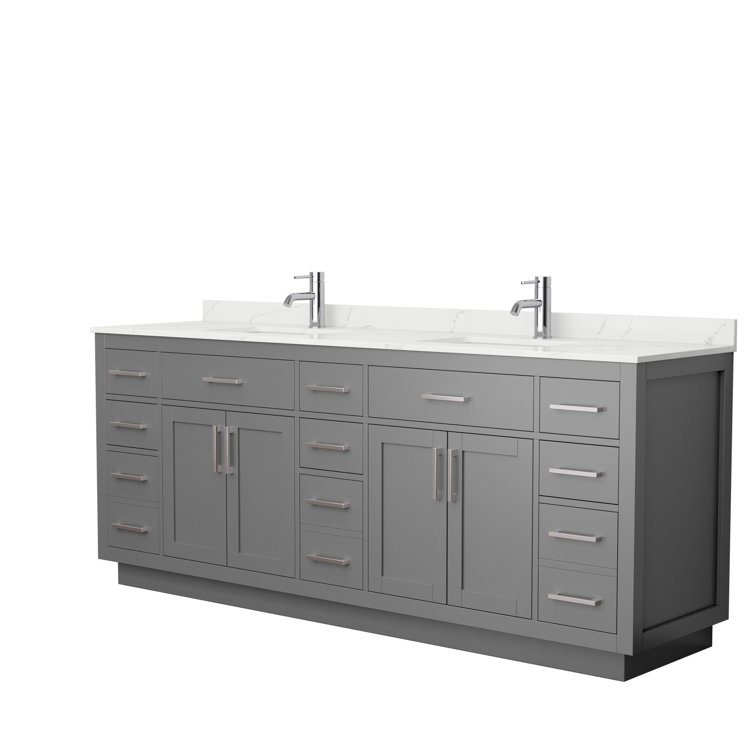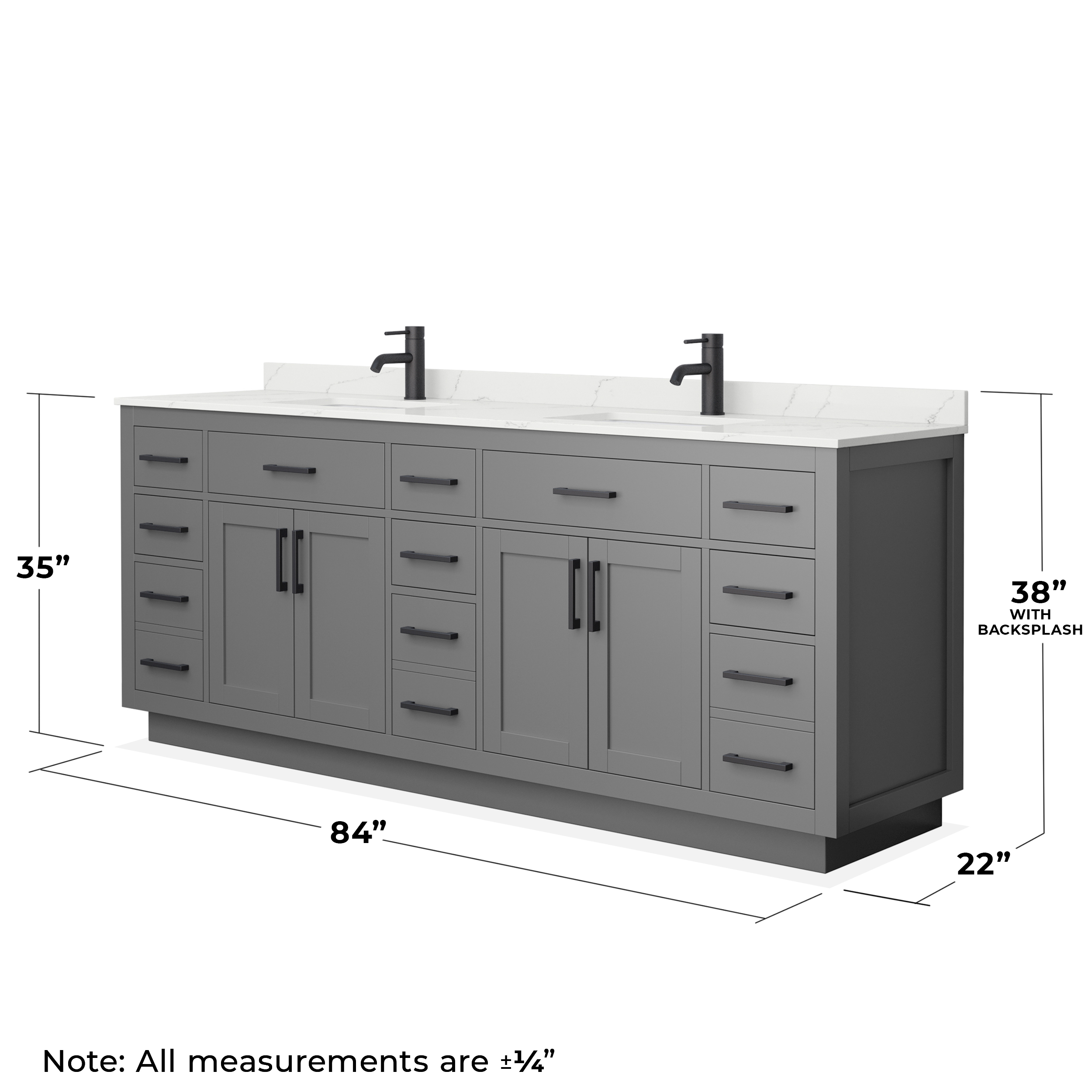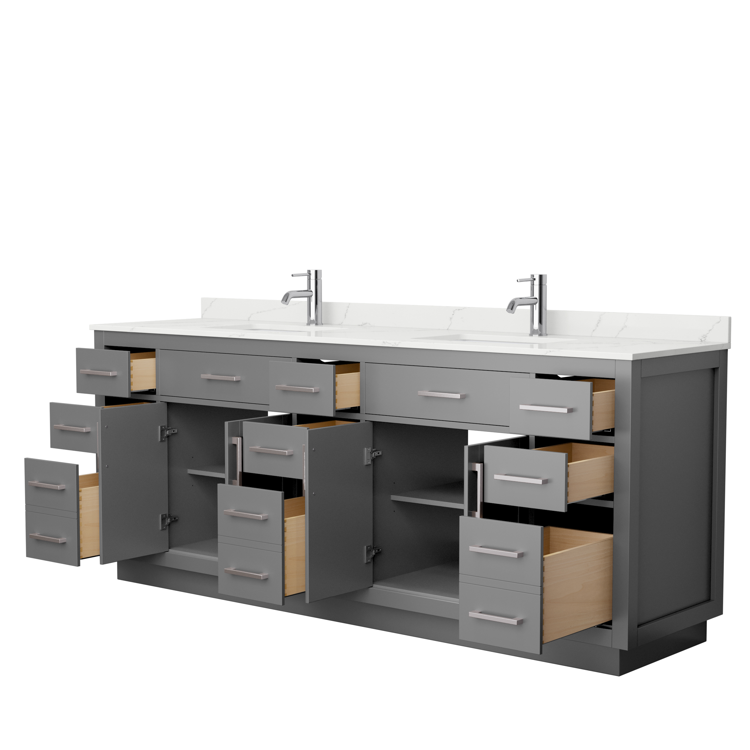 Beckett 84" Double Bathroom Vanity with Toe Kick, Quartz Counter - Dark Gray