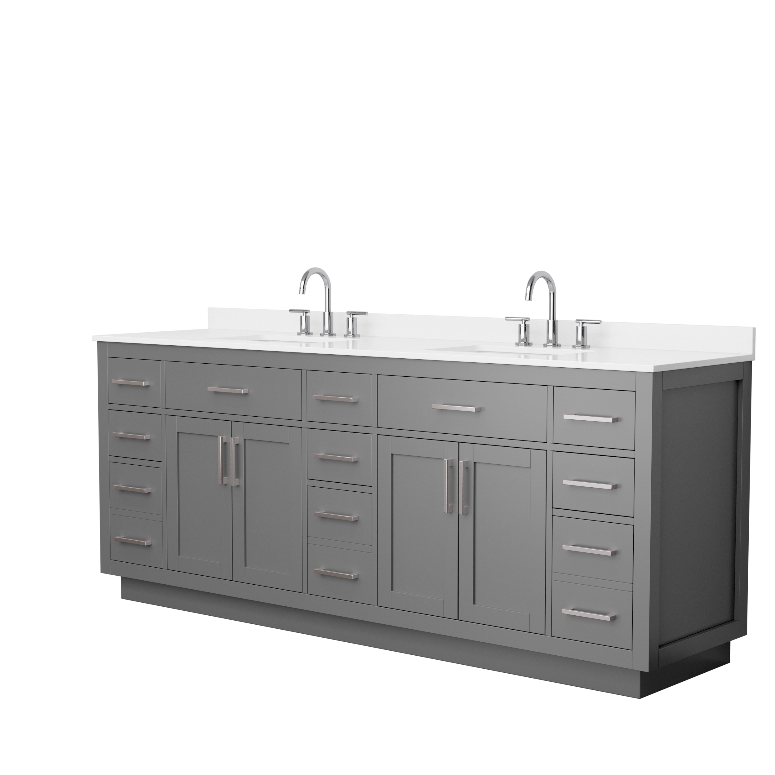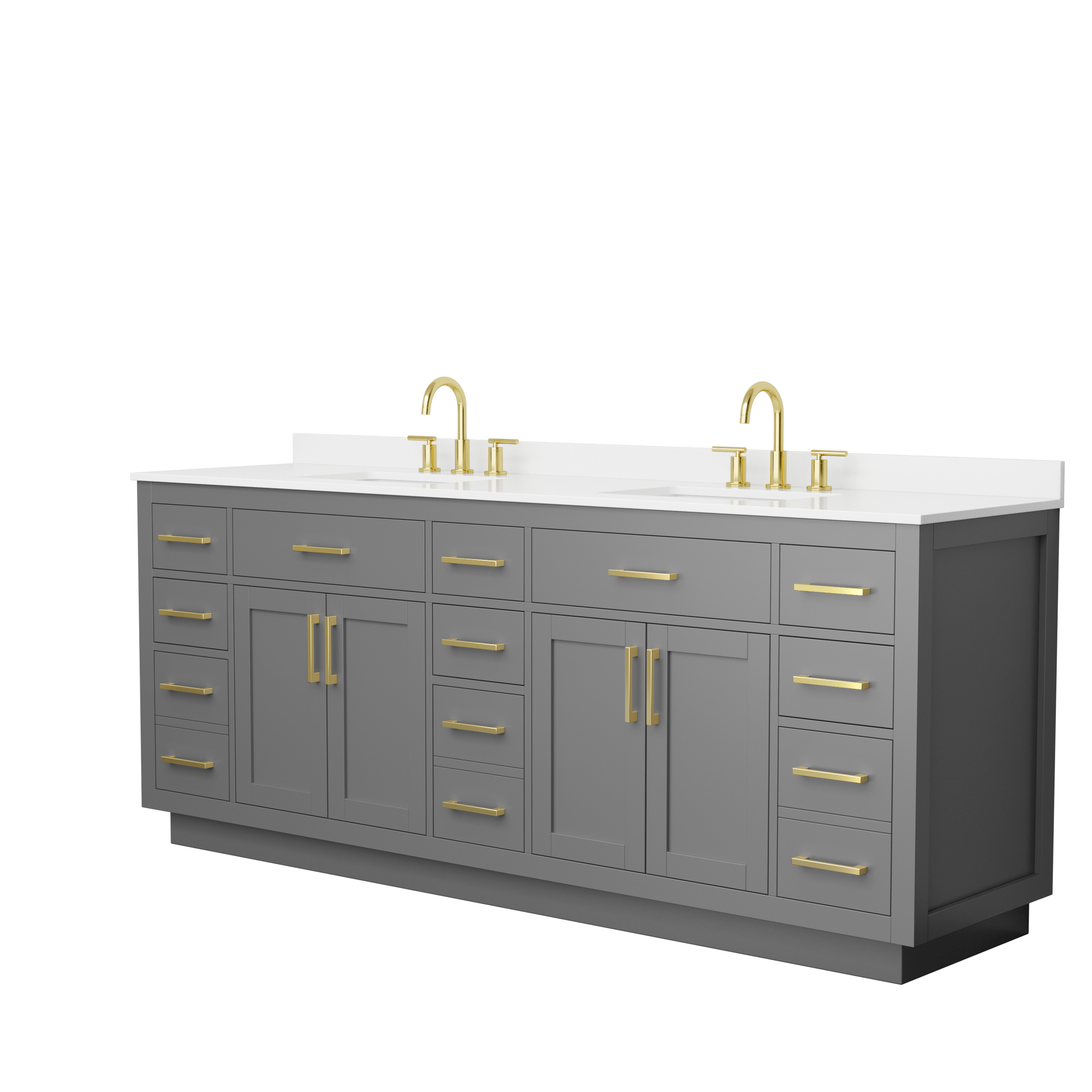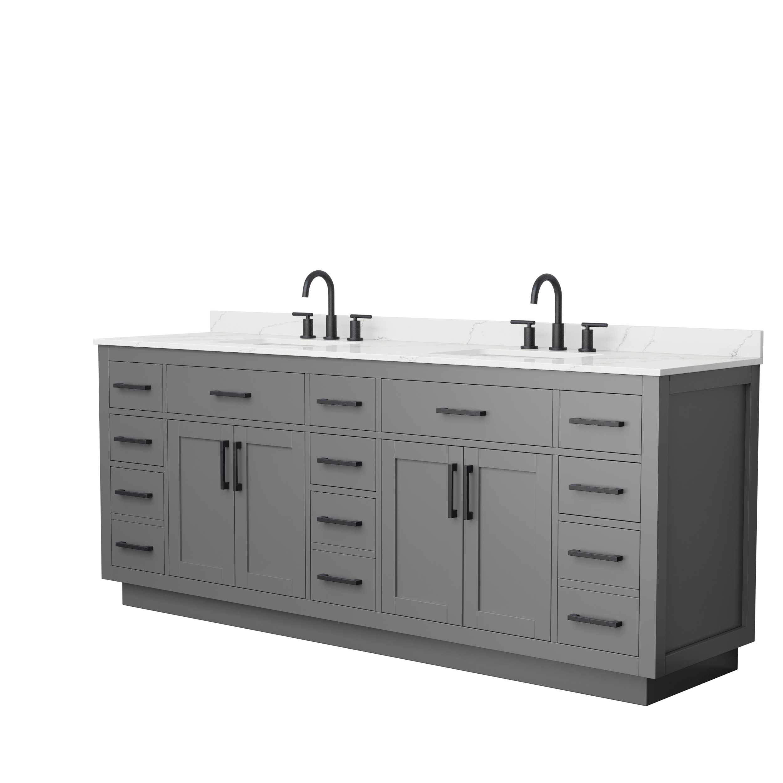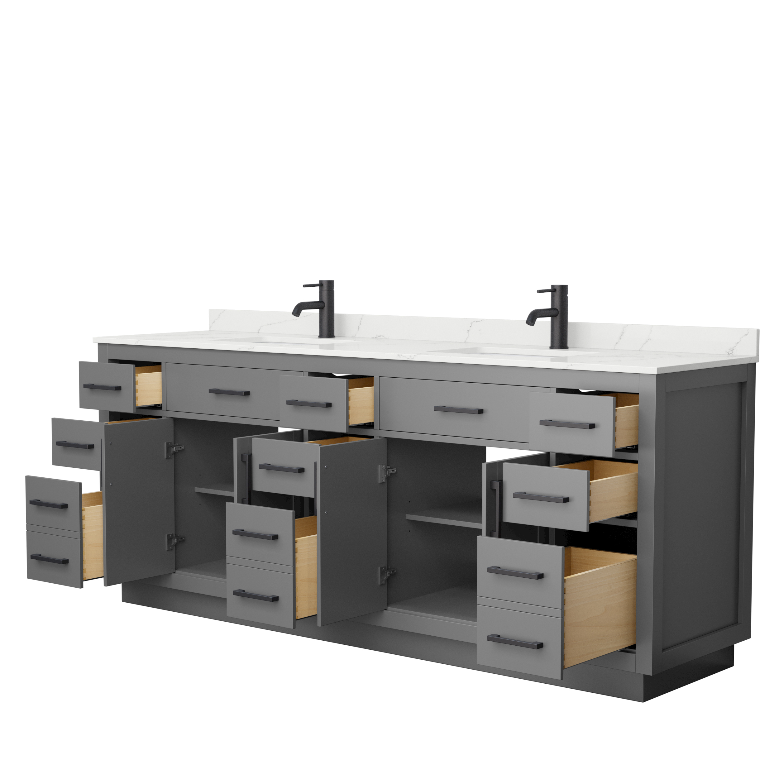 Beckett 84" Double Bathroom Vanity with Toe Kick, Quartz Counter - Dark Gray