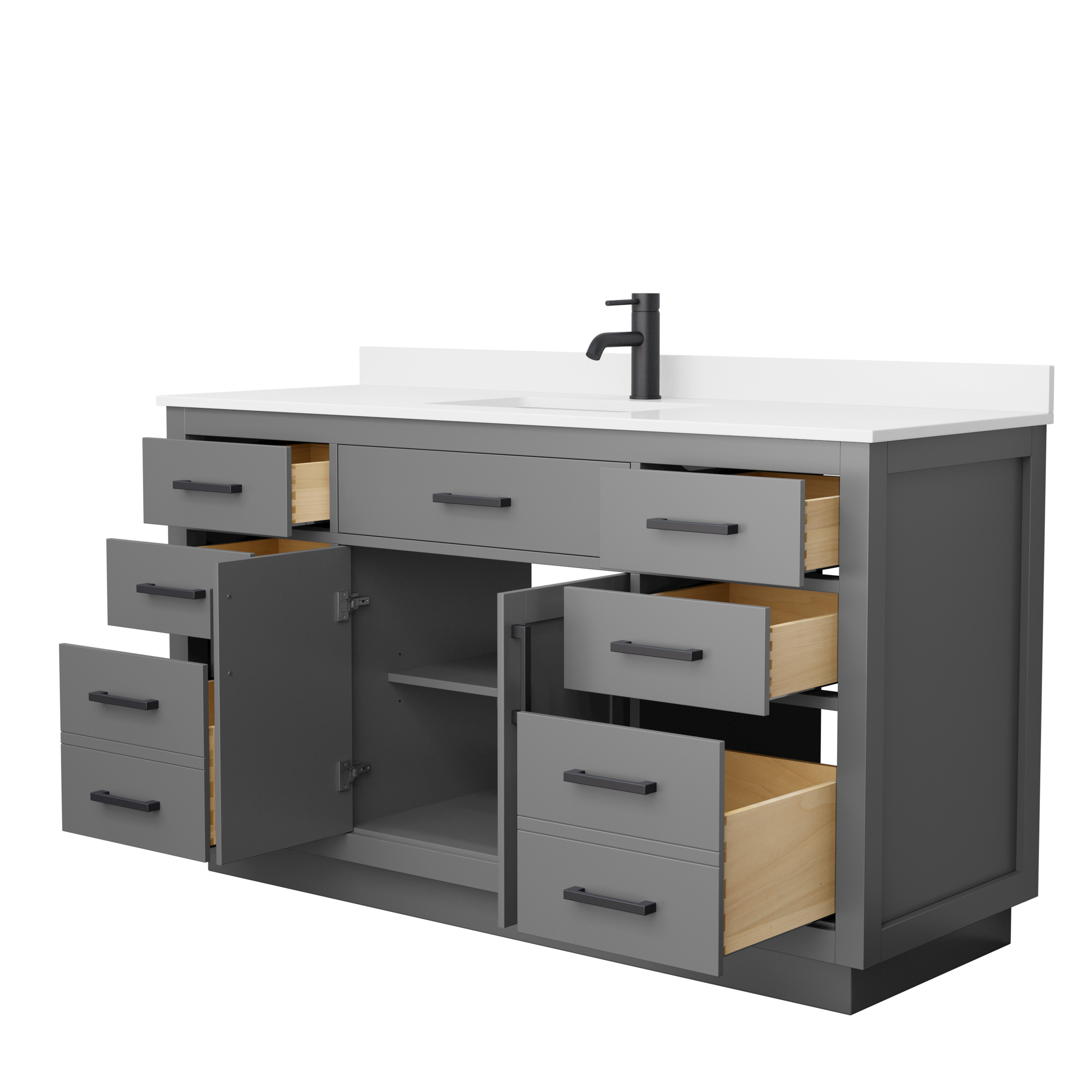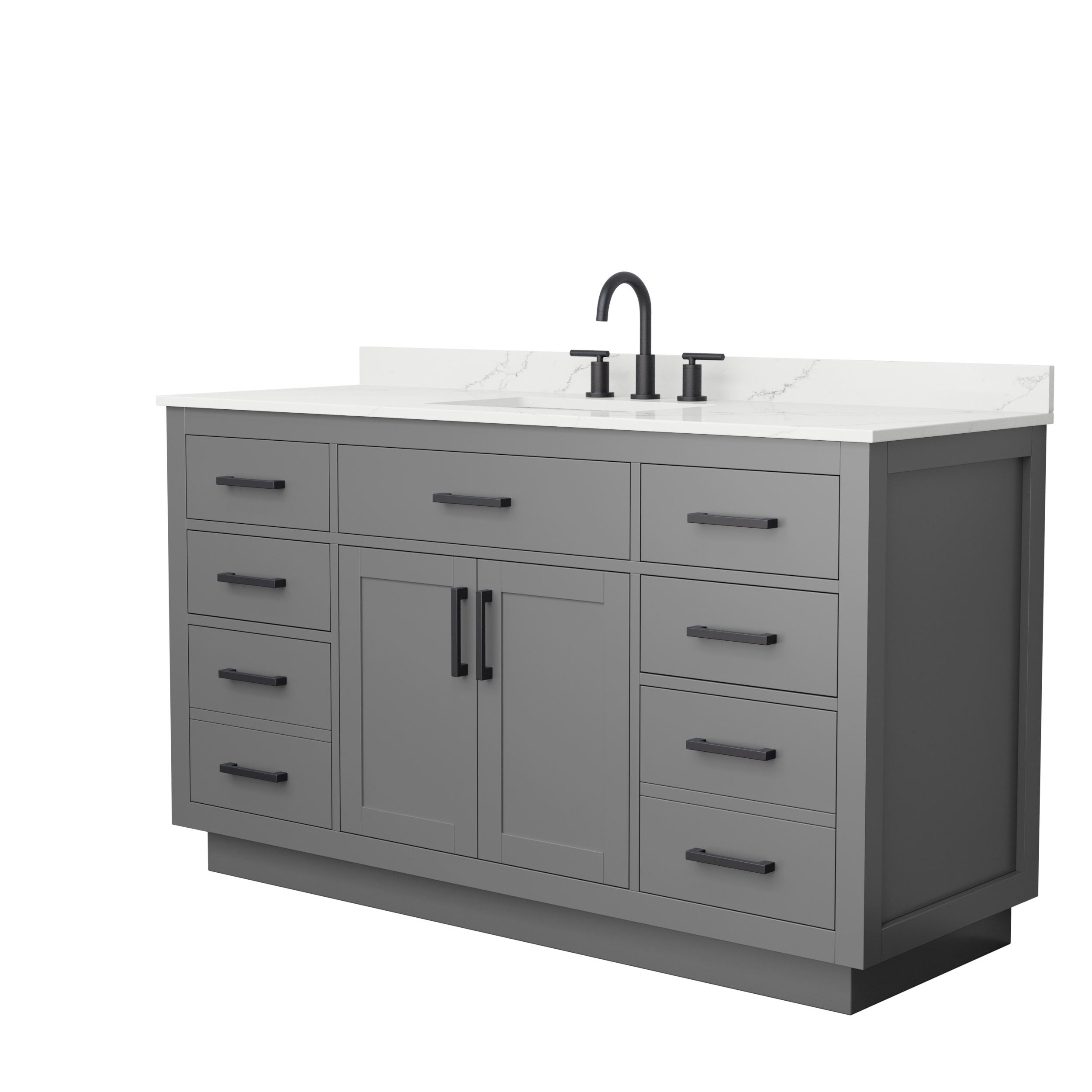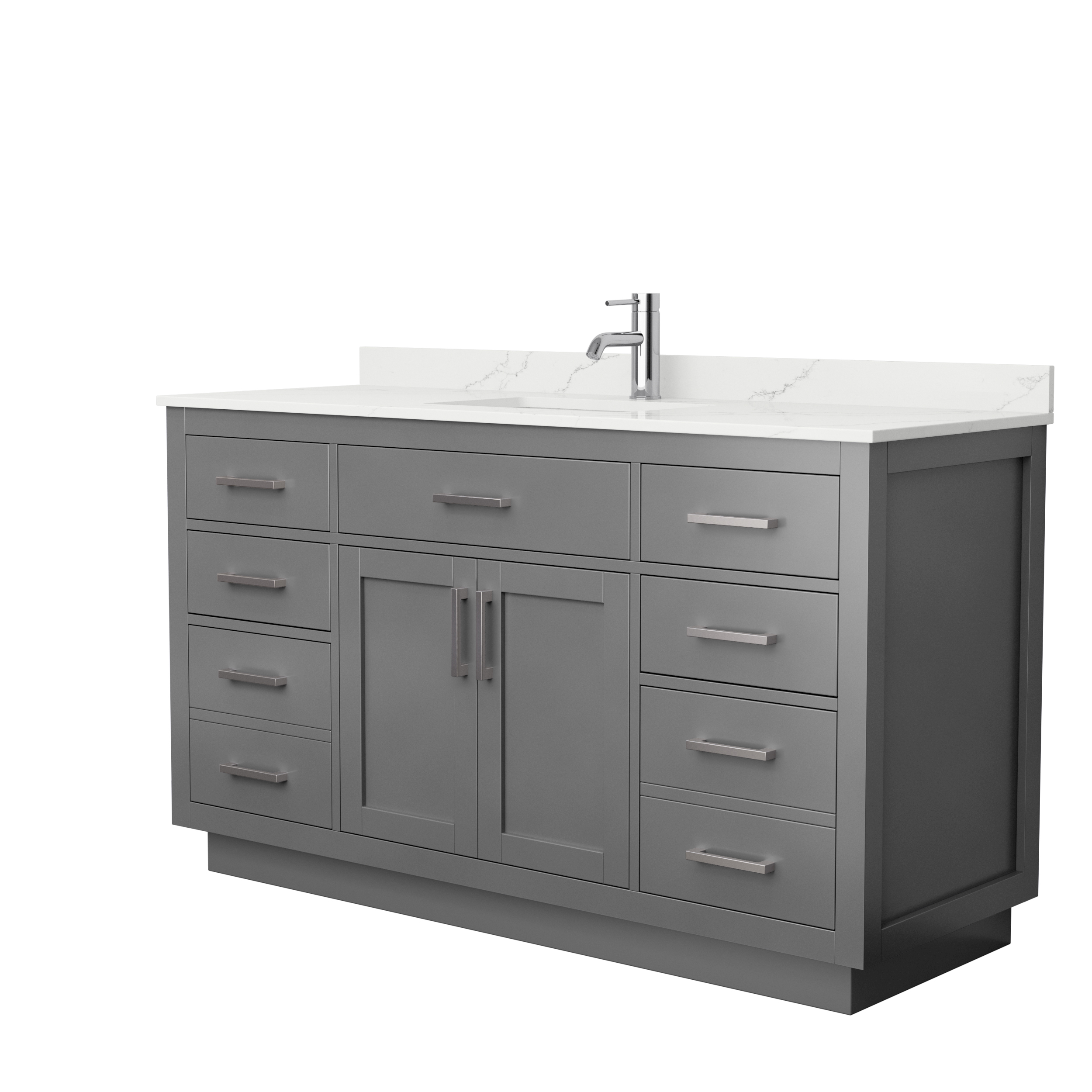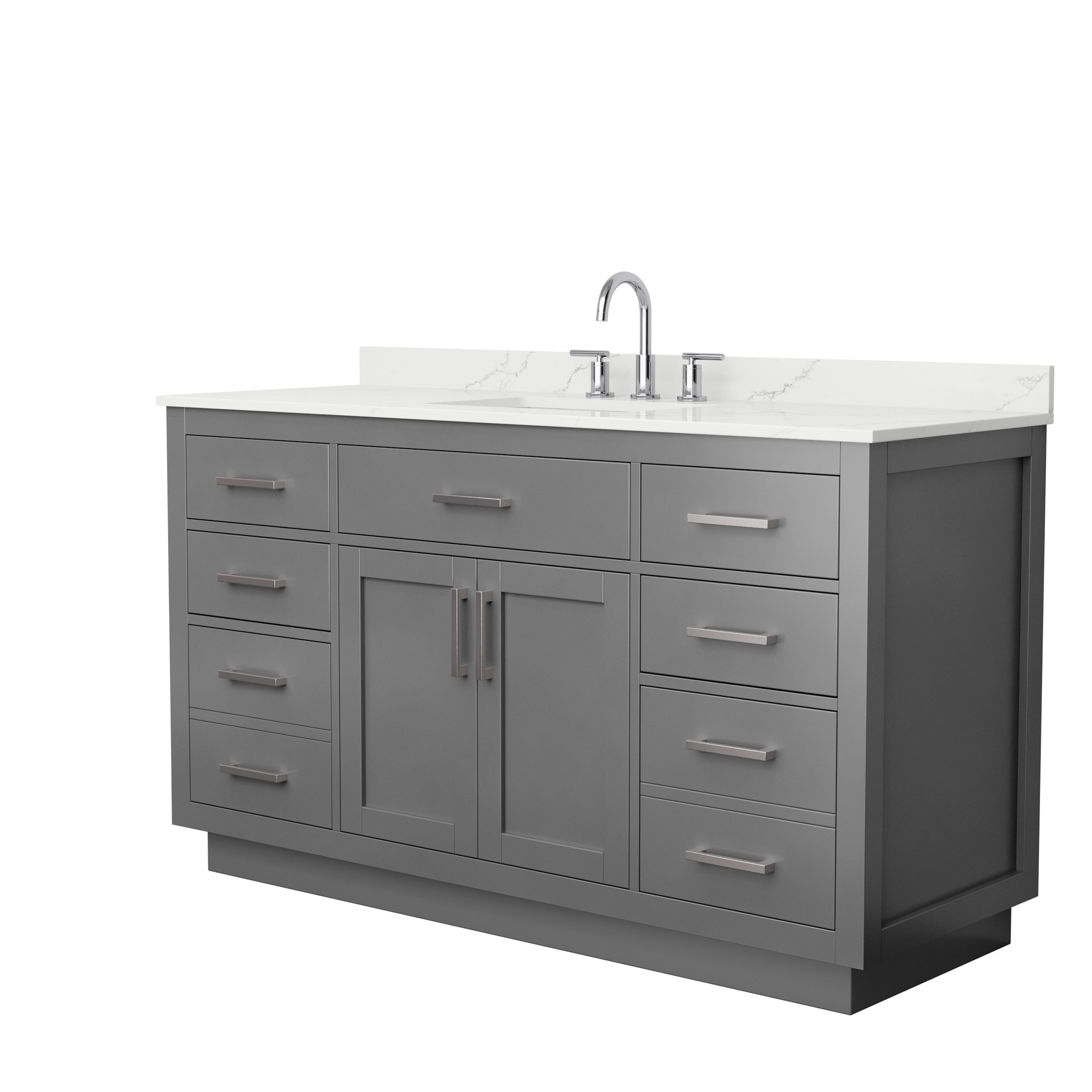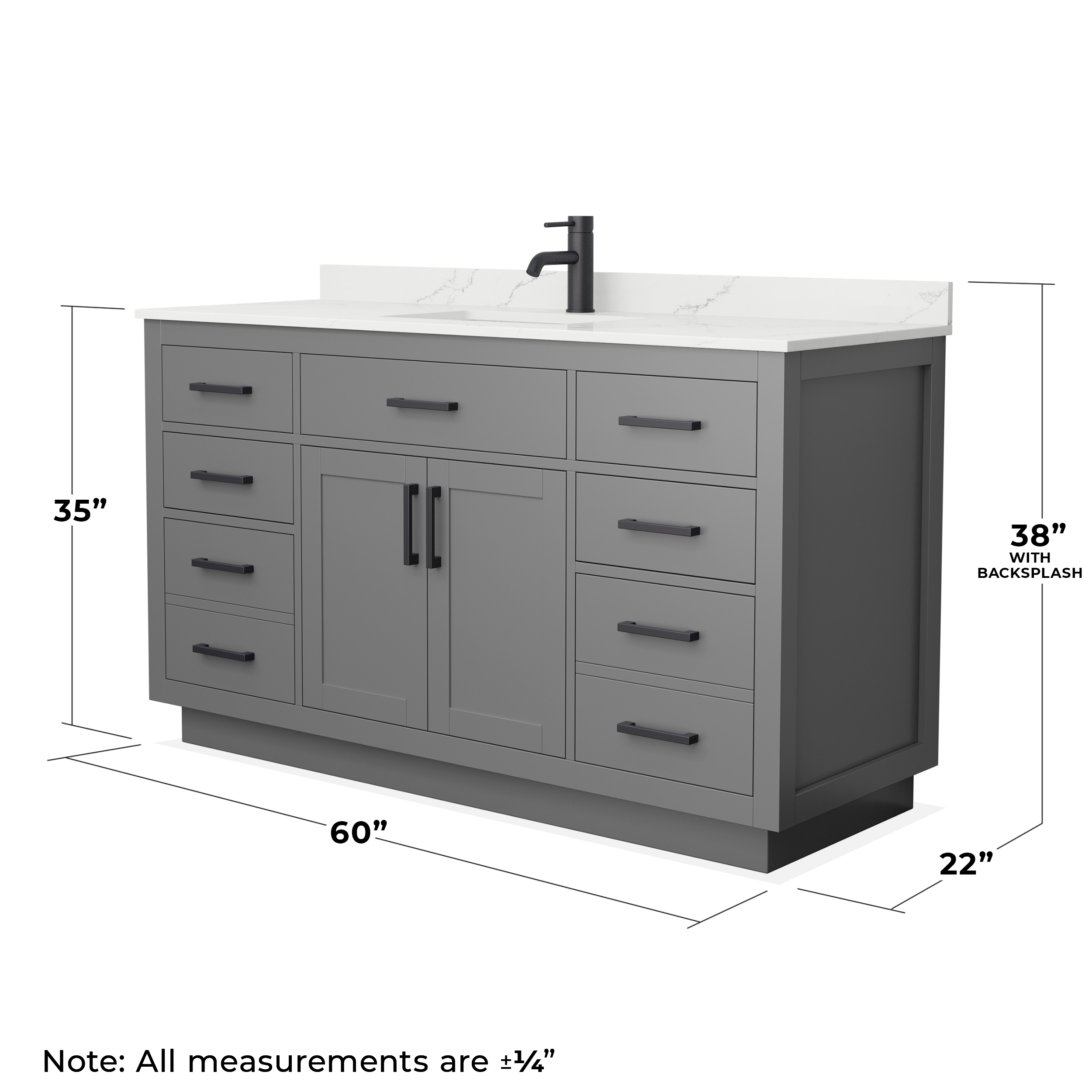 Beckett 60" Single Bathroom Vanity with Toe Kick, Quartz Counter - Dark Gray