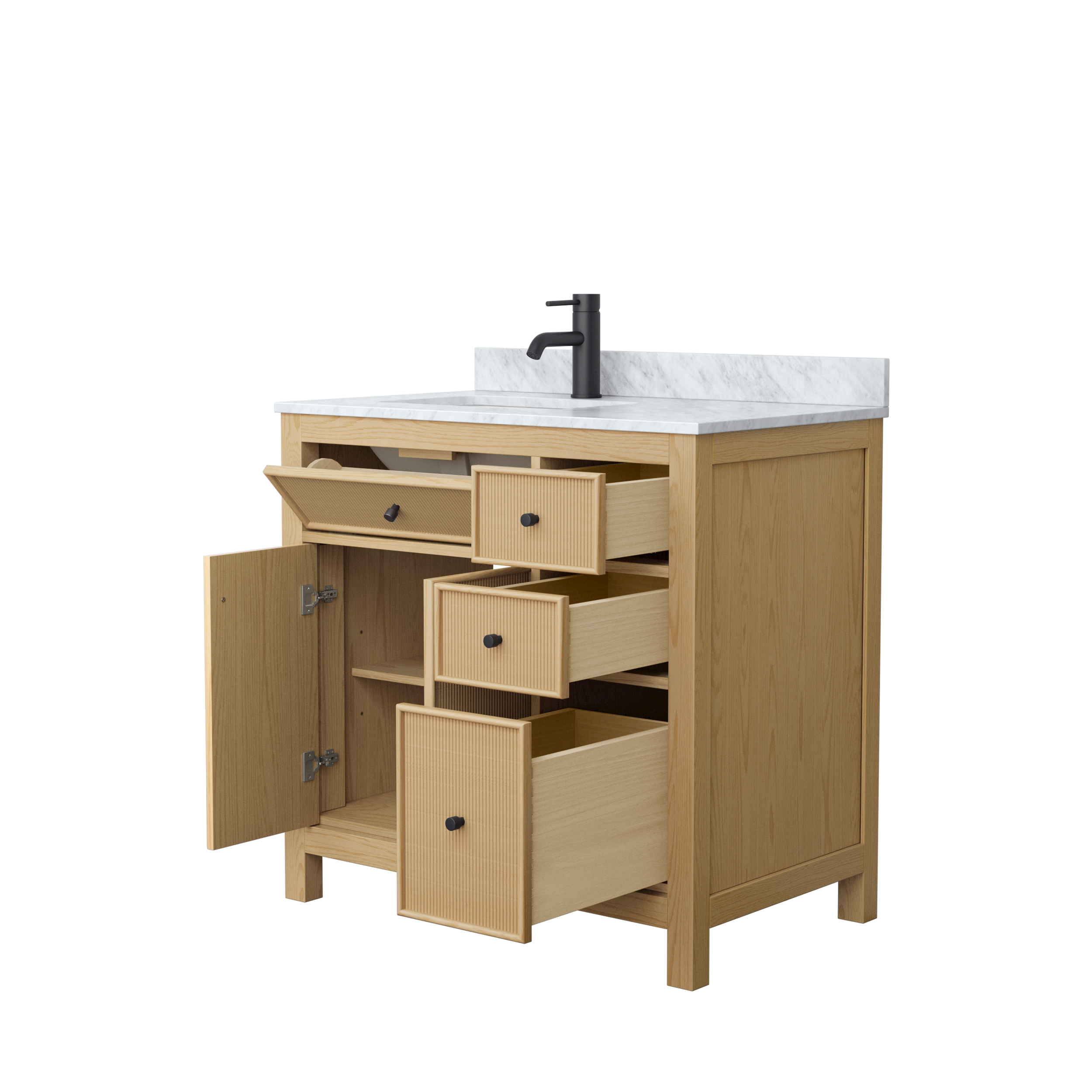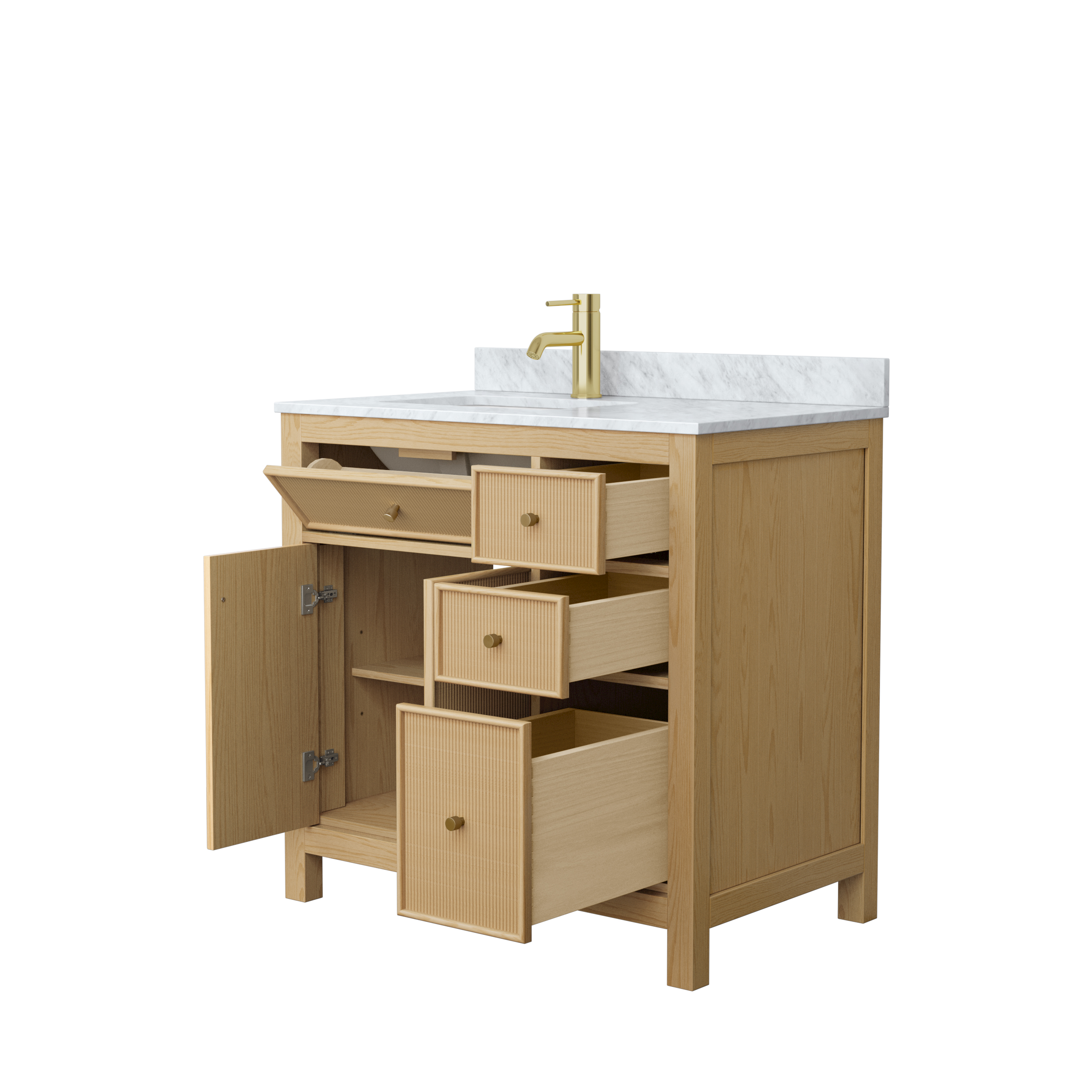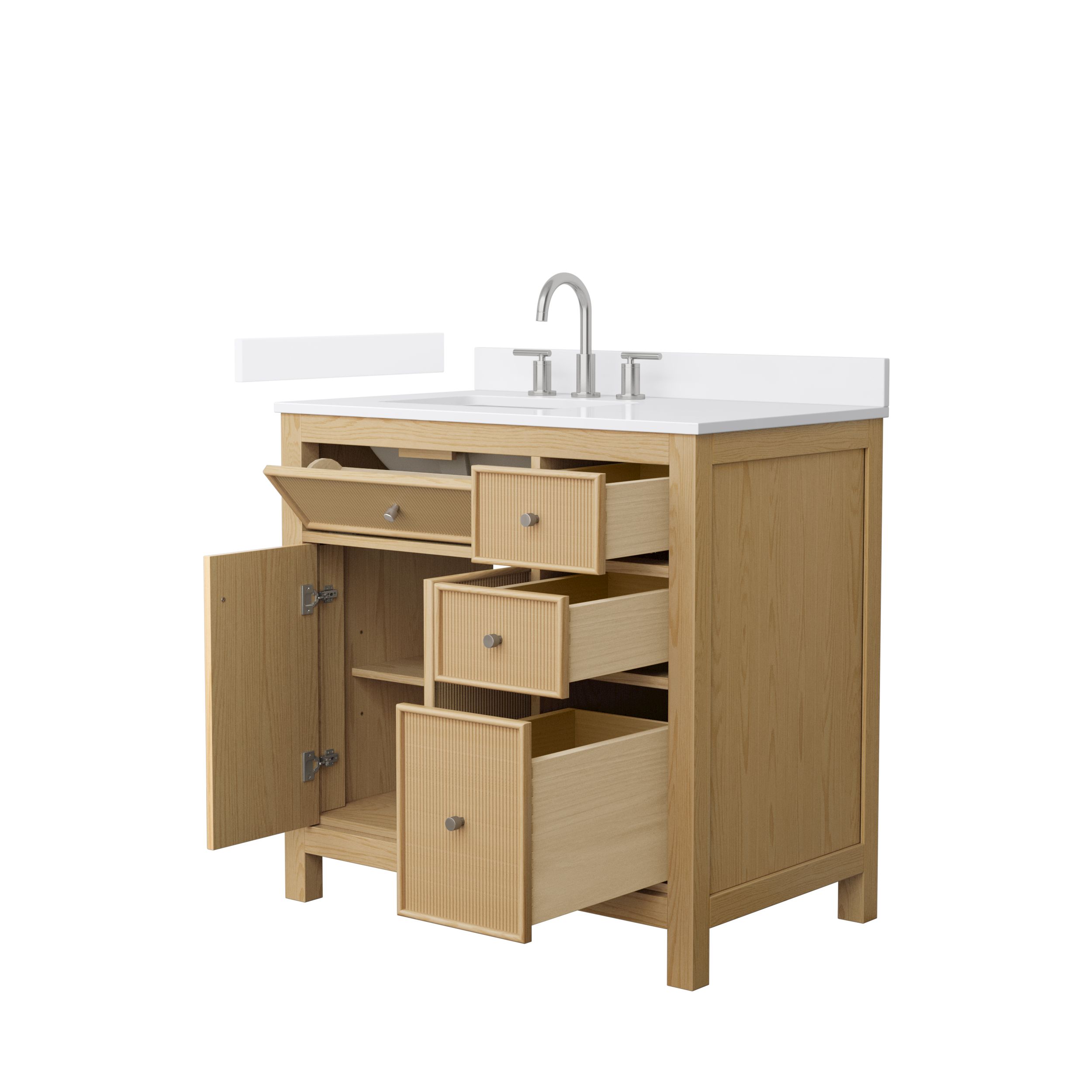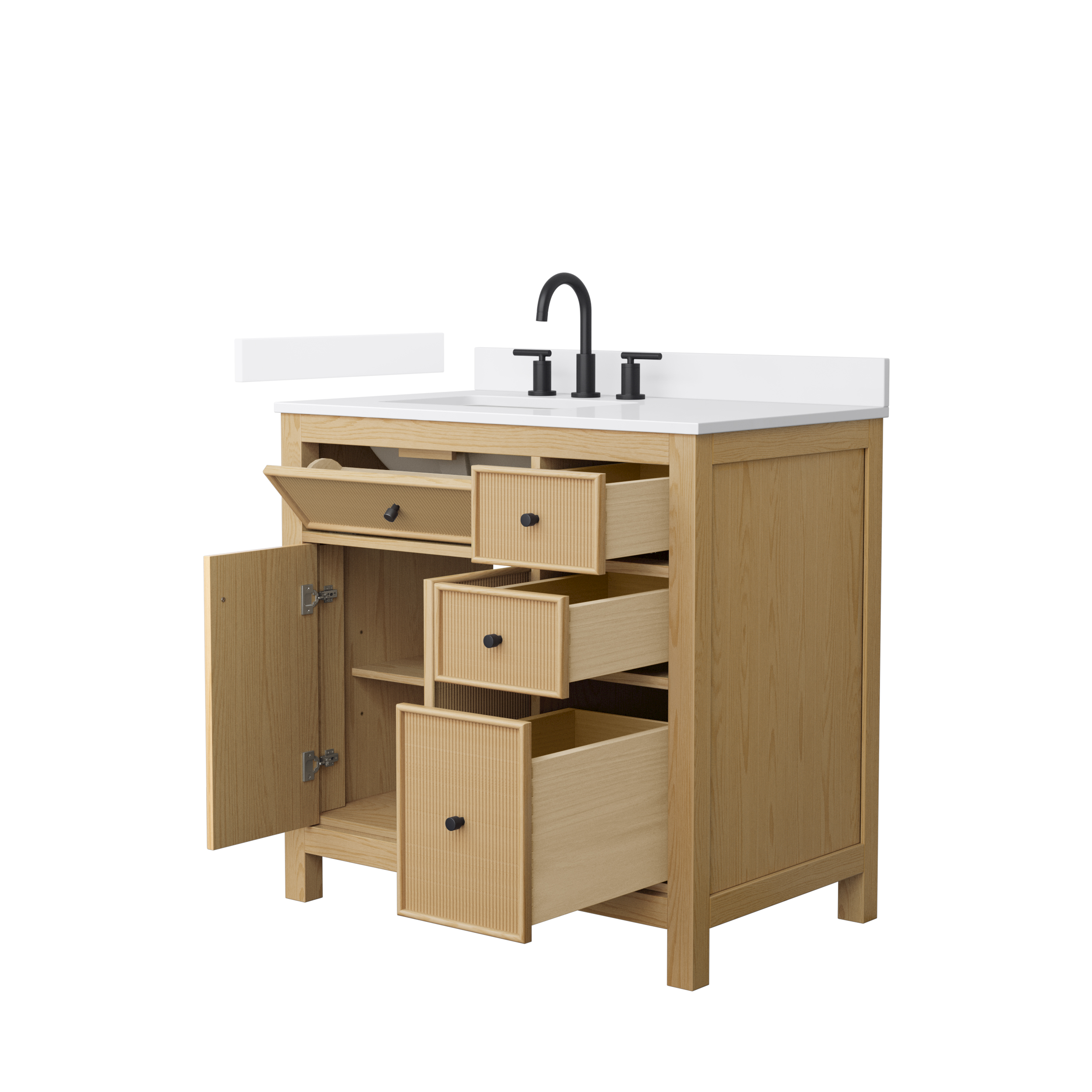 The Pendry wood veneered bathroom vanity collection beautifully blends natural country warmth with contemporary sophistication, creating a perfect centerpiece for any bathroom. Crafted from rich, natural wood veneers, it boasts a warm finish that highlights its organic grain and adds a cozy, inviting touch. Clean lines and minimalist hardware lend it a modern edge, while the soft-close drawers and doors ensure a quiet, seamless experience. Thoughtfully designed with ample counter and storage space to keep essentials neatly organized. This vanity is a harmonious mix of practicality and style, perfect for enhancing the character and functionality of your bathroom.