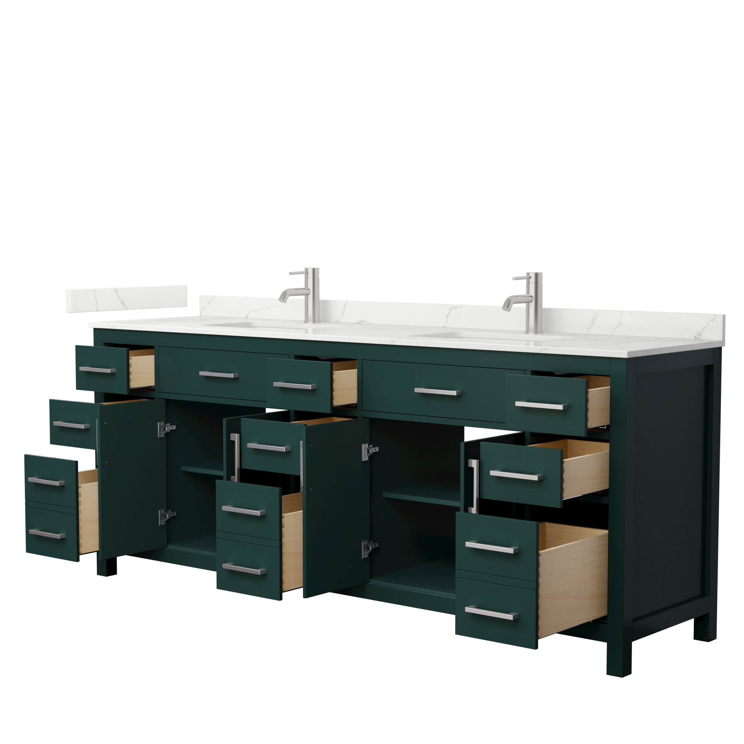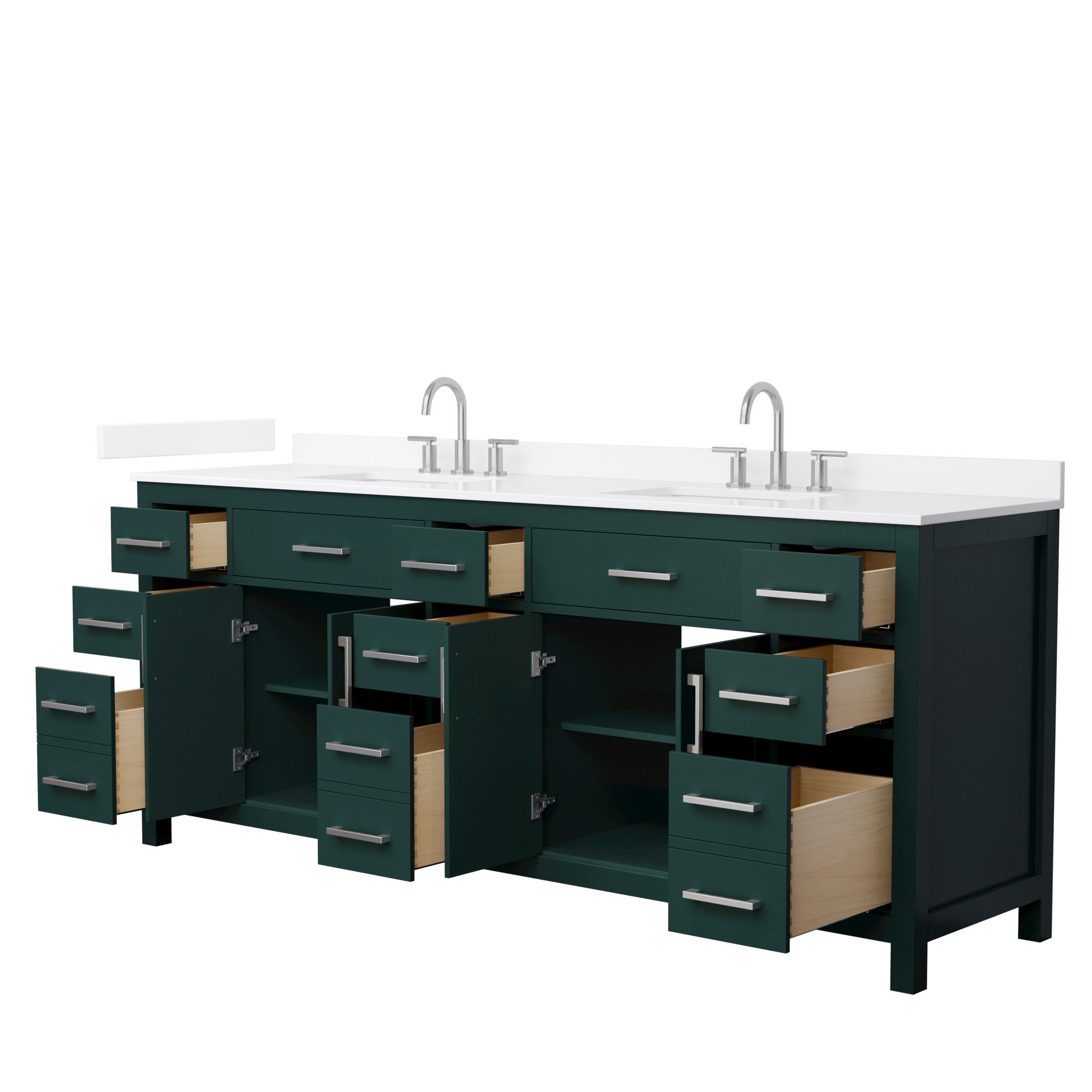 Fantastic value and classic design. The elegant Beckett vanity has it all, with quality touches like brushed nickel, brushed gold, or matte black accents, dove-tailed drawers, cultured marble counters and soft-close doors and drawers. Ample storage and a double-depth lower drawer give you plenty of room for those bathroom necessities. Do your bathroom right, with the beautiful Beckett vanity series.