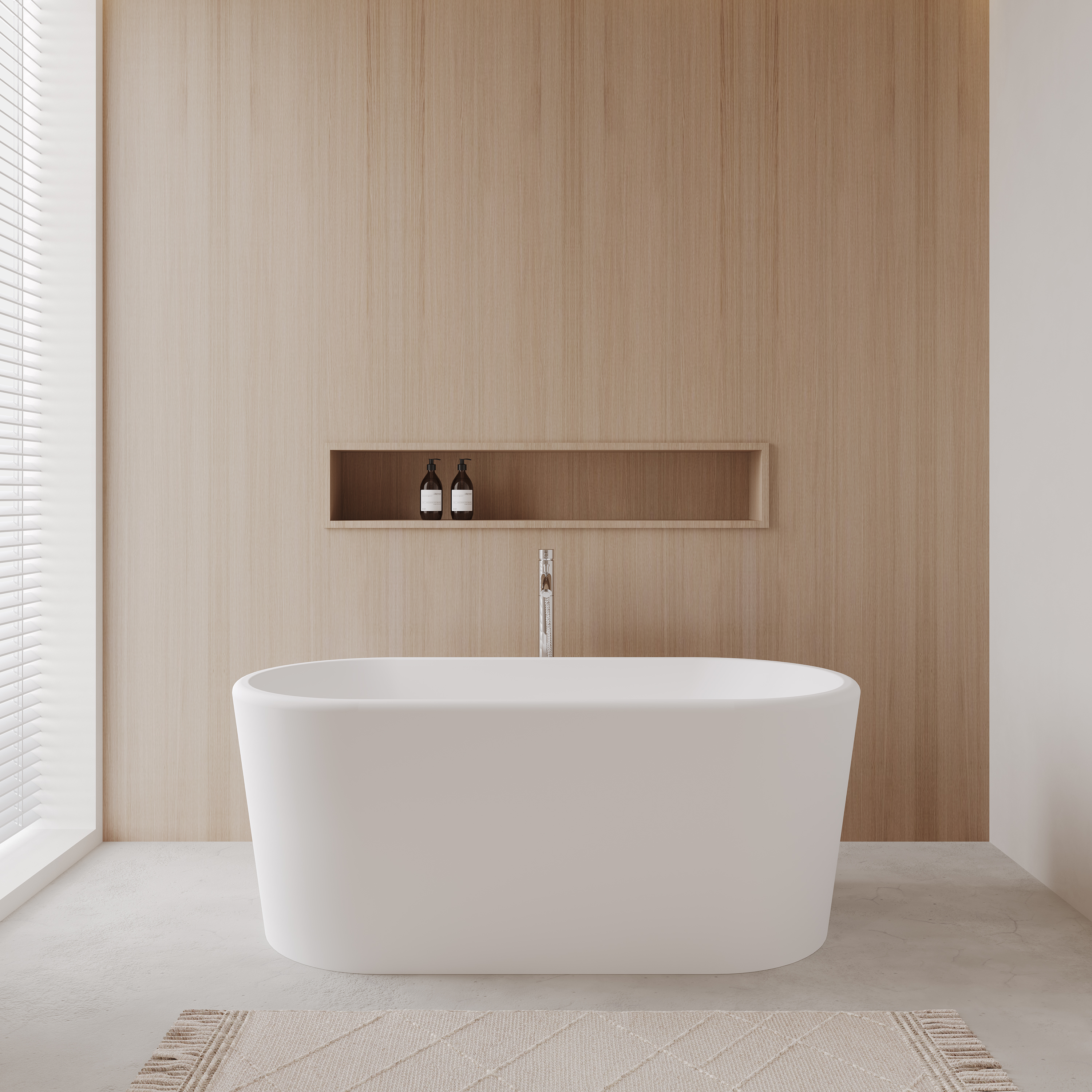 Surround yourself with tranquility and comfort in the Ursula freestanding bathtub. Combining luxury with practicality, the oval, ergonomic design conforms to and supports your body as you stretch out and enjoy a deep, relaxing soak. With its gracefully shaped lines and elegant profile, this versatile bath complements a wide range of bathroom styles and offers easy installation. Definitely a talking point in any updated bathroom.