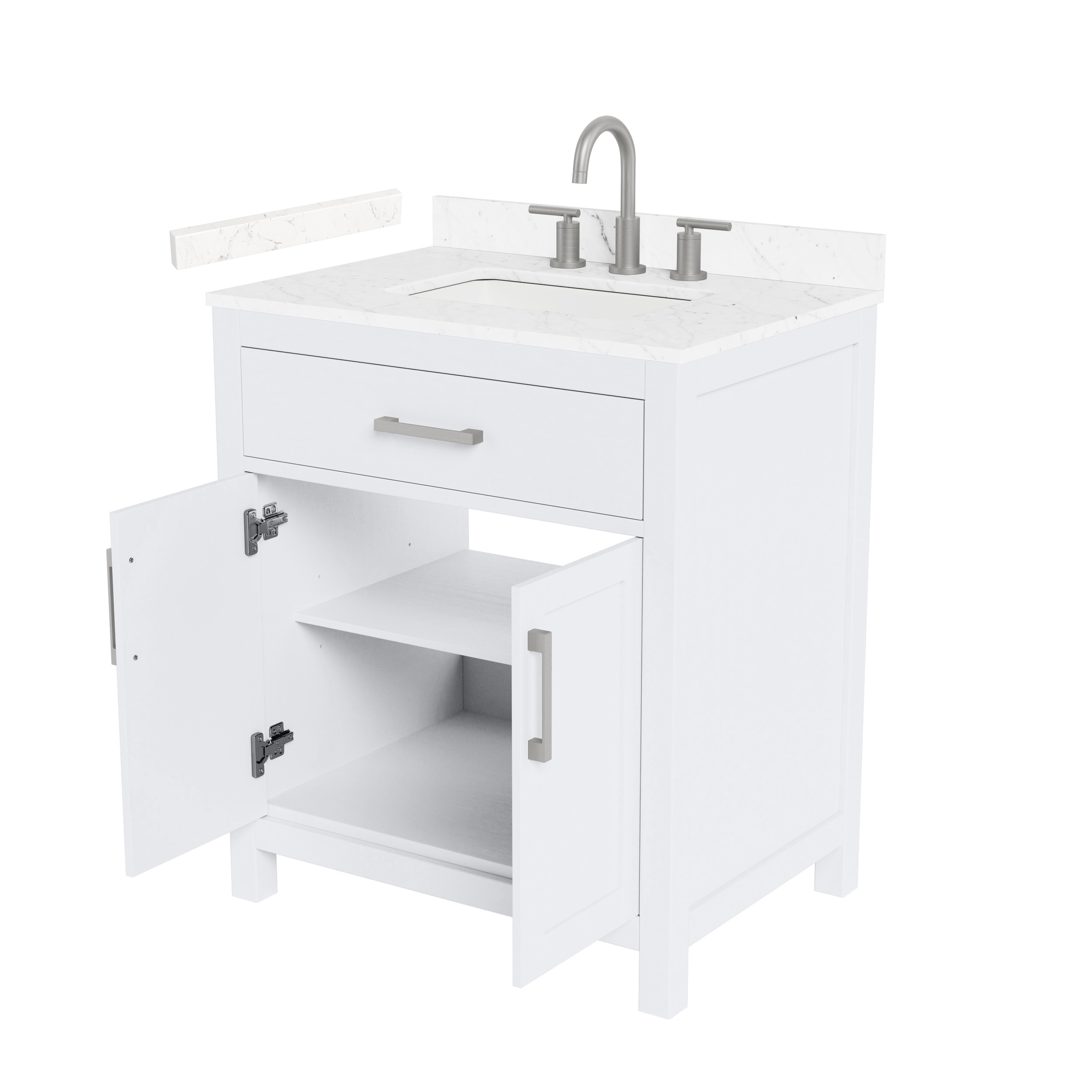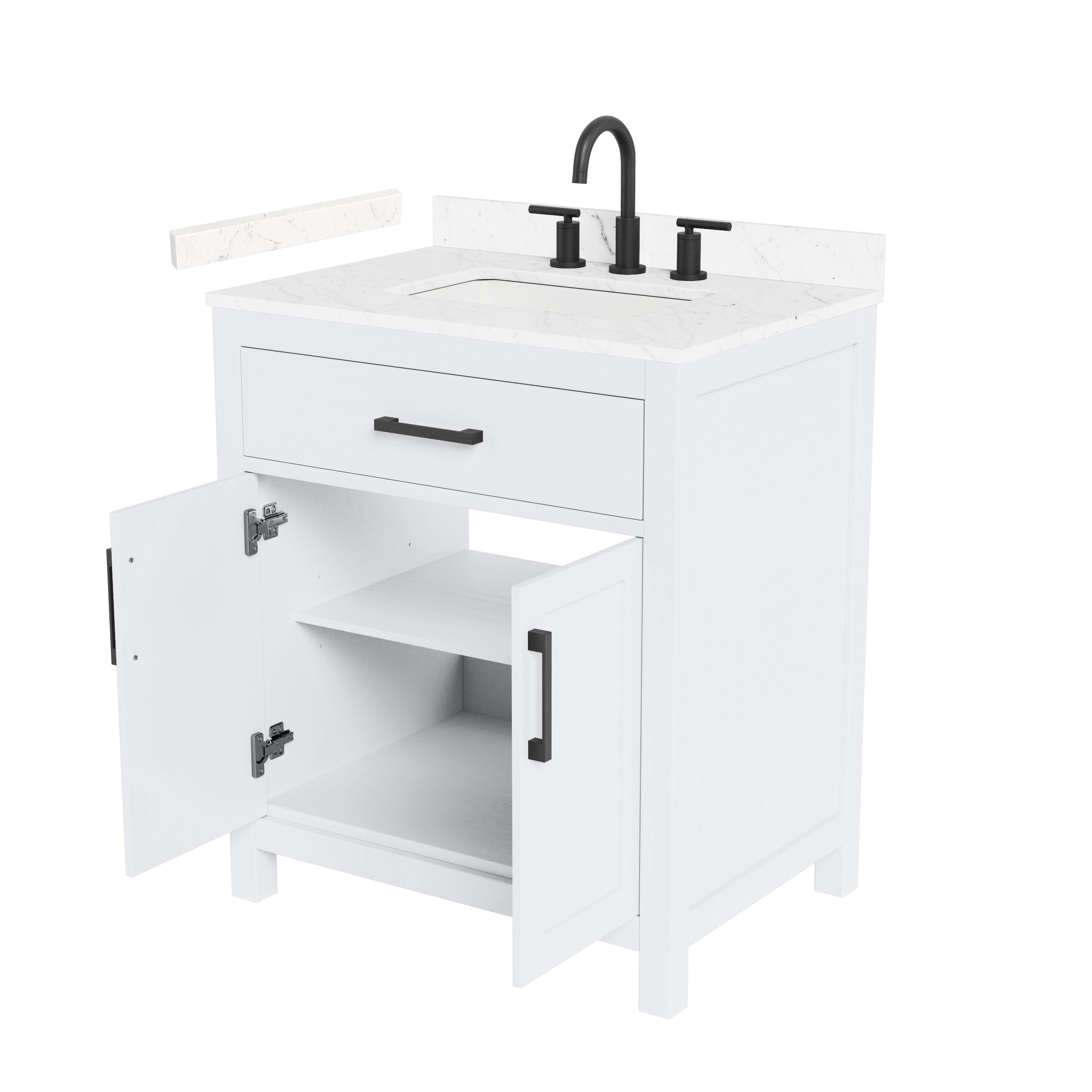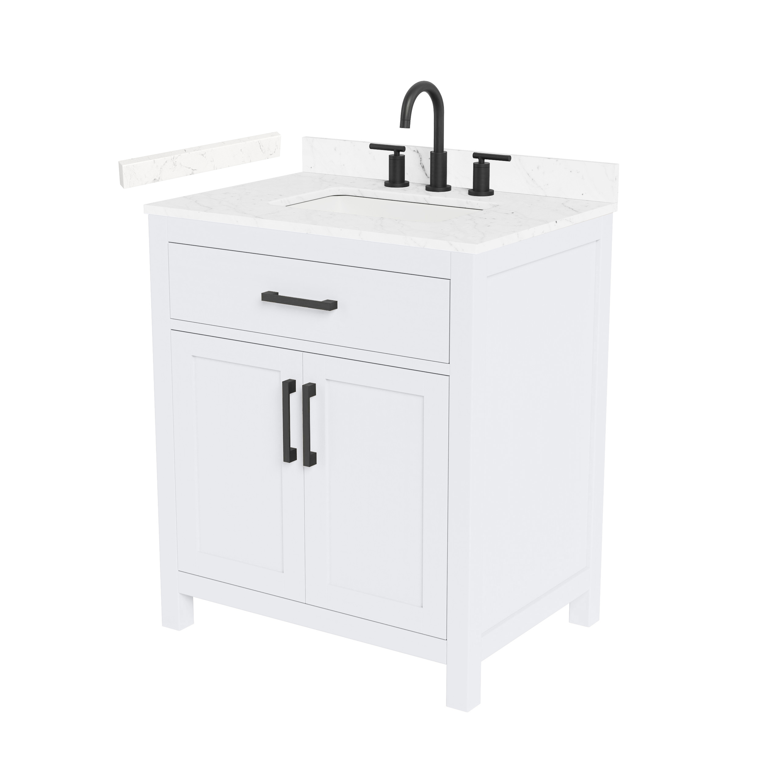 Fantastic value and classic design. The elegant Beckett vanity has it all, with quality touches like brushed nickel, brushed gold, or matte black accents, and soft-close doors and drawers. Ample storage and a double-depth lower drawer give you plenty of room for those bathroom necessities. Do your bathroom right, with the beautiful Beckett vanity series.