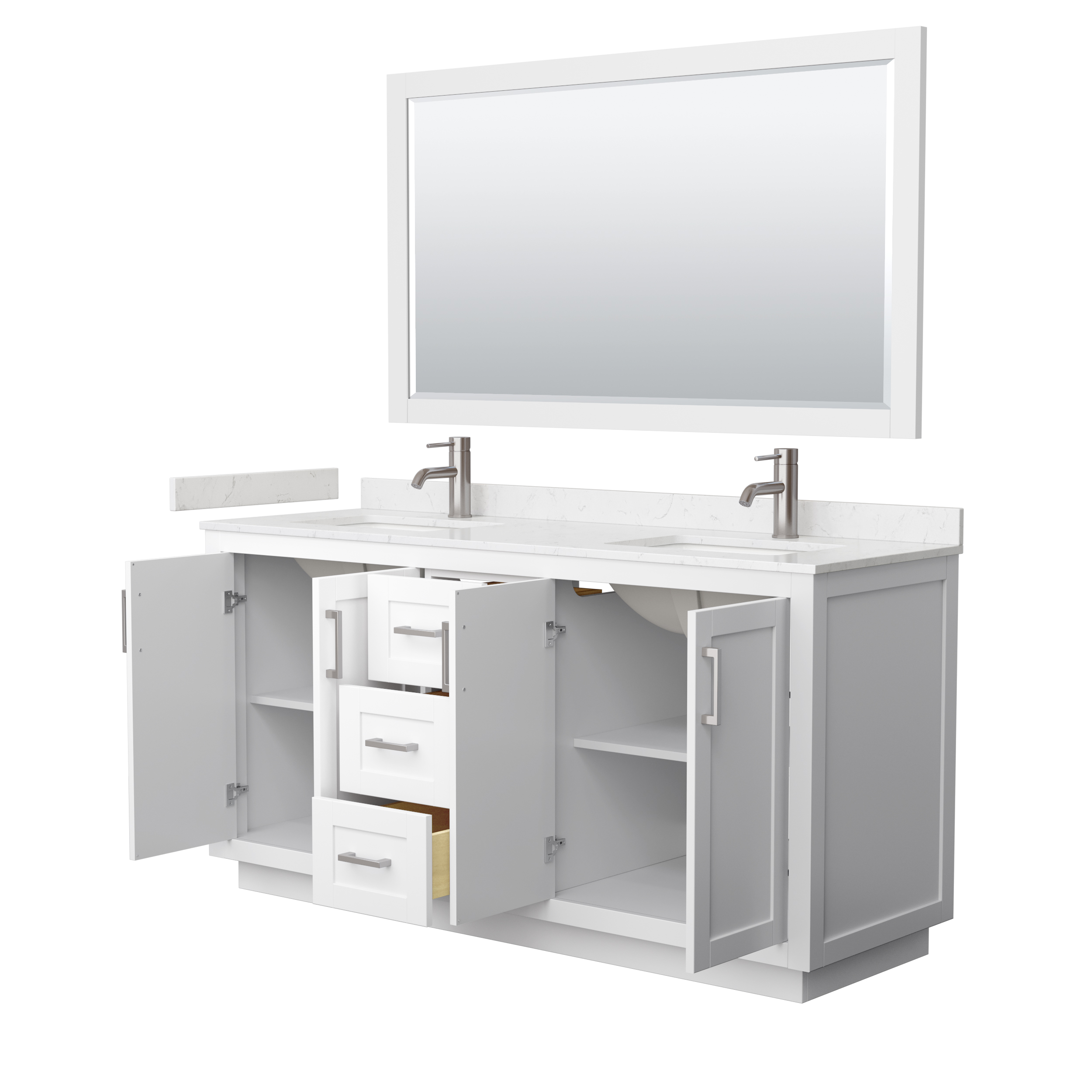 Sleek and Chic are the best words to describe this European shaker vanity, a piece that bridges modern and contemporary. The Miranda vanity is manufactured in high quality durable materials and finished to the exacting standards you've come to expect from the Wyndham Collection. With function as important as form, the elegant design focuses on ample storage and counter space, a choice of three handle colors, and 3D adjustable soft-close doors and dovetail drawers. Available with your choice of beautiful Quartz, Carrara Marble, or Cultured Marble counter.