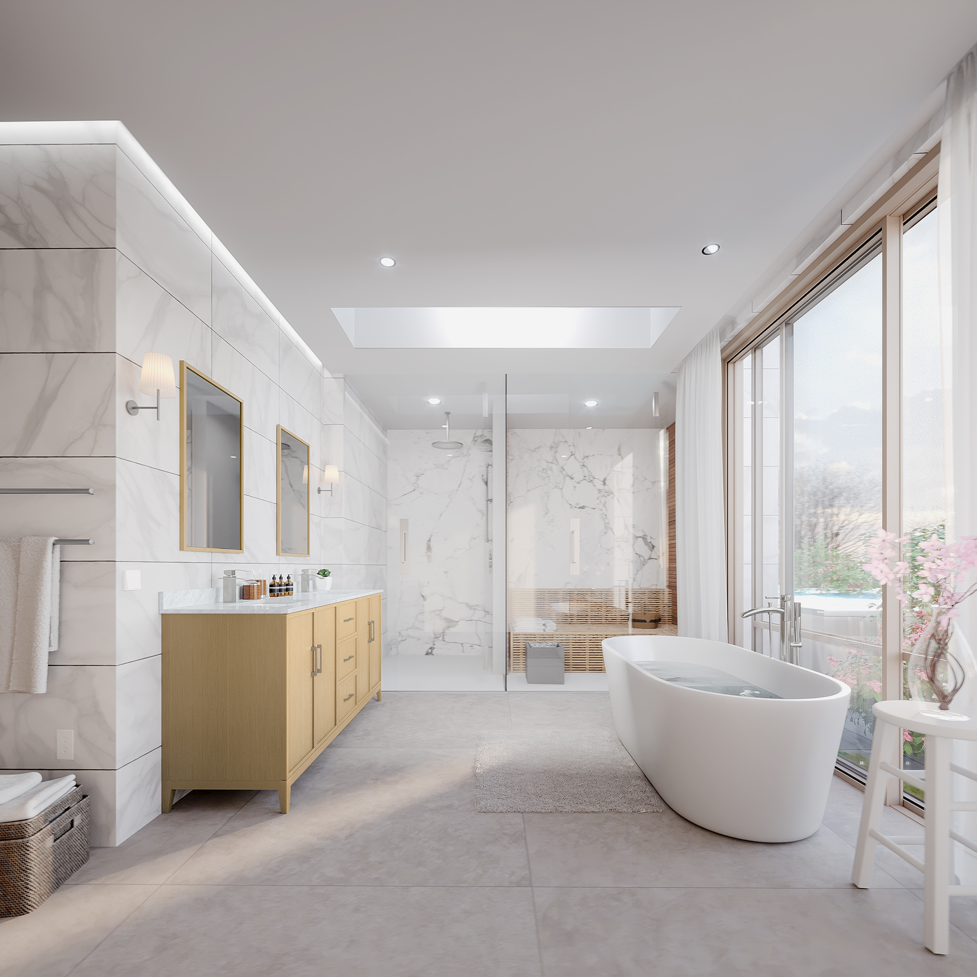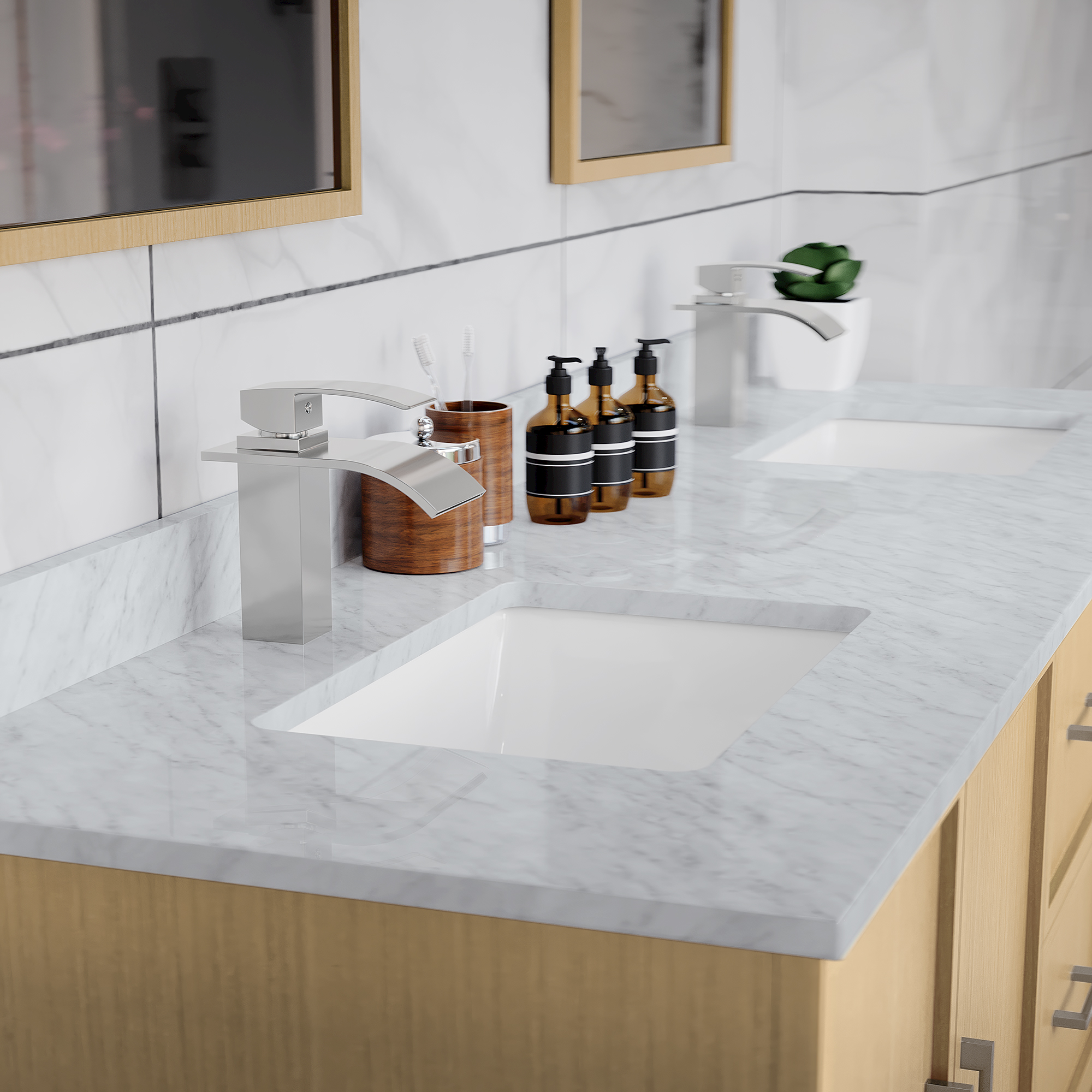 • Counter options include Giotto Quartz, White Quartz, White Carrara Marble, White Cultured Marble, or Carrara Cultured Marble