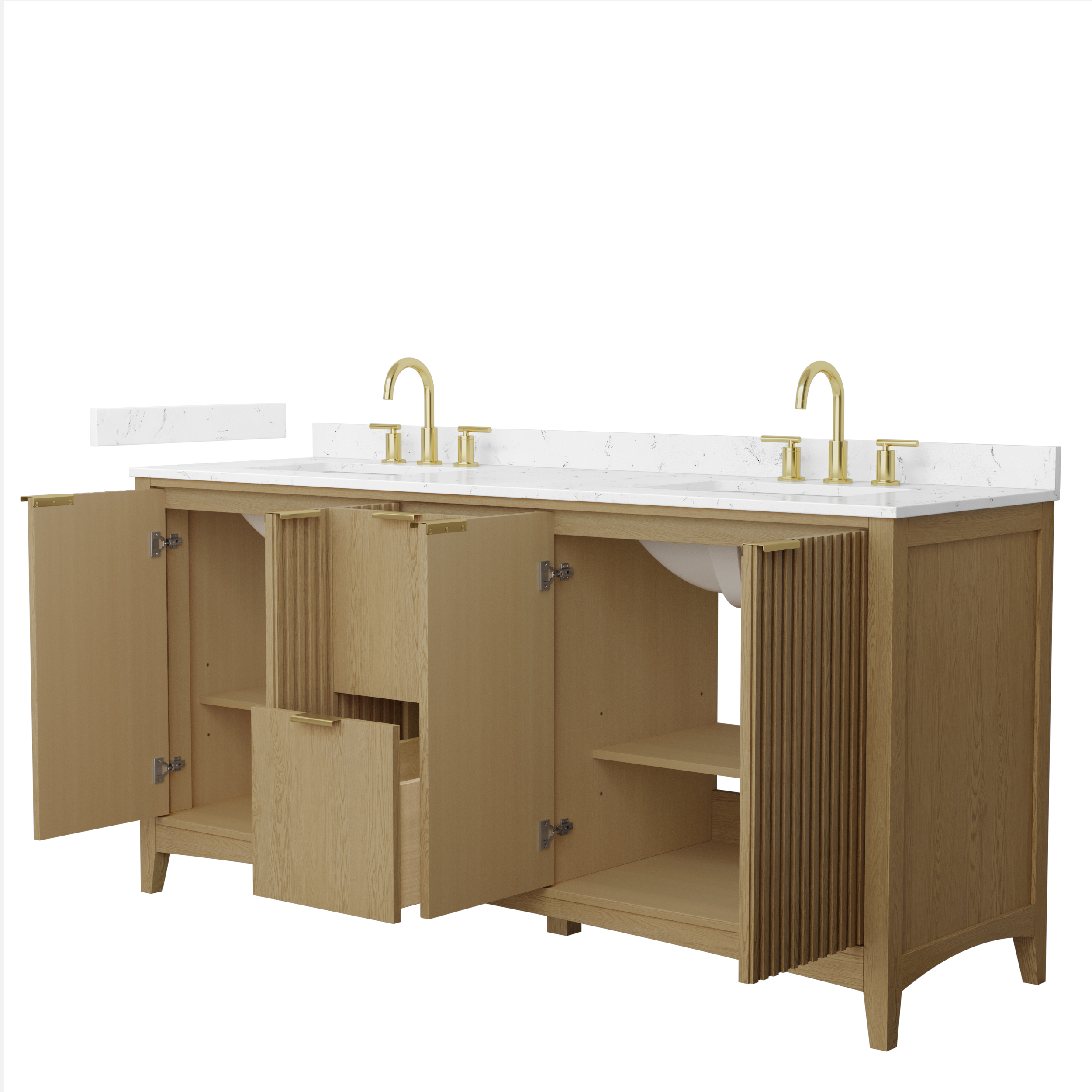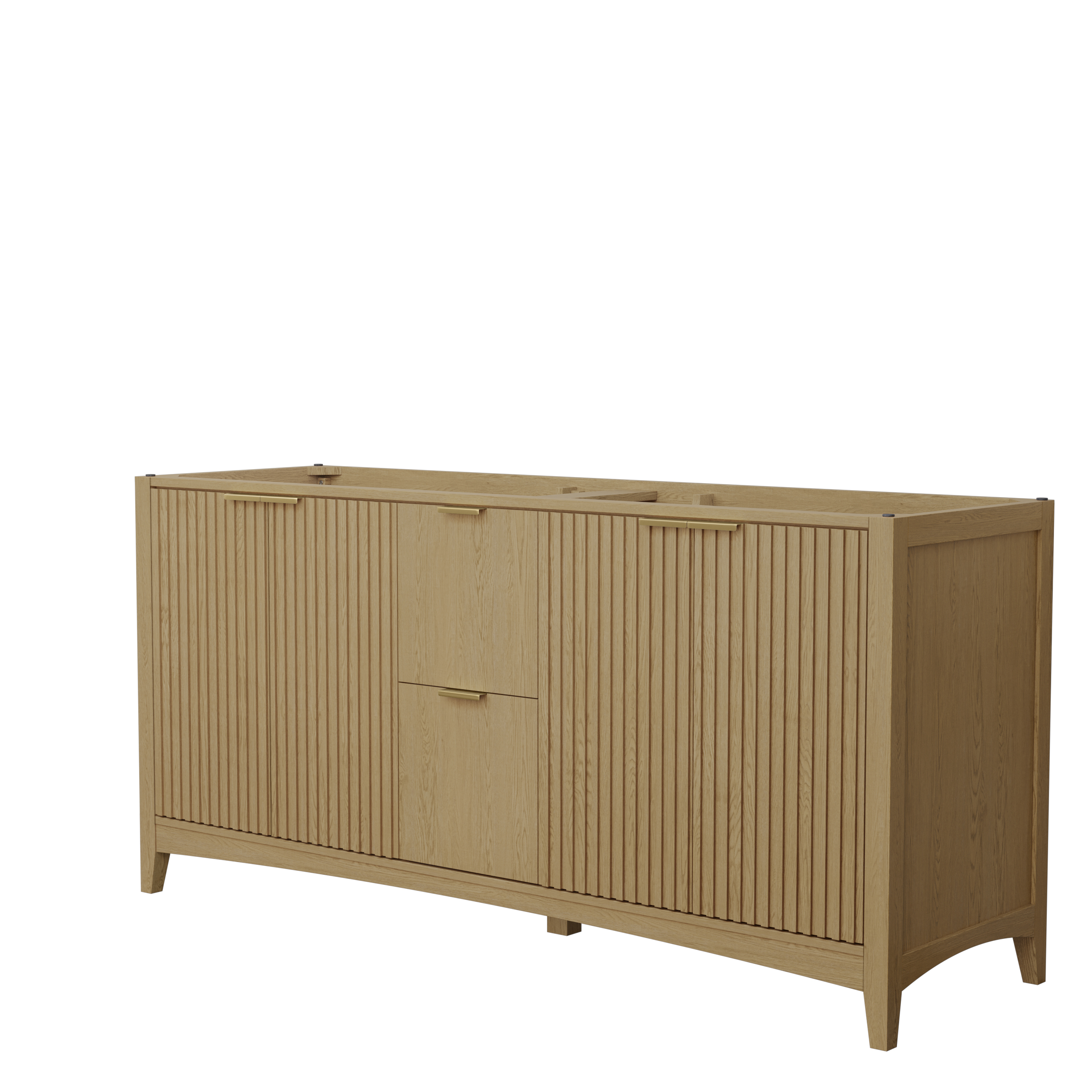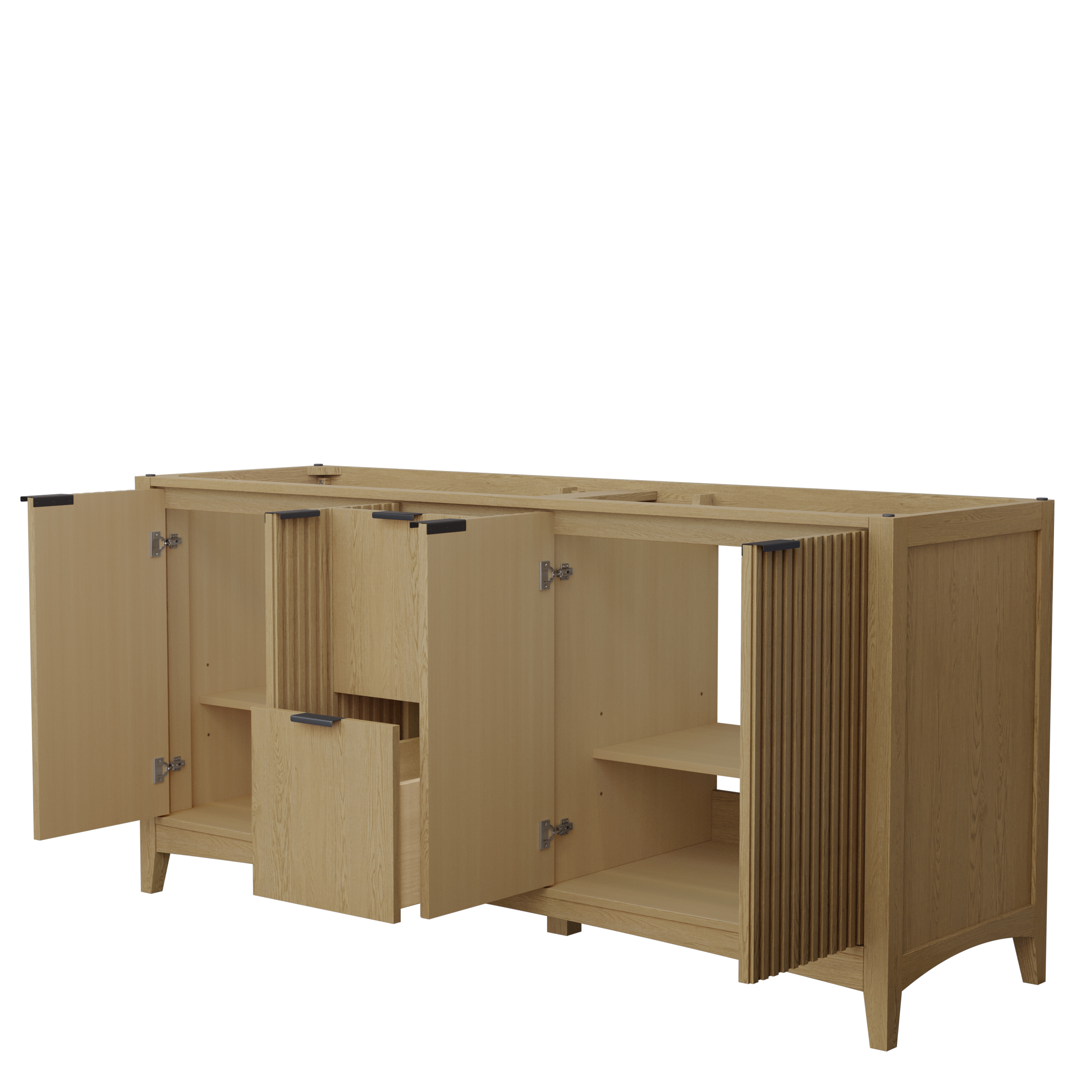 The Palmilla bathroom vanity series seamlessly blends classic European charm with sleek modern design. Crafted from high-quality wood veneers, it features elegant reeded doors that exude timeless sophistication, while minimalist hardware adds a contemporary edge. Soft-close drawers and doors provide a touch of luxury and ensure quiet functionality. Designed with practicality in mind, it boasts ample storage space to keep essentials organized and clutter-free. The spacious countertop offers plenty of room for daily routines, combining functionality with aesthetic appeal. Perfect for elevating any bathroom, this vanity balances old-world grace with clean, contemporary lines to create a truly versatile centerpiece.