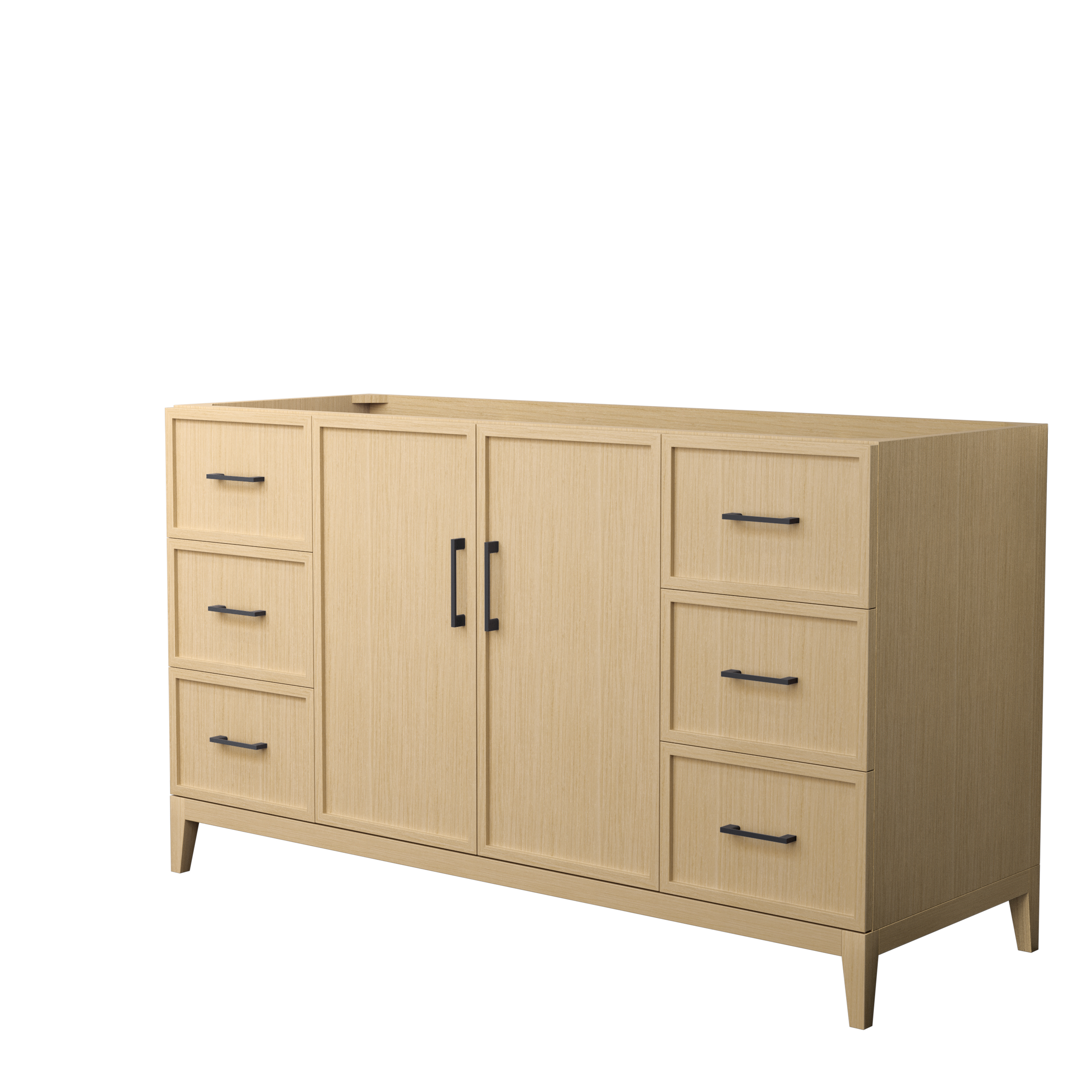 This transitional bathroom vanity exudes sleek sophistication with its clean lines and minimalist slim shaker design. The Elan vanity is crafted from high-quality materials like solid wood and plywood, with counters in multiple material options. Quartz and cultured stone counters include a back-and side-splash. Finished painted or in rift-cut white oak veneer, it seamlessly combines beauty and real-life usefulness. Its integrated, soft-closing drawers (featuring 3D adjustable glides) and doors offer ample storage space for toiletries, towels, and other essentials, keeping the space clutter-free. The sleek, angular hardware contributes to the overall aesthetic, creating a stylish focal point in the bathroom. Elevate your bathroom haven without compromising form or function.