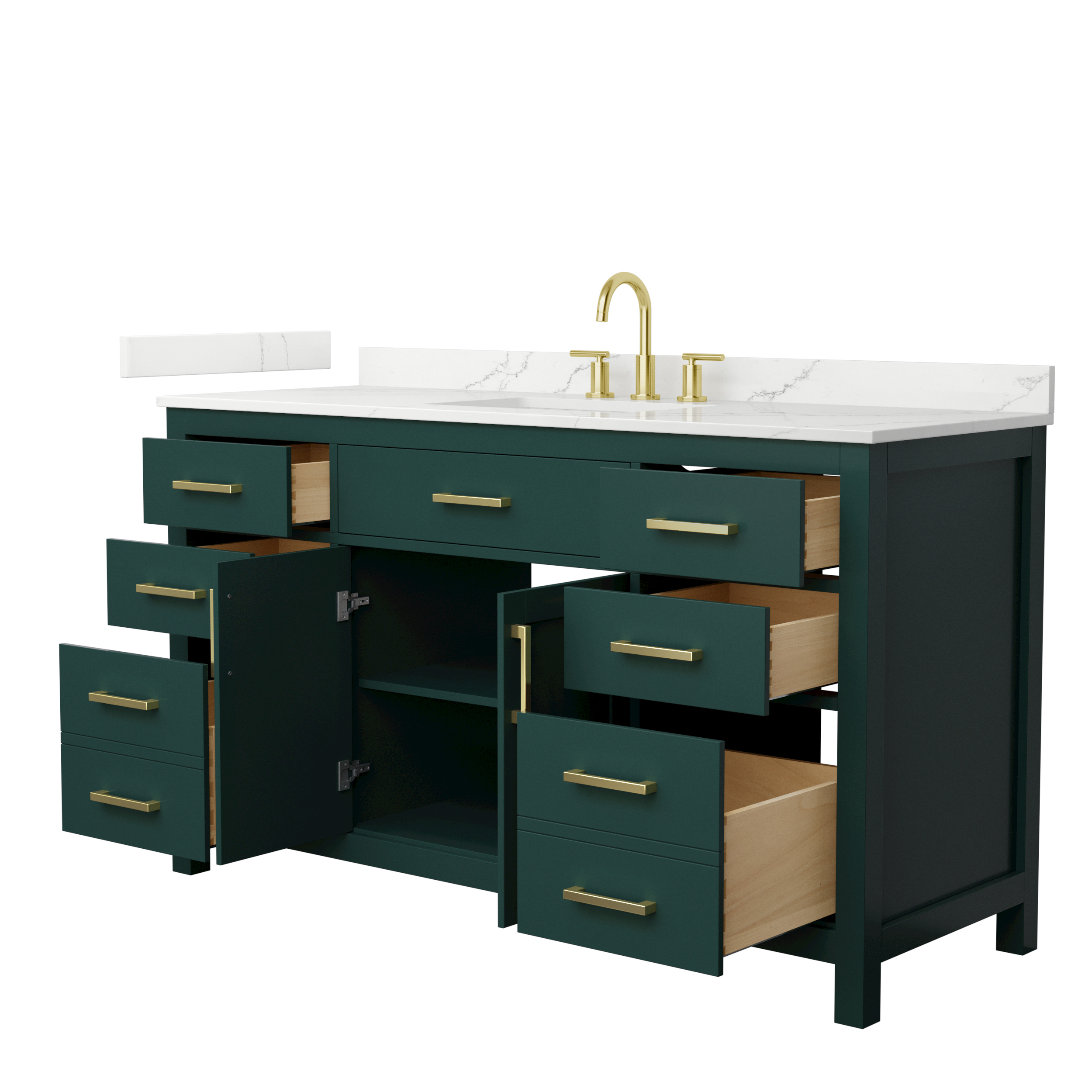 Fantastic value and classic design. The elegant Beckett vanity has it all, with quality touches like brushed nickel, brushed gold, or matte black accents, dove-tailed drawers, cultured marble counters and soft-close doors and drawers. Ample storage and a double-depth lower drawer give you plenty of room for those bathroom necessities. Do your bathroom right, with the beautiful Beckett vanity series.