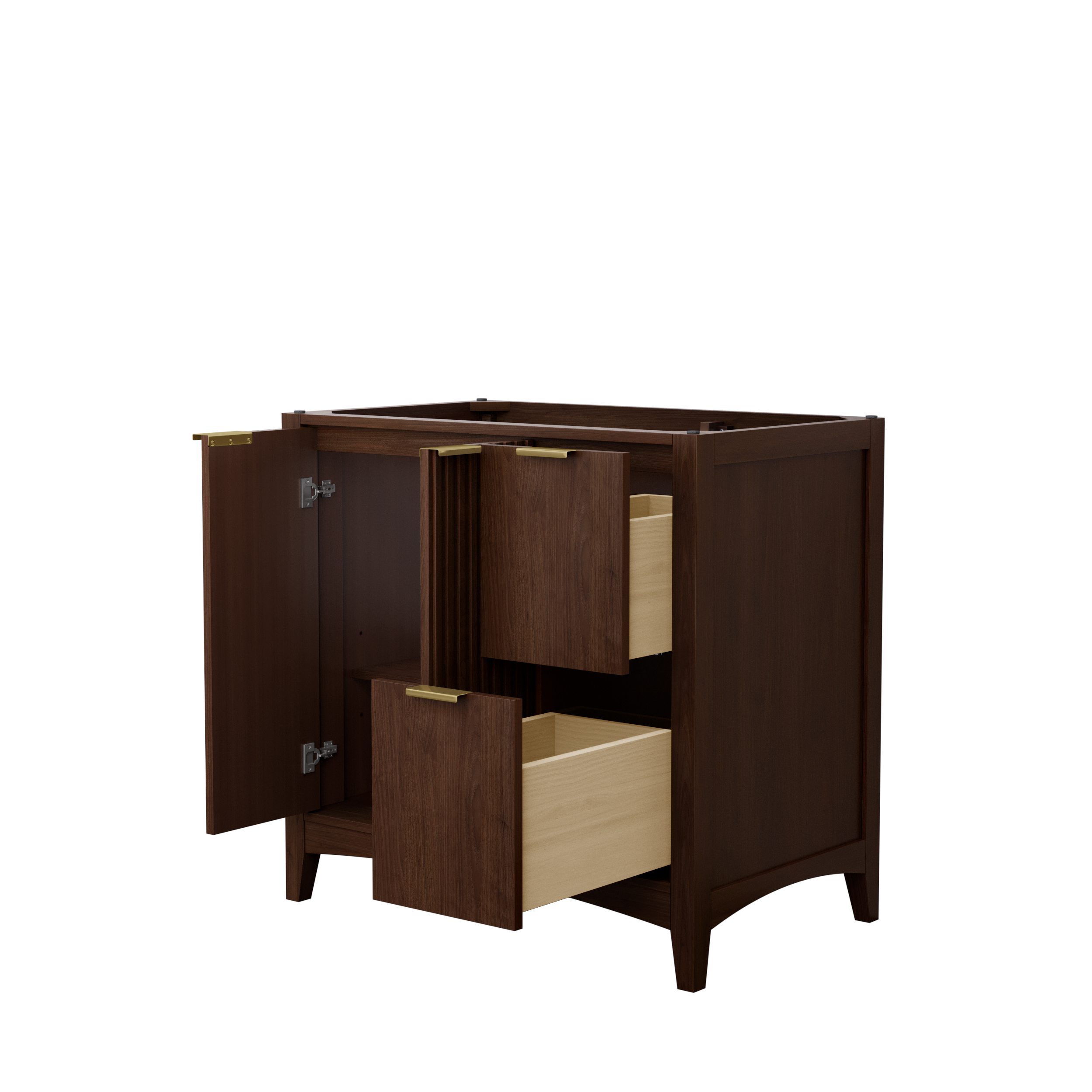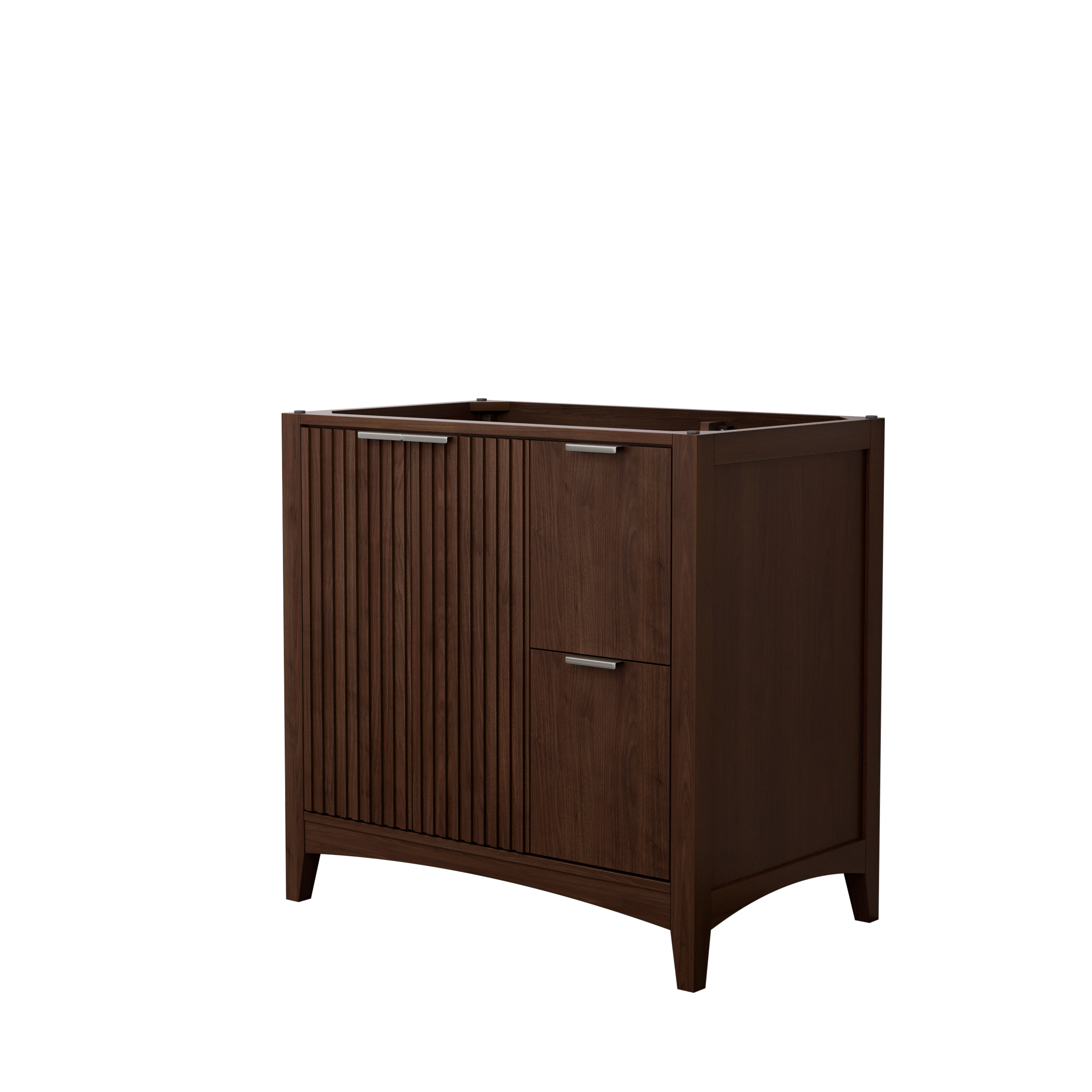 The Palmilla bathroom vanity series seamlessly blends classic European charm with sleek modern design. Crafted from high-quality wood veneers, it features elegant reeded doors that exude timeless sophistication, while minimalist hardware adds a contemporary edge. Soft-close drawers and doors provide a touch of luxury and ensure quiet functionality. Designed with practicality in mind, it boasts ample storage space to keep essentials organized and clutter-free. The spacious countertop offers plenty of room for daily routines, combining functionality with aesthetic appeal. Perfect for elevating any bathroom, this vanity balances old-world grace with clean, contemporary lines to create a truly versatile centerpiece.