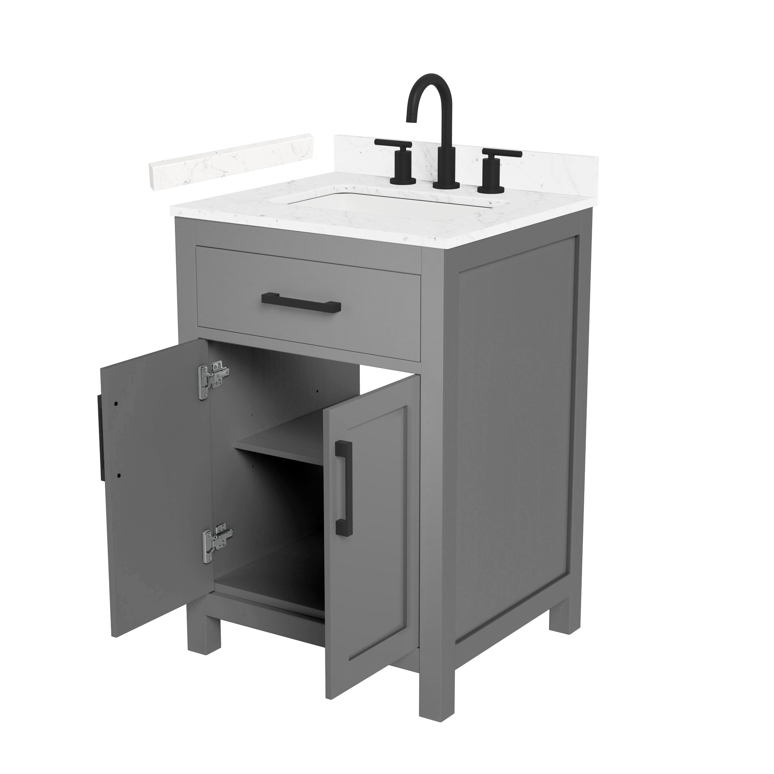 Fantastic value and classic design. The elegant Beckett vanity has it all, with quality touches like brushed nickel, brushed gold, or matte black accents, and soft-close doors and drawers. Ample storage and a double-depth lower drawer give you plenty of room for those bathroom necessities. Do your bathroom right, with the beautiful Beckett vanity series.