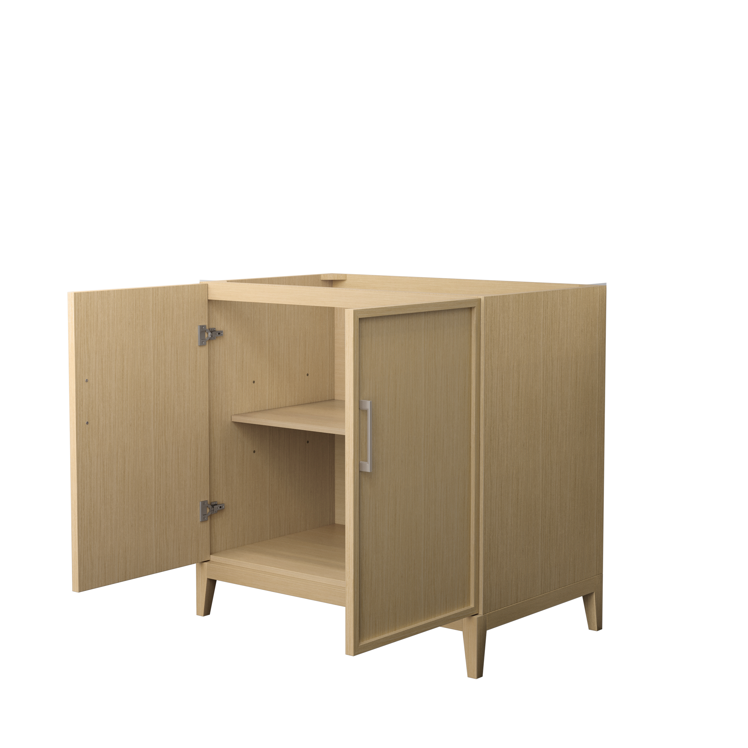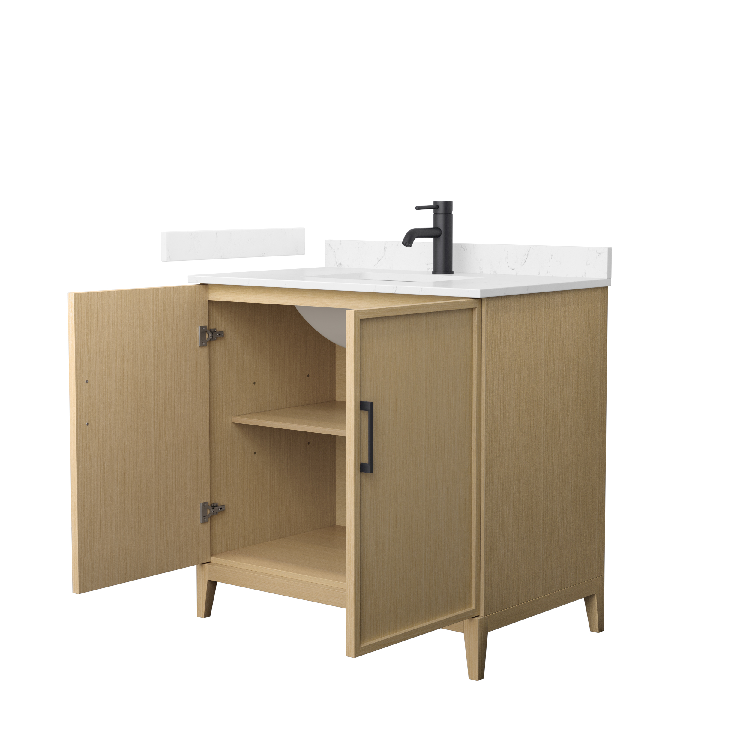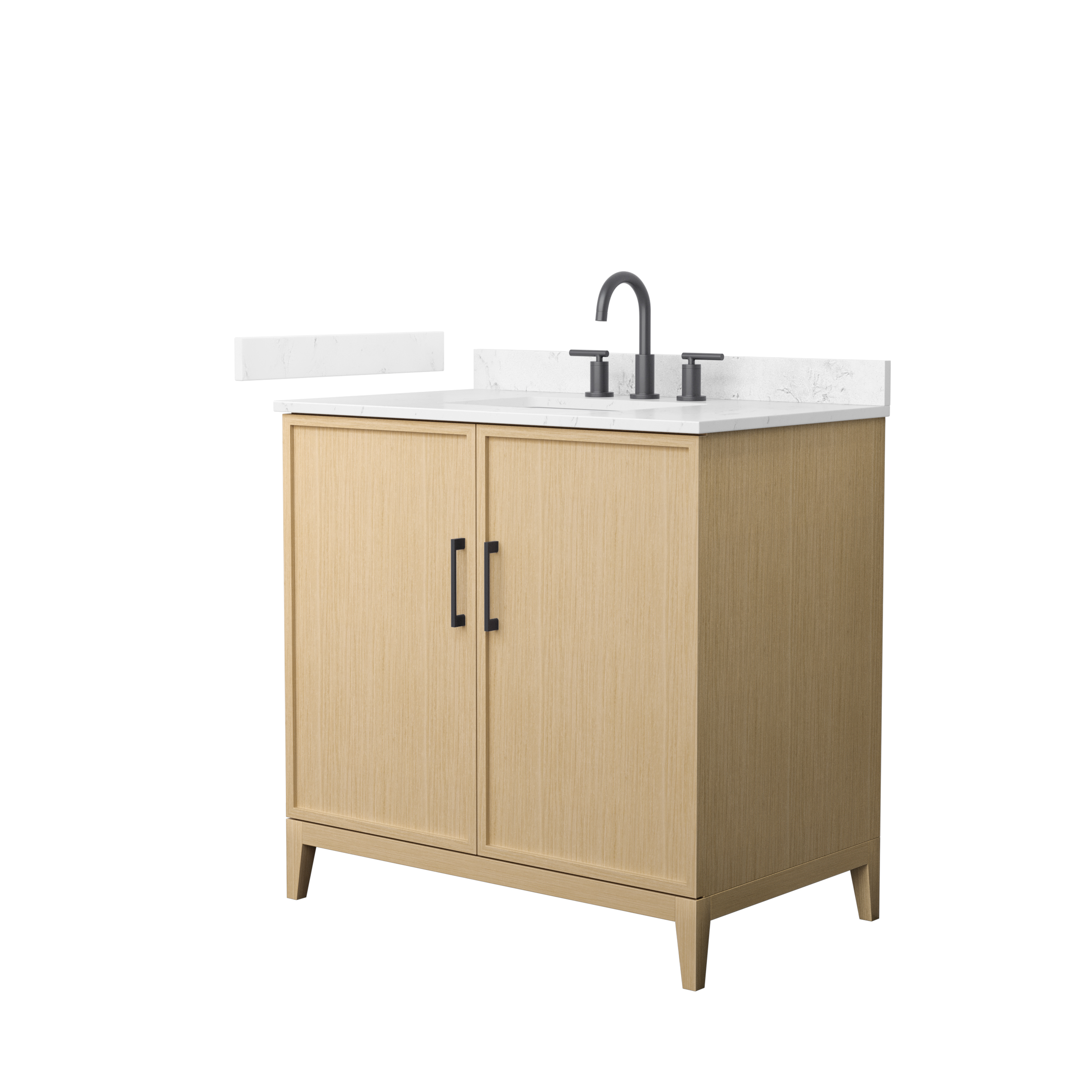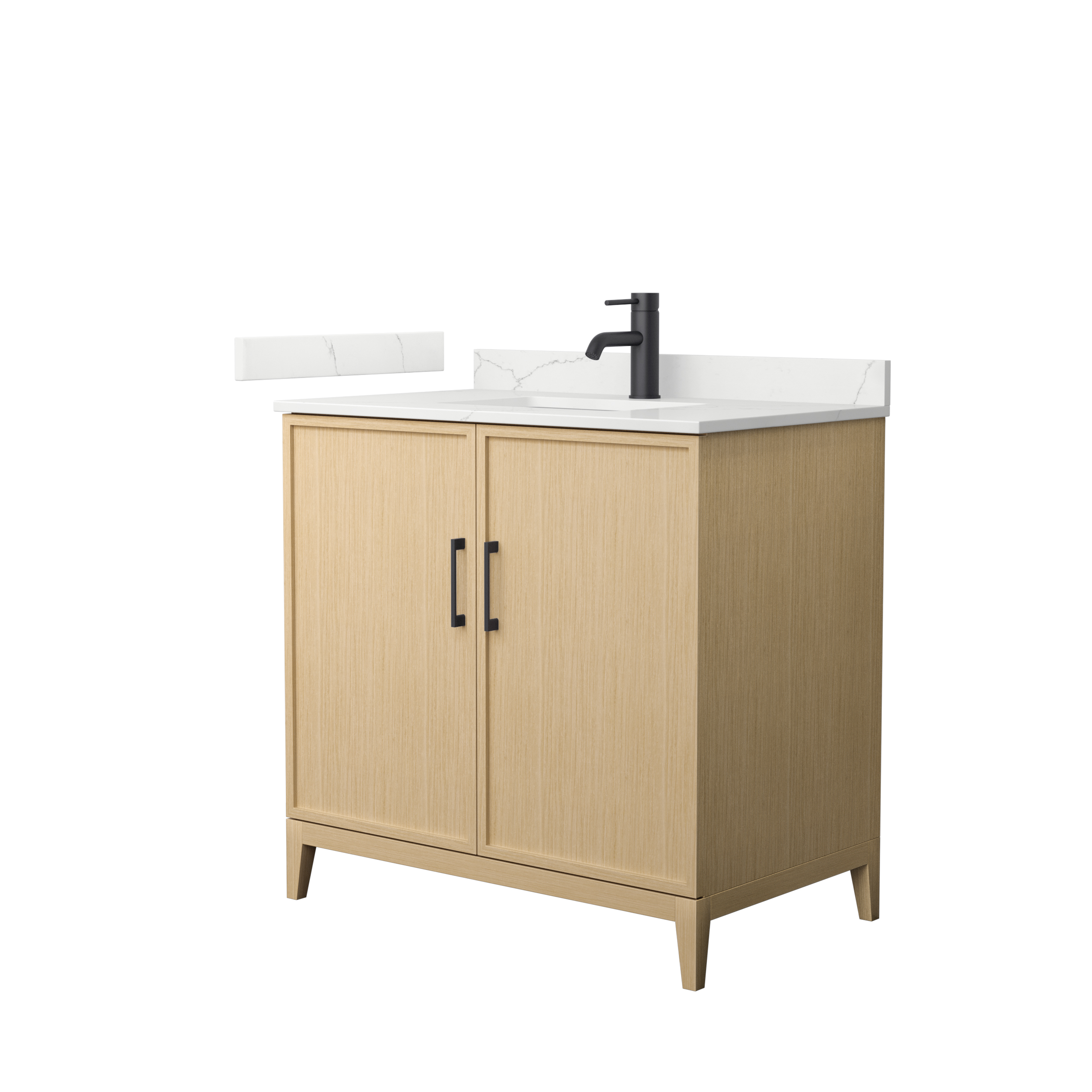 This transitional bathroom vanity exudes sleek sophistication with its clean lines and minimalist slim shaker design. The Elan vanity is crafted from high-quality materials like solid wood and plywood, with counters in multiple material options. Quartz and cultured stone counters include a back-and side-splash. Finished painted or in rift-cut white oak veneer, it seamlessly combines beauty and real-life usefulness. Its integrated, soft-closing drawers (featuring 3D adjustable glides) and doors offer ample storage space for toiletries, towels, and other essentials, keeping the space clutter-free. The sleek, angular hardware contributes to the overall aesthetic, creating a stylish focal point in the bathroom. Elevate your bathroom haven without compromising form or function.