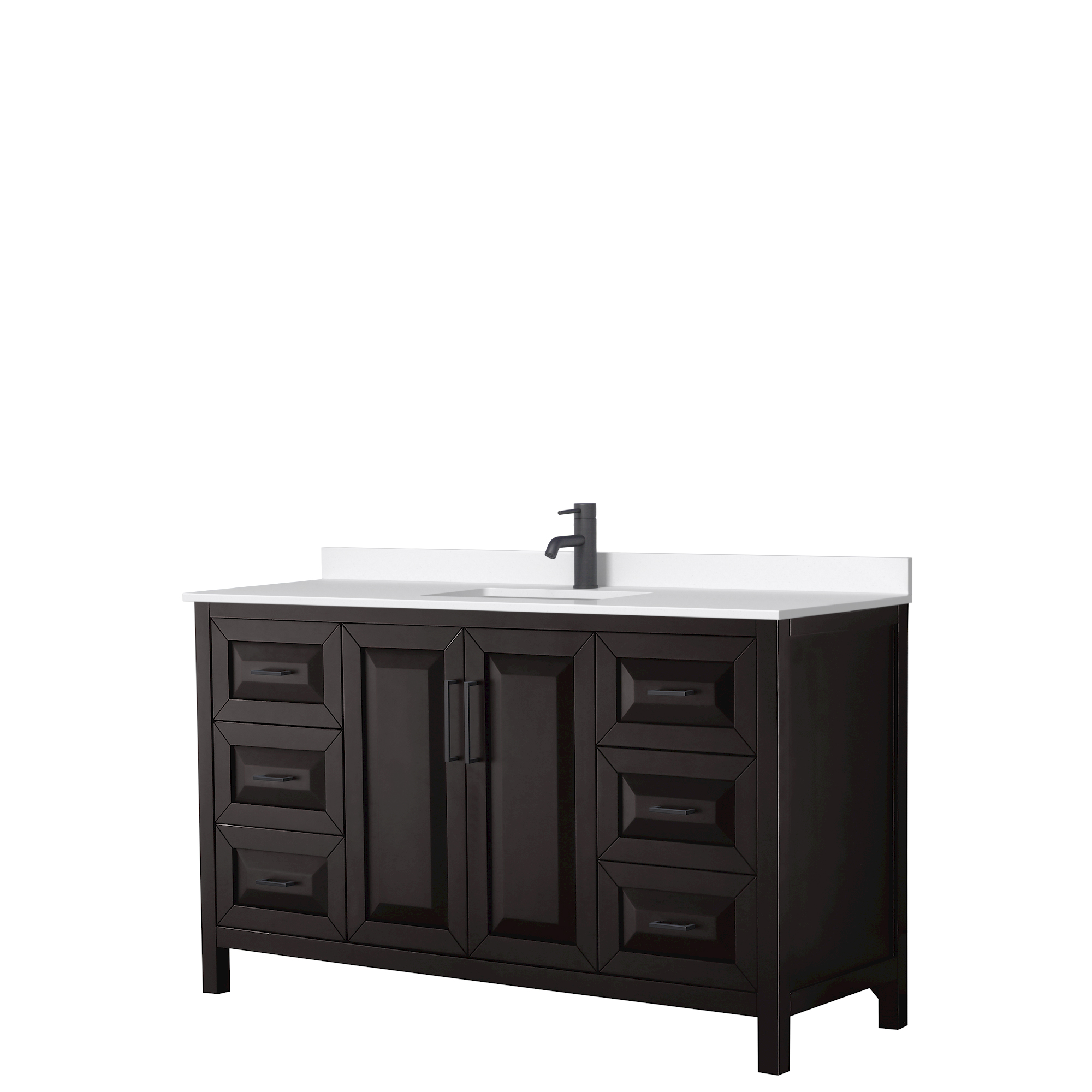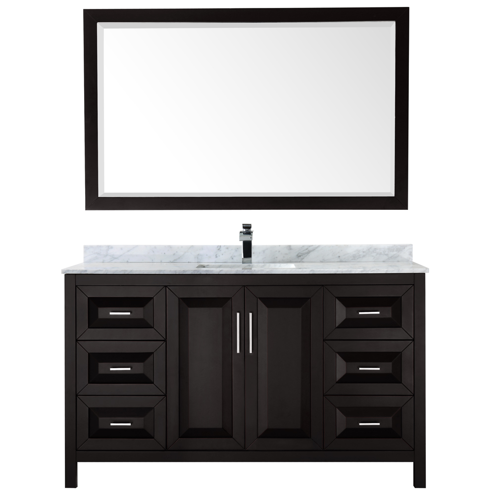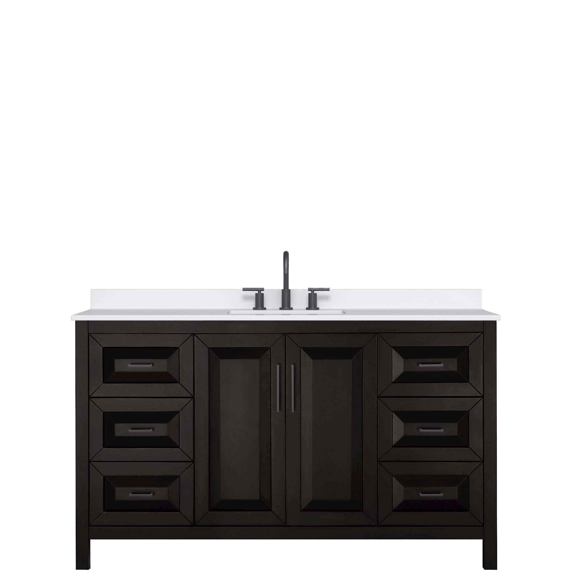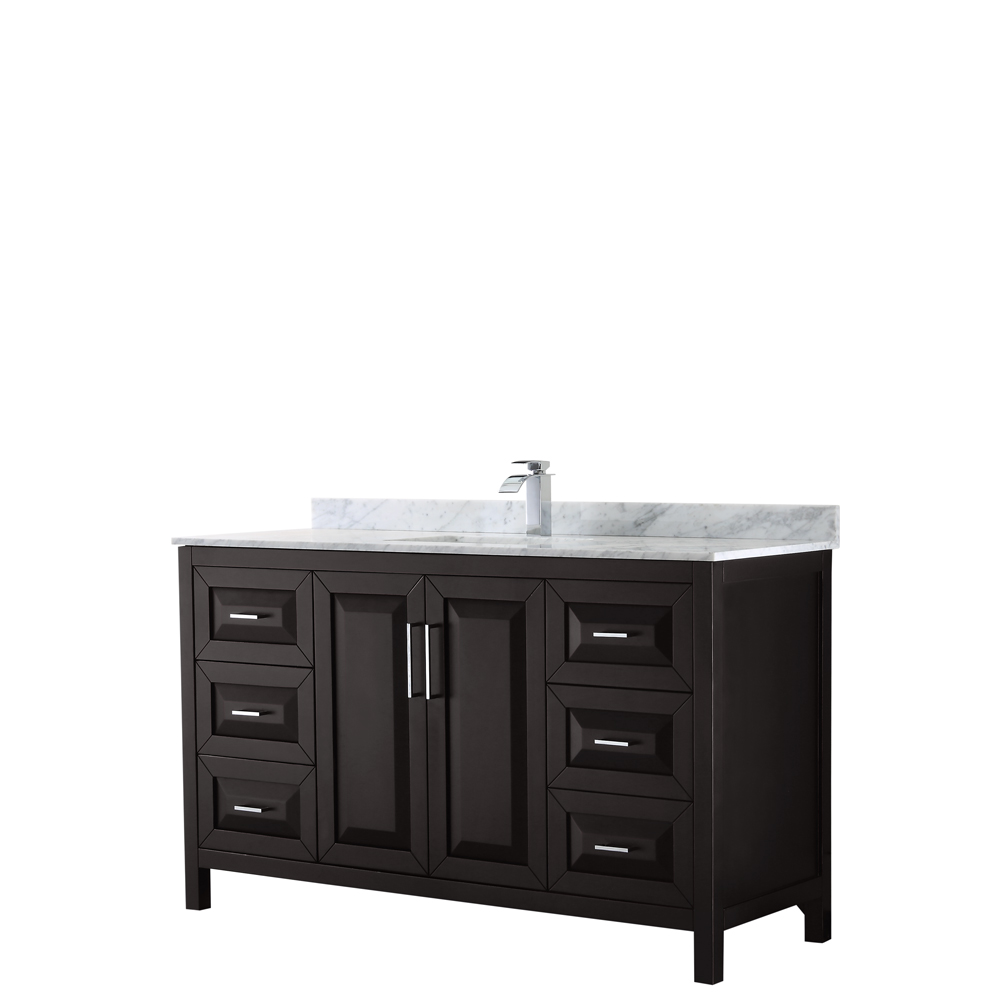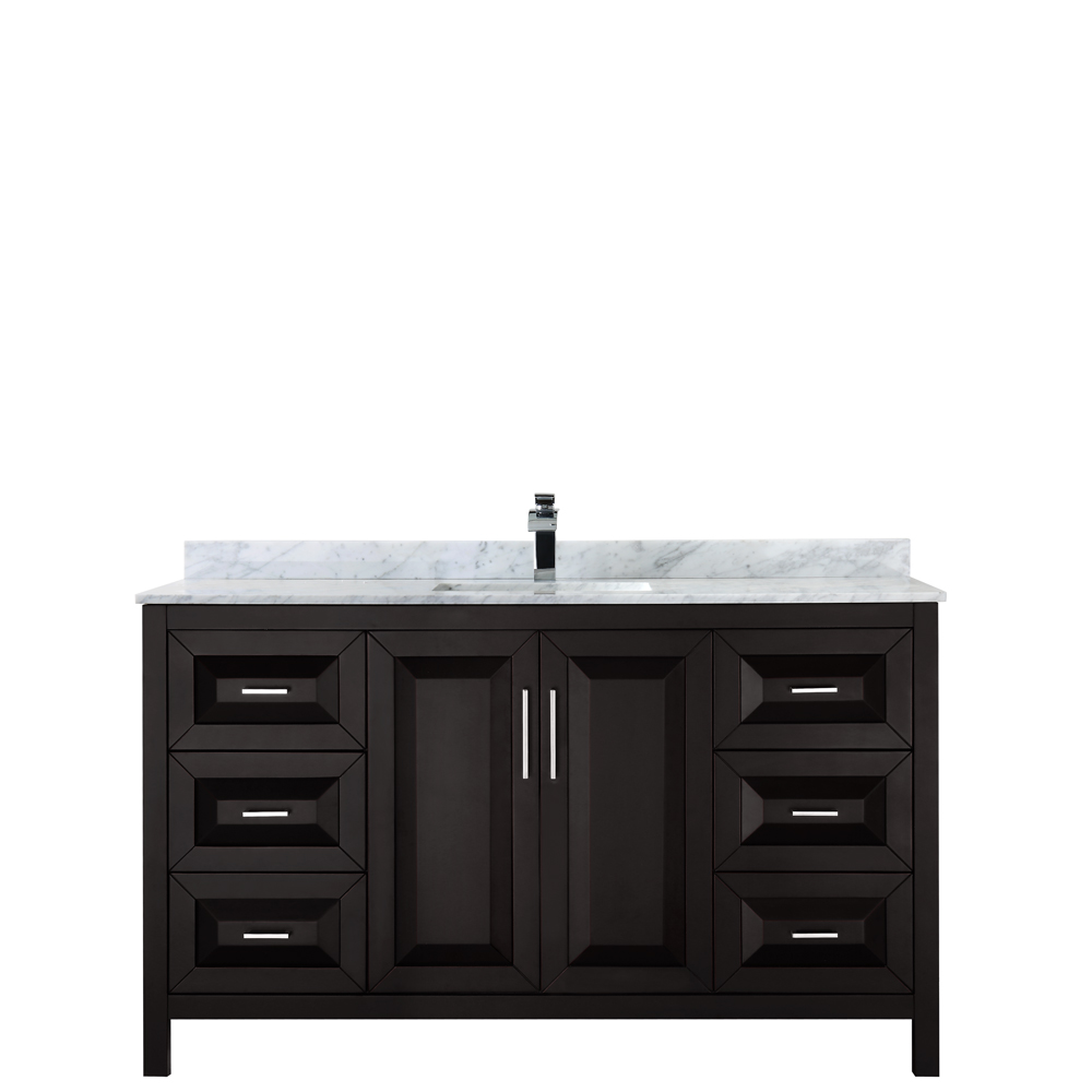 The beautiful Daria collection vanities stand out in any bathroom with strong, clean lines, raised panels and elegant counters with square sinks. There's plenty of cabinet space, the fully extending drawers are dovetail construction, and polished chrome or matte black finish detailing completes the look. Daria vanities deftly combine the function of today with a nod to the elegance of the past. It's the new modern - classic styling with a contemporary twist.