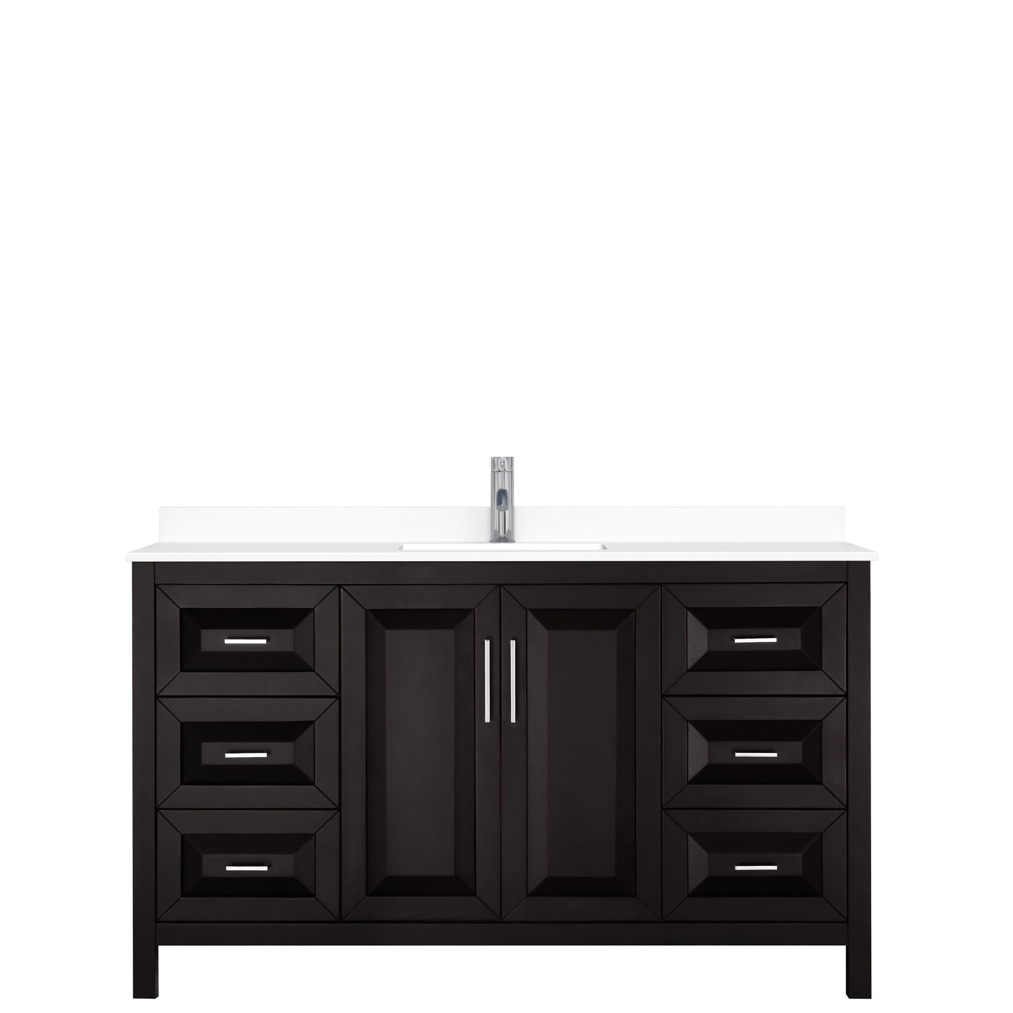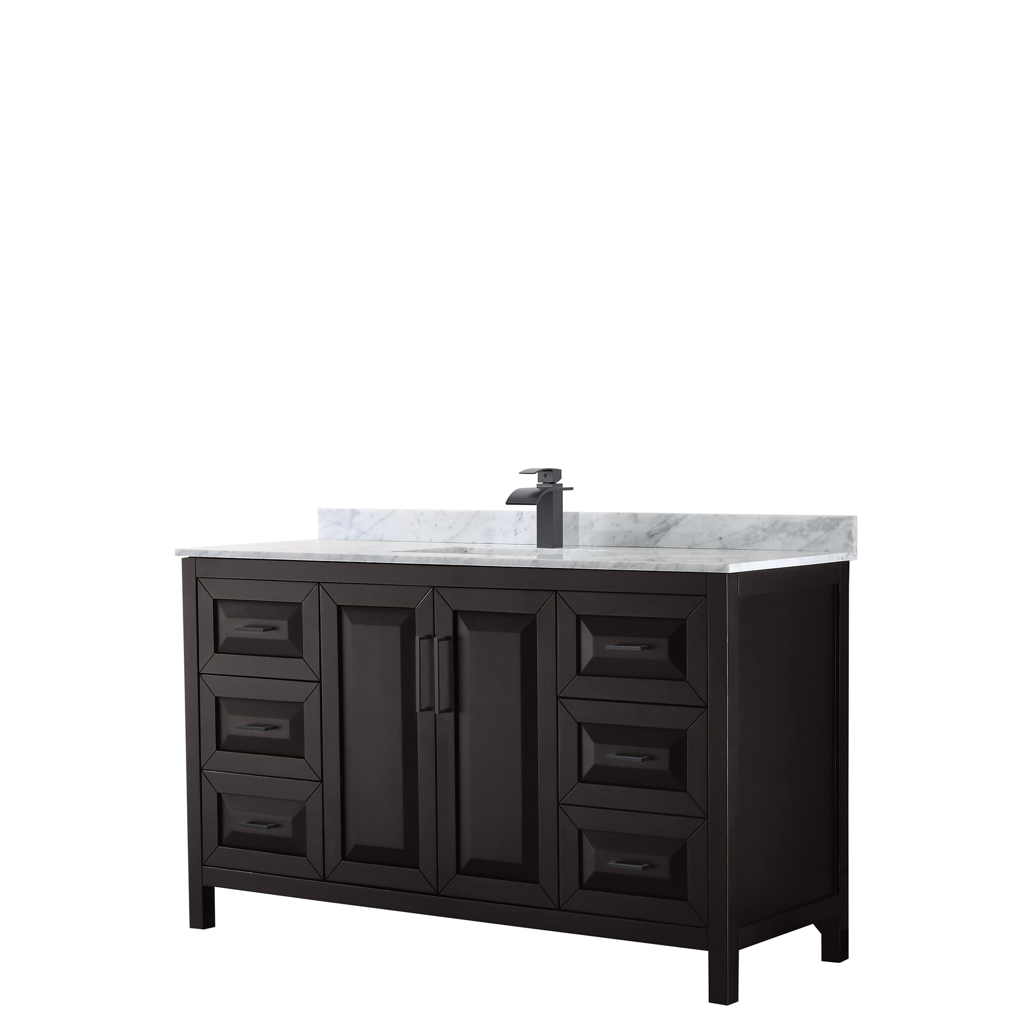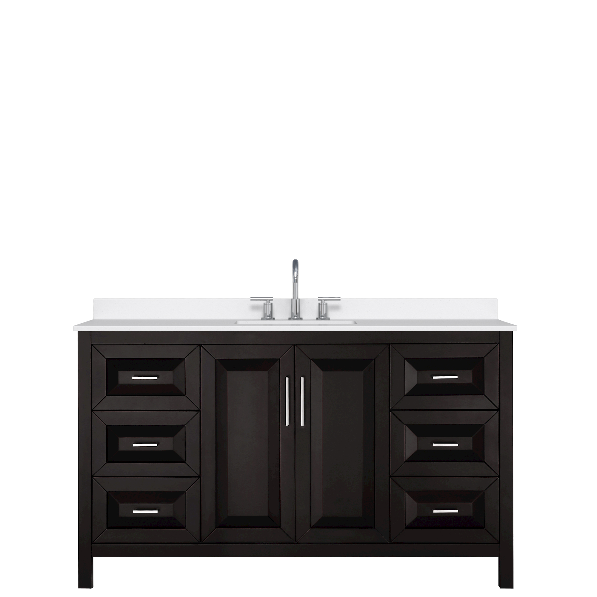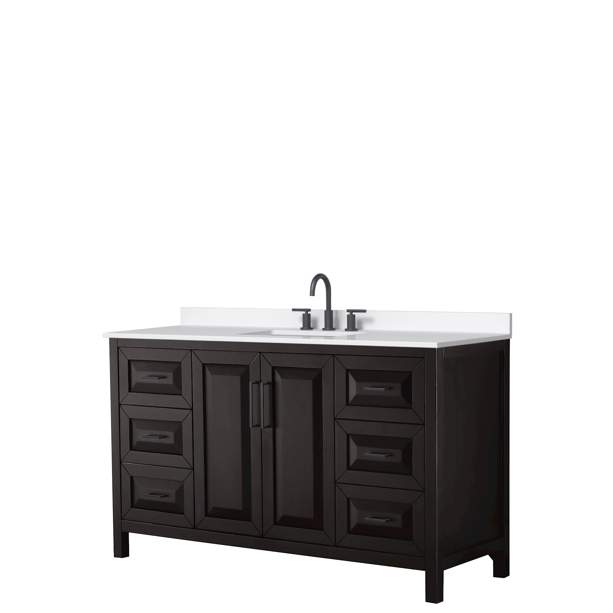 The beautiful Daria collection vanities stand out in any bathroom with strong, clean lines, raised panels and elegant counters with square sinks. There's plenty of cabinet space, the fully extending drawers are dovetail construction, and polished chrome or matte black finish detailing completes the look. Daria vanities deftly combine the function of today with a nod to the elegance of the past. It's the new modern - classic styling with a contemporary twist.