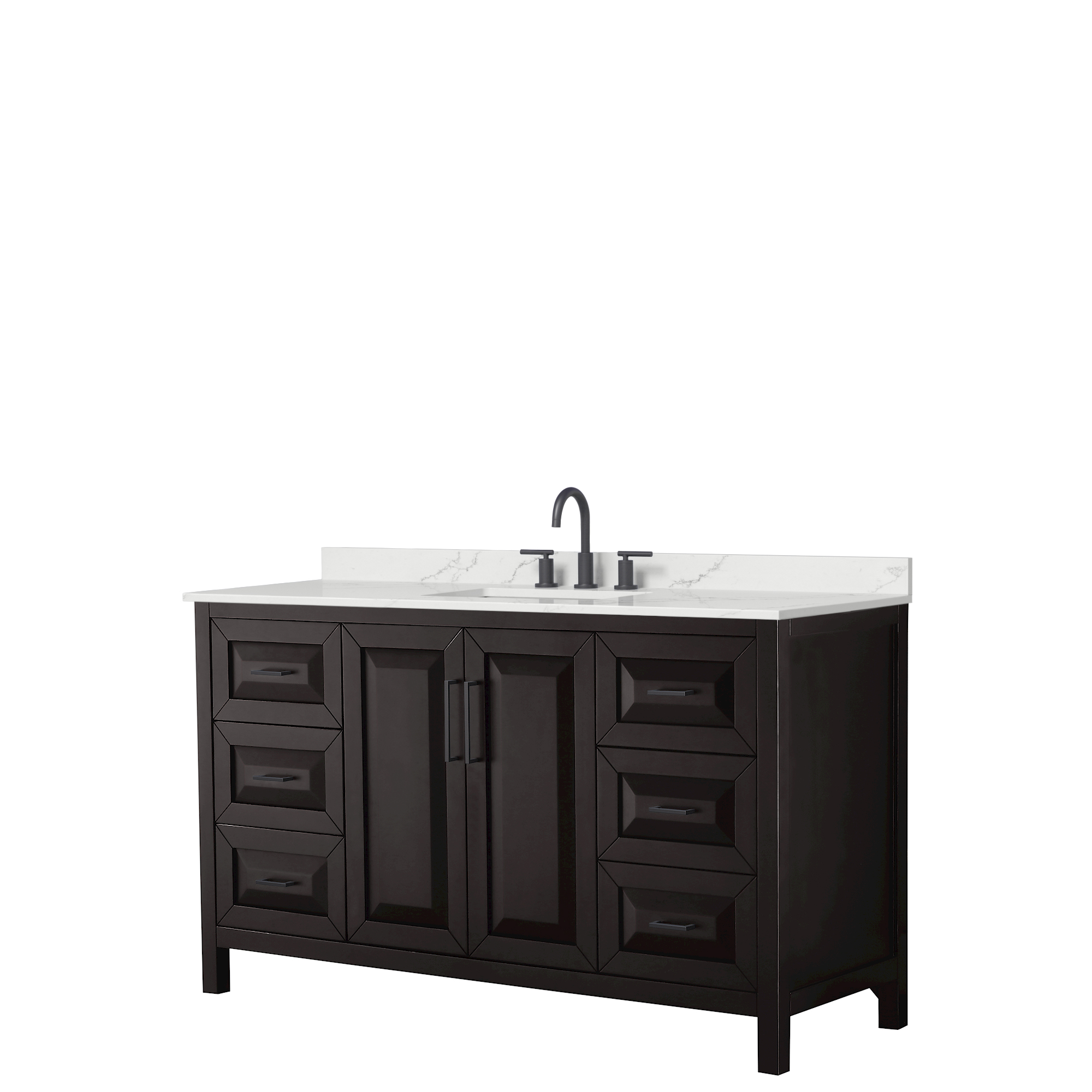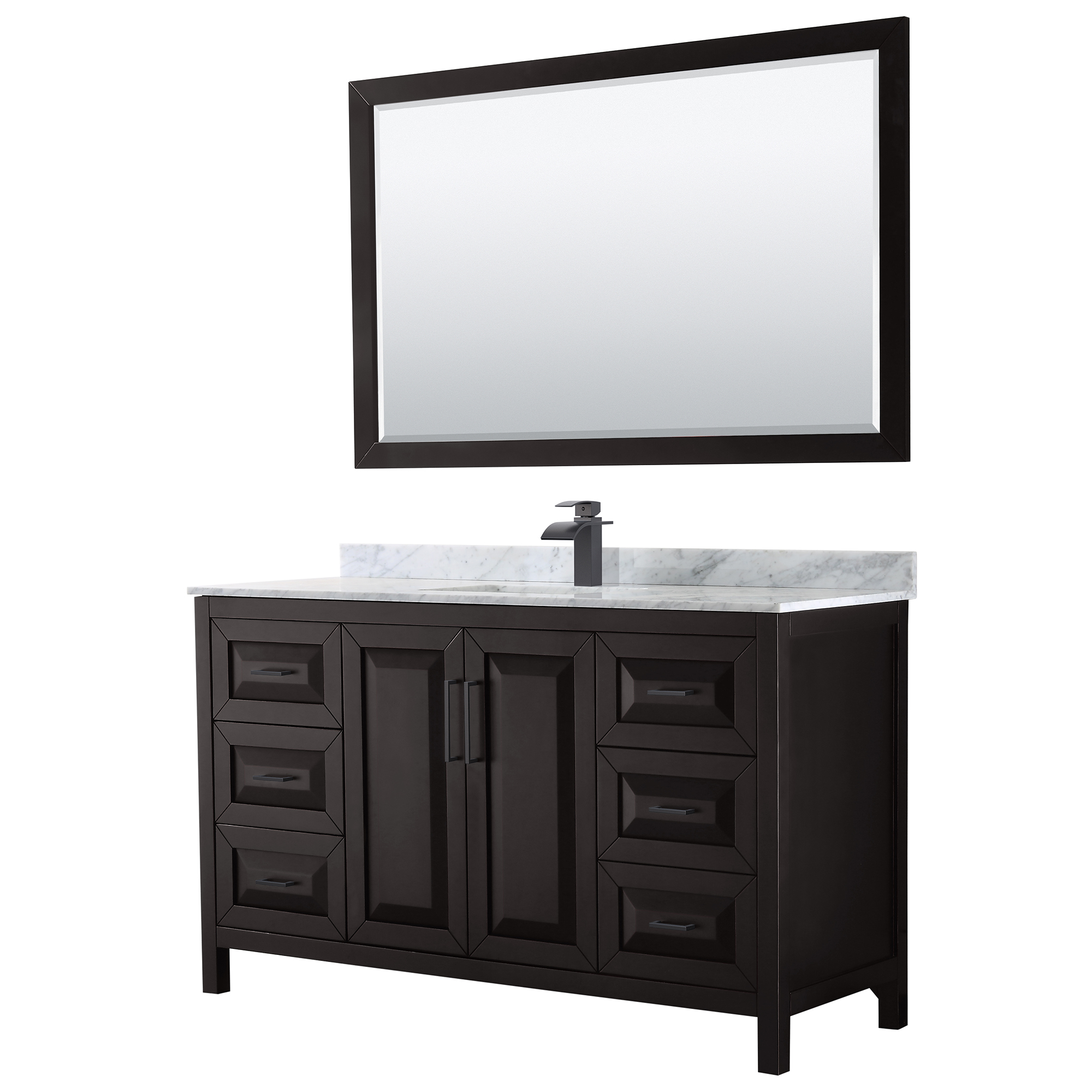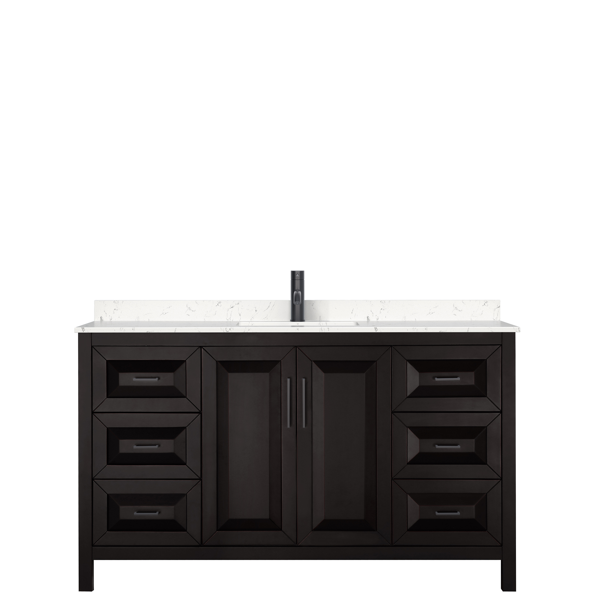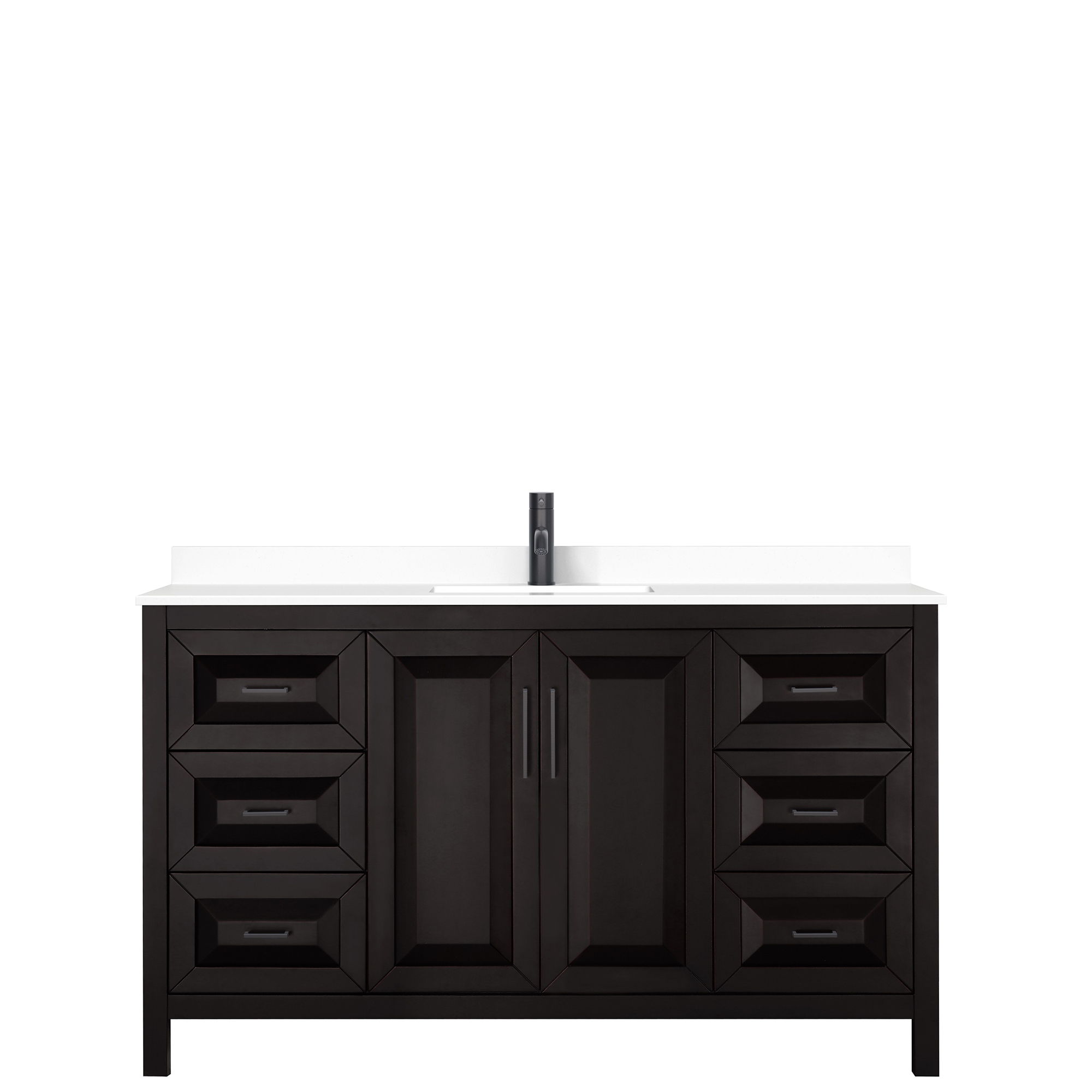 The beautiful Daria collection vanities stand out in any bathroom with strong, clean lines, raised panels and elegant counters with square sinks. There's plenty of cabinet space, the fully extending drawers are dovetail construction, and polished chrome or matte black finish detailing completes the look. Daria vanities deftly combine the function of today with a nod to the elegance of the past. It's the new modern - classic styling with a contemporary twist.