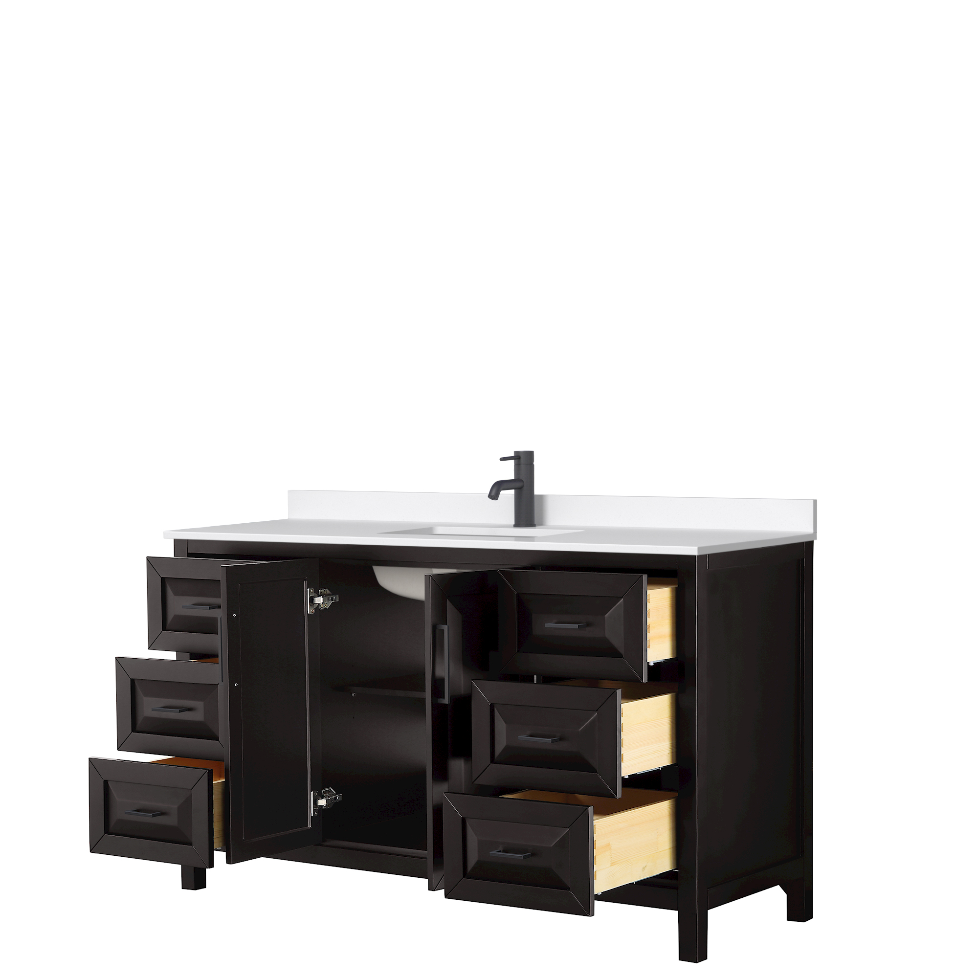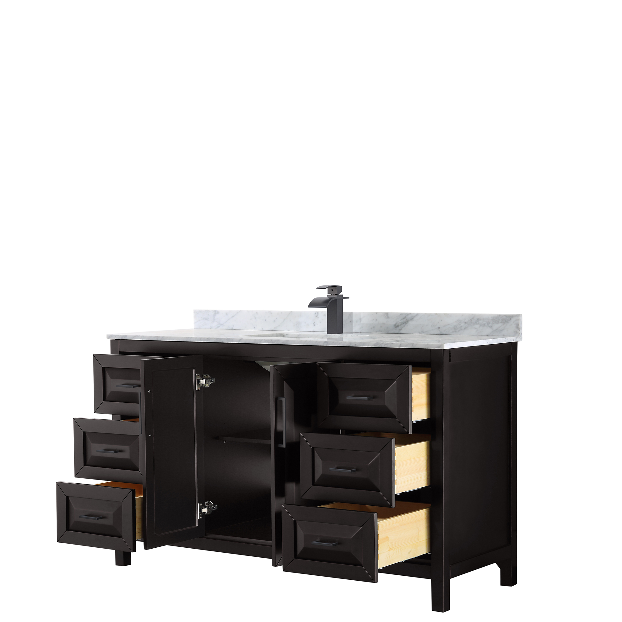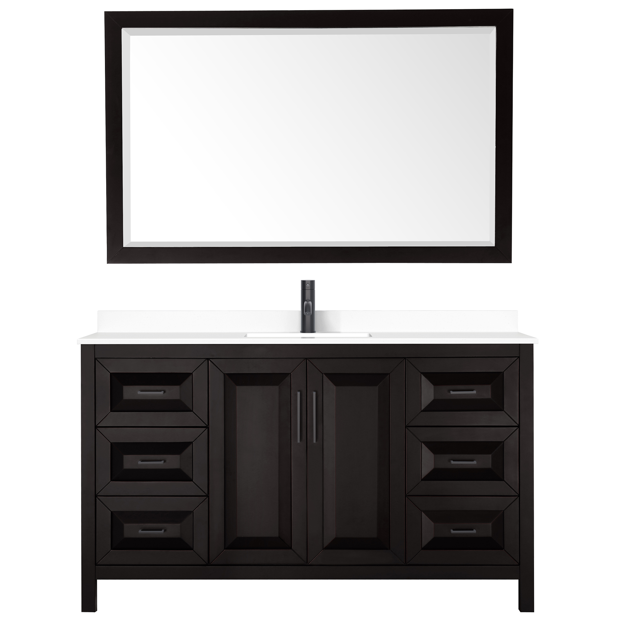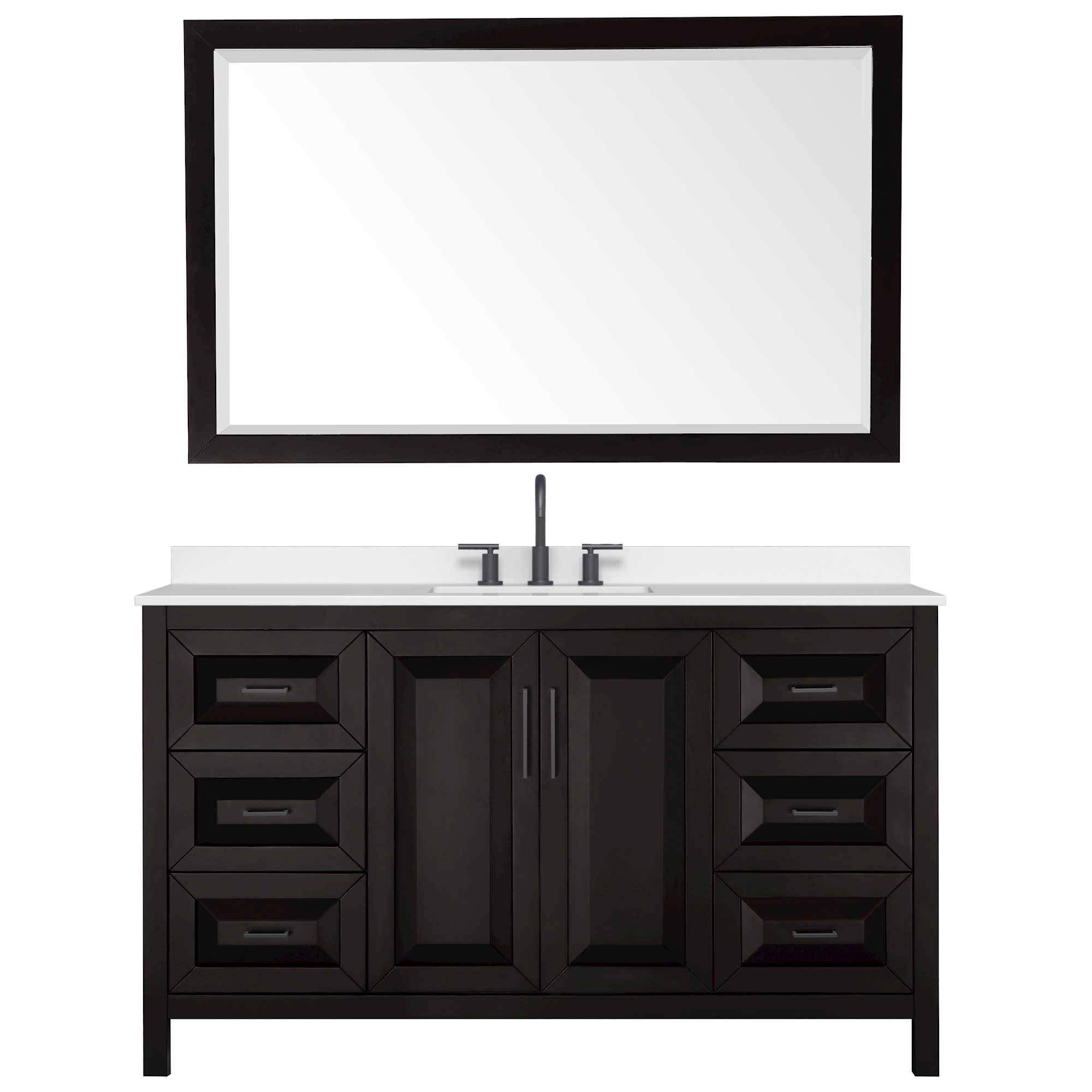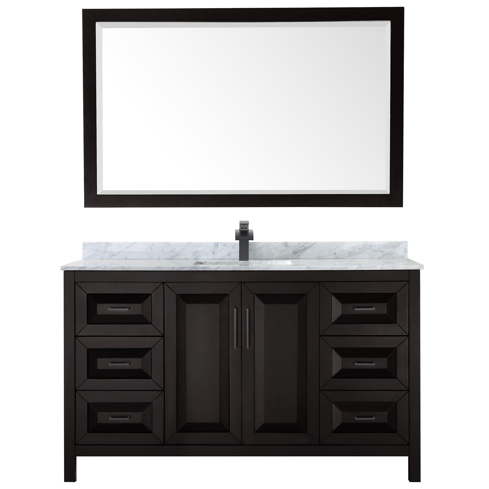 The beautiful Daria collection vanities stand out in any bathroom with strong, clean lines, raised panels and elegant counters with square sinks. There's plenty of cabinet space, the fully extending drawers are dovetail construction, and polished chrome or matte black finish detailing completes the look. Daria vanities deftly combine the function of today with a nod to the elegance of the past. It's the new modern - classic styling with a contemporary twist.