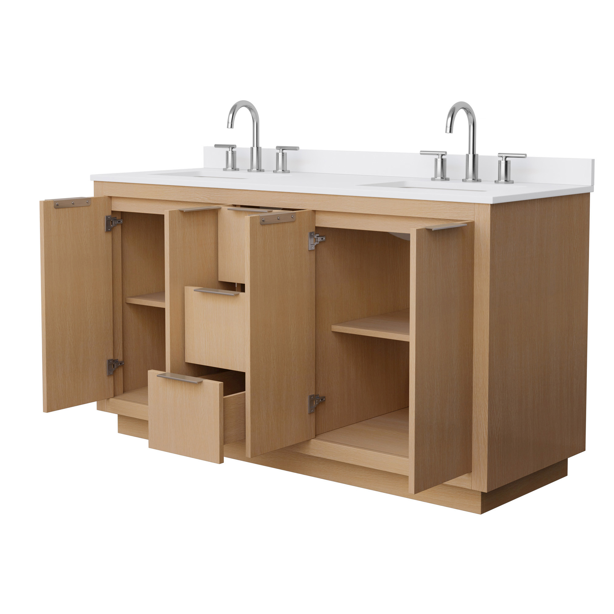 This modern classic is sheer sophistication, with its elegant lines and eye-catching finishes making a bold centerpiece to your bathroom. The Maroni freestanding vanity is manufactured in quality hardwood and veneer to the exacting standards you've come to expect from the Wyndham Collection. Conveniently designed with plenty of storage space and an integrated toe-kick to keep things clean and tidy underneath. Available with your choice of beautiful Quartz, Carrara Marble, or Cultured Marble counter.