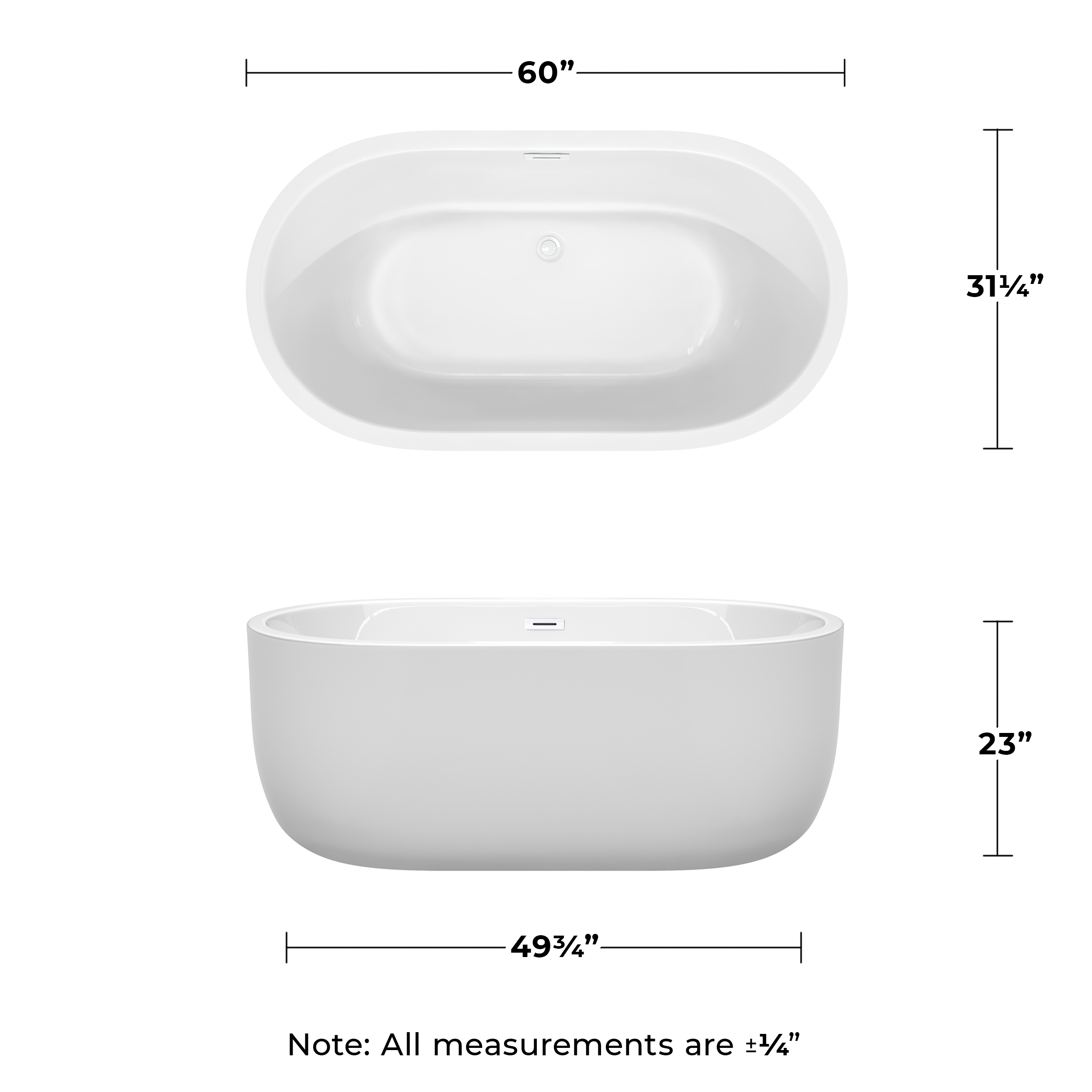 Surround yourself in beauty and tranquility with the Juliette bathtub. Designed for luxury and elegance, and sized for a more comfortable and generous bathing experience, your body will be forever grateful as you sink into this deep, peaceful soaking tub. Any spa ritual will be complete with this centerpiece addition to your bathroom décor.