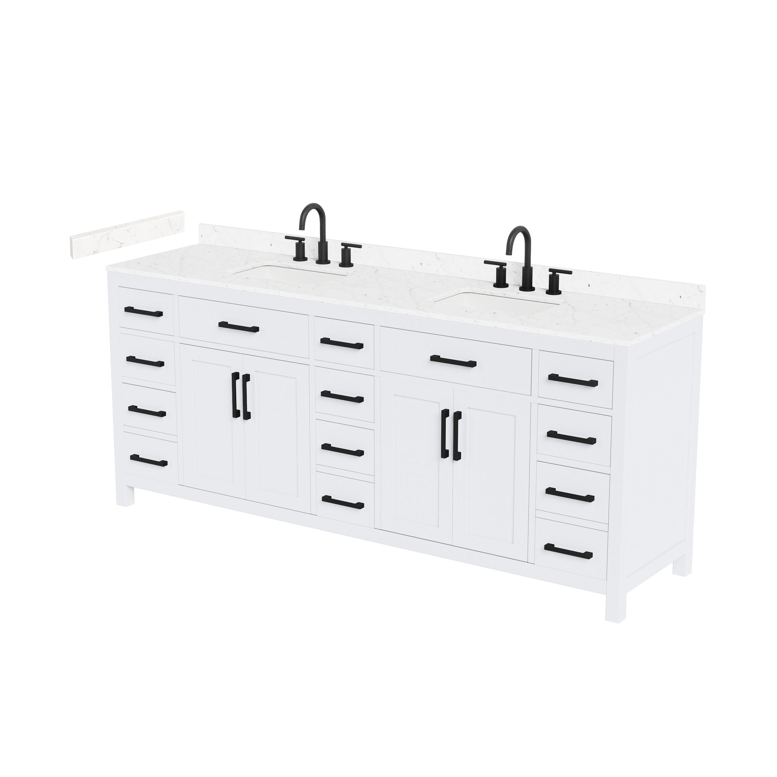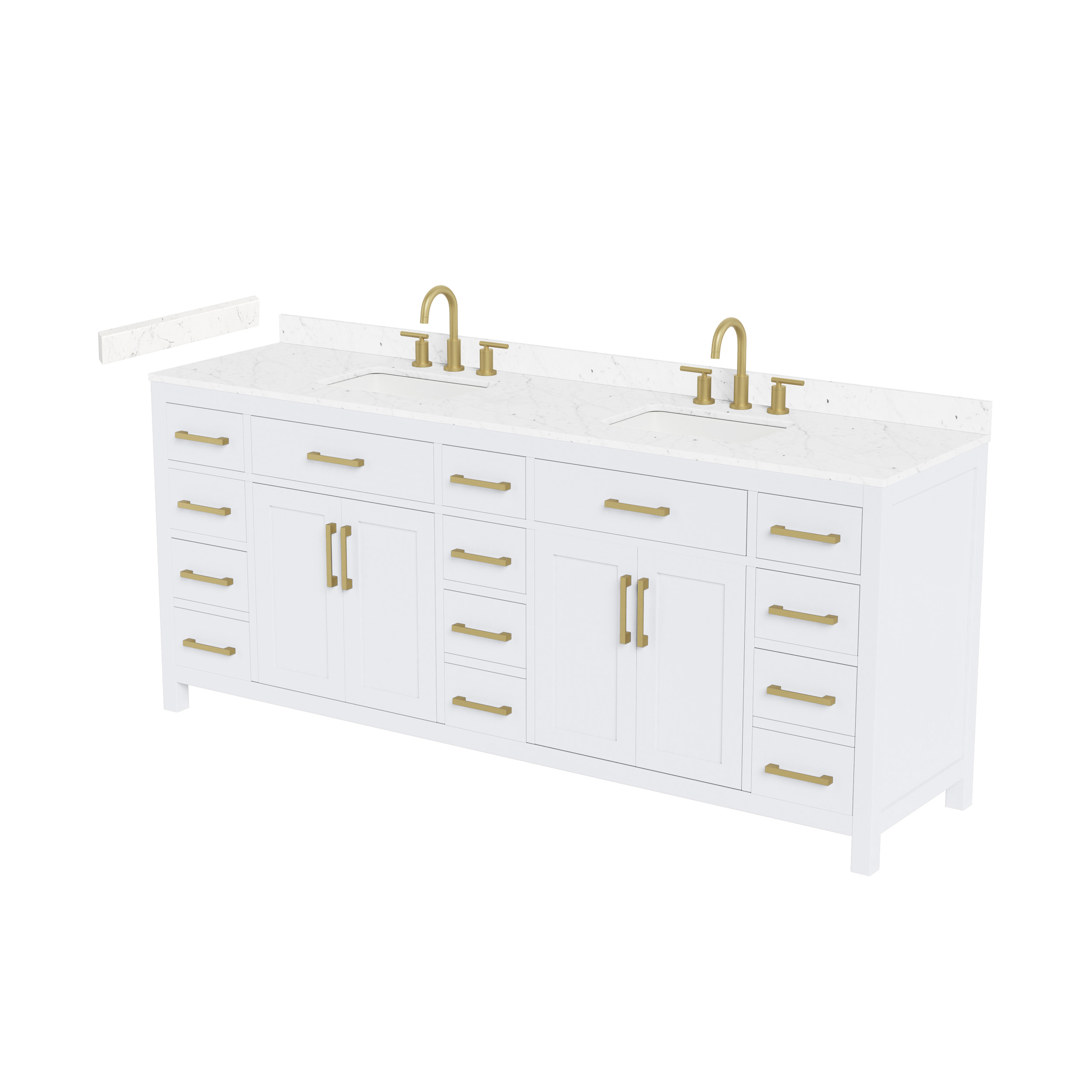 Fantastic value and classic design. The elegant Beckett vanity has it all, with quality touches like brushed nickel, brushed gold, or matte black accents, dove-tailed drawers, and soft-close doors and drawers. Ample storage and a double-depth lower drawer give you plenty of room for those bathroom necessities. Do your bathroom right, with the beautiful Beckett vanity series.