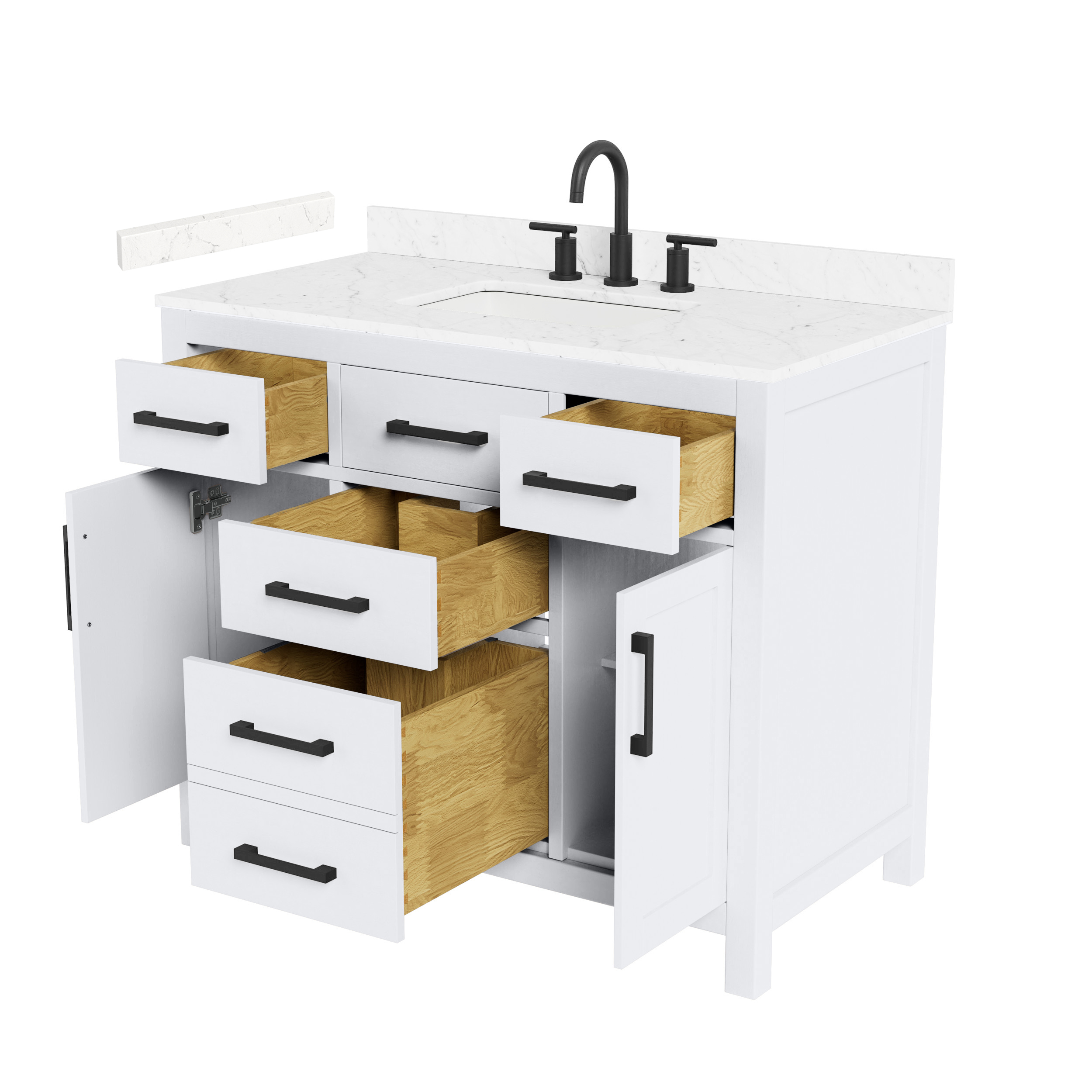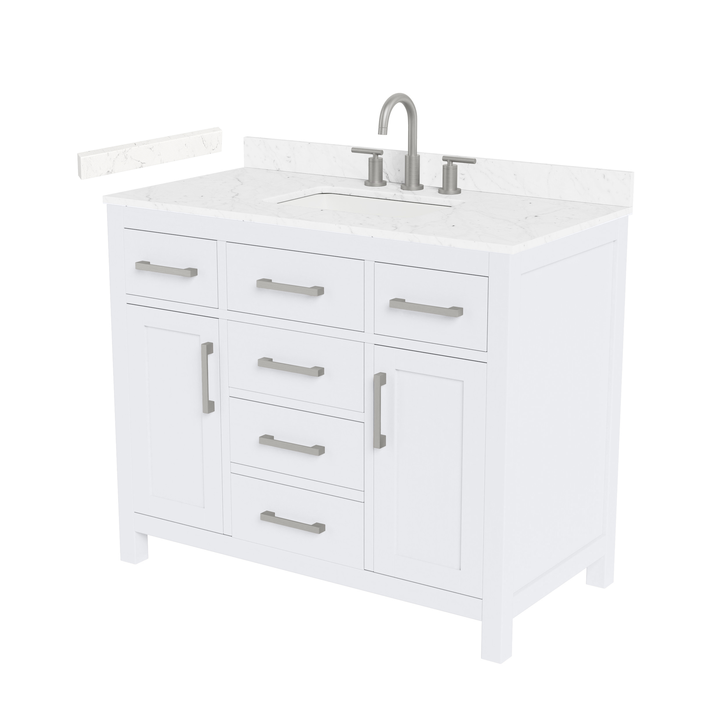 Fantastic value and classic design. The elegant Beckett vanity has it all, with quality touches like brushed nickel, brushed gold, or matte black accents, with dove-tailed drawers, and soft-close doors and drawers. Ample storage and a double-depth lower drawer give you plenty of room for those bathroom necessities. Do your bathroom right, with the beautiful Beckett vanity series.