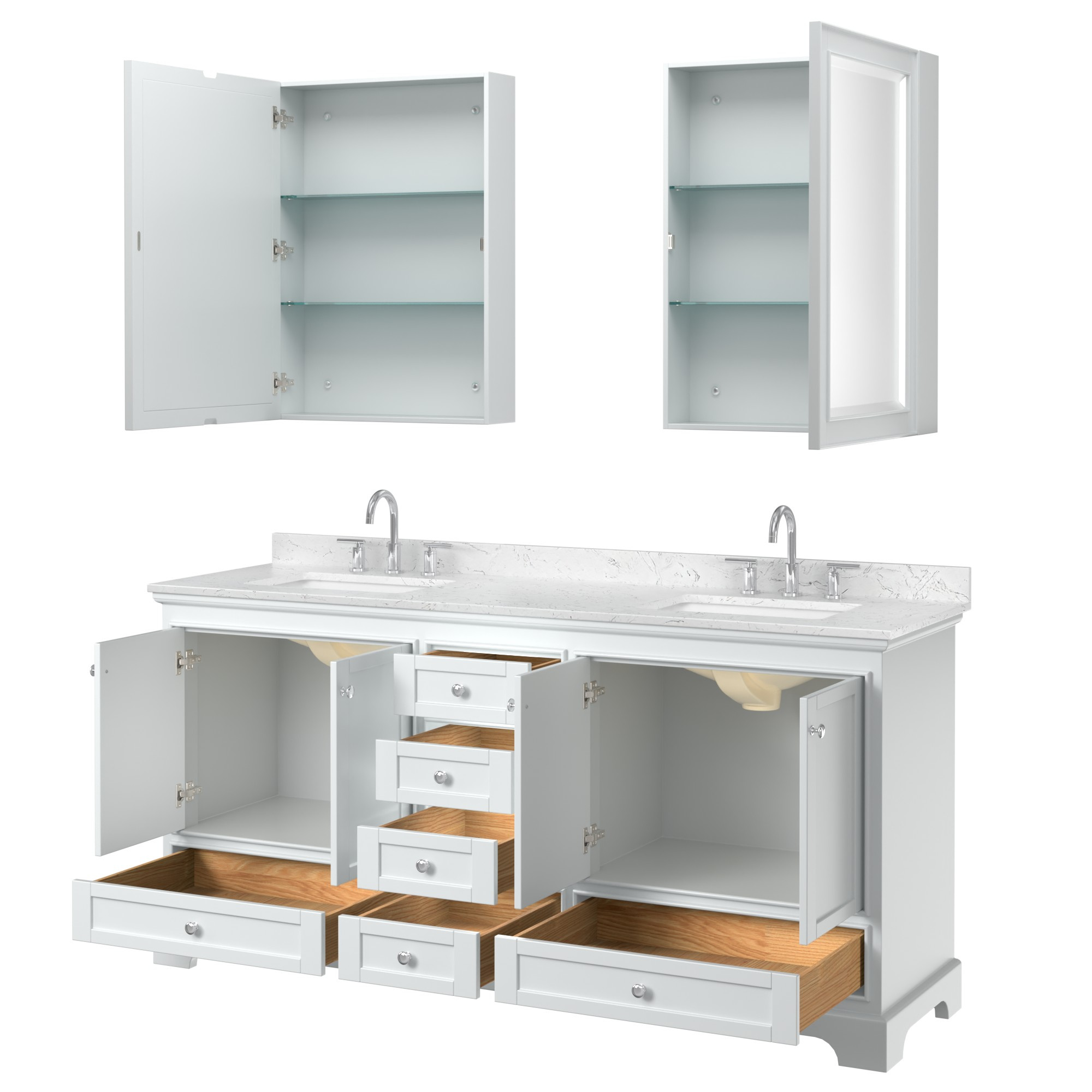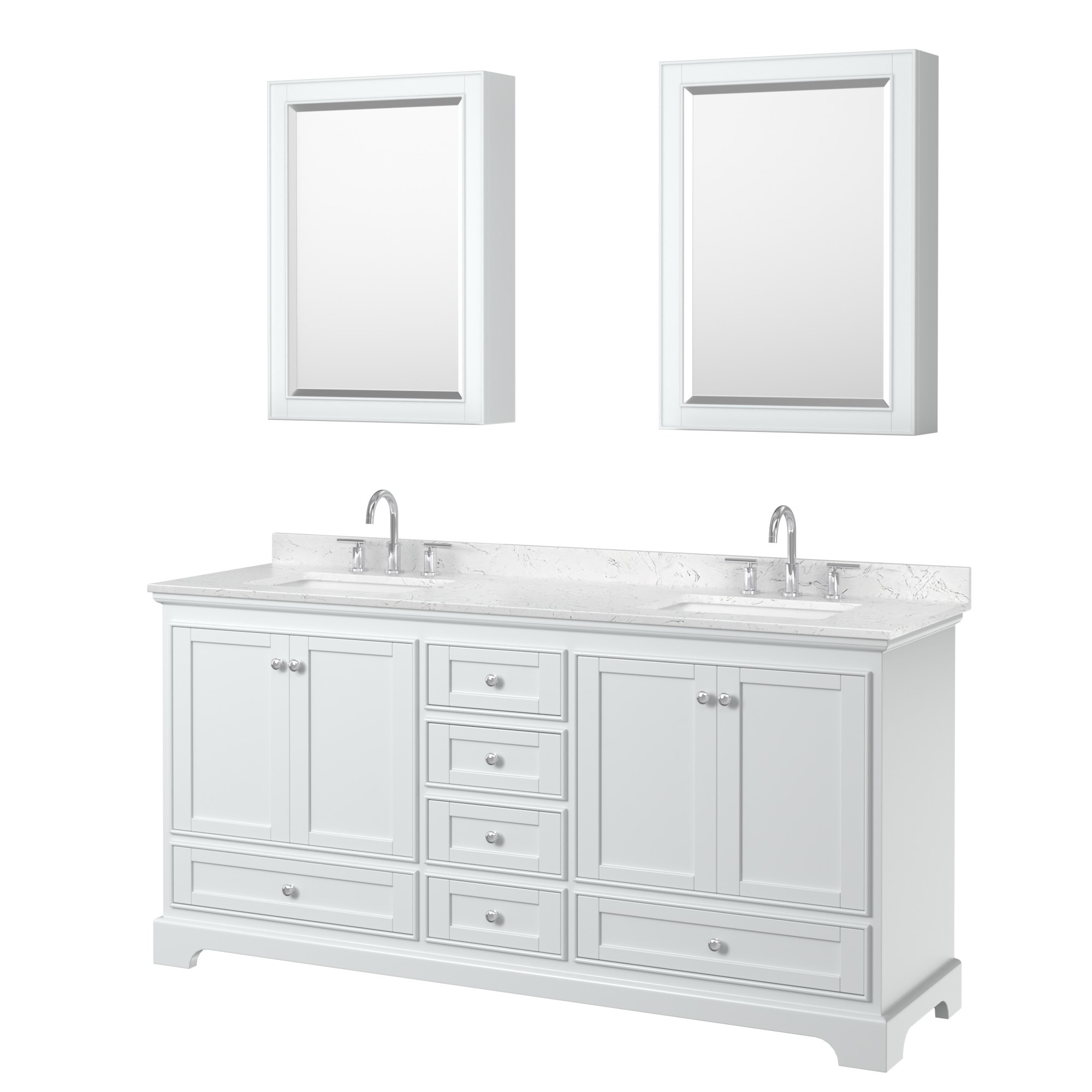 • White Carrara Marble Countertops are drilled for 8" Widespread 3-hole faucet mounts