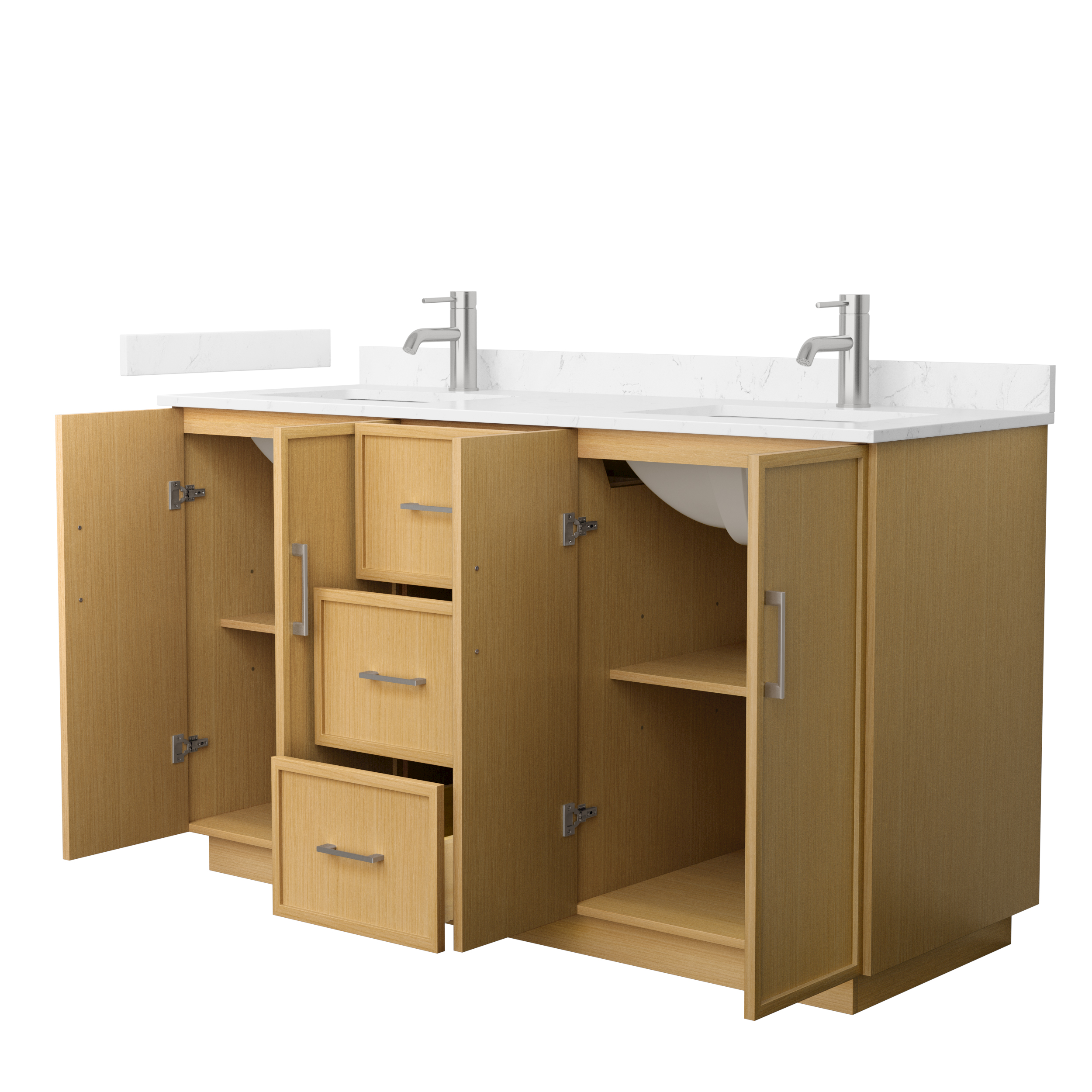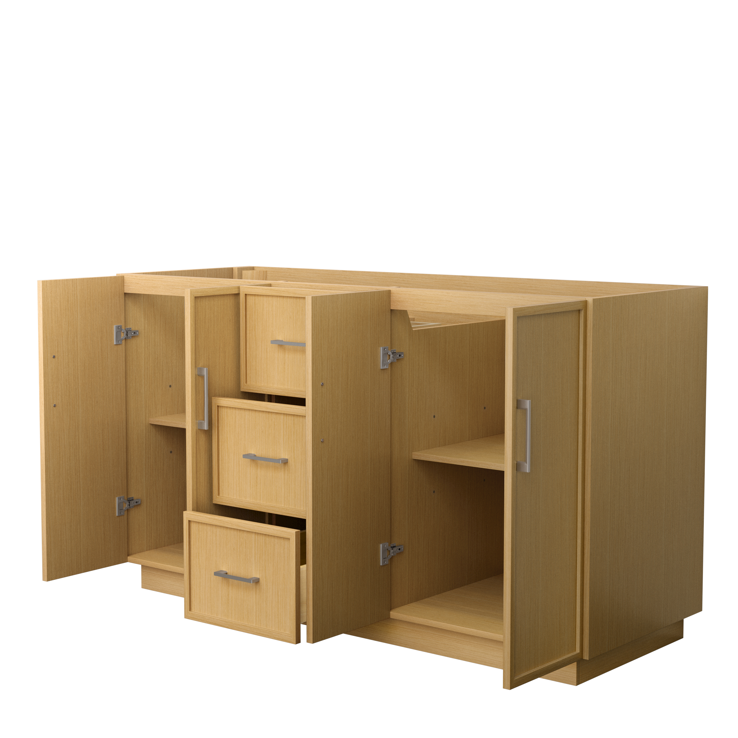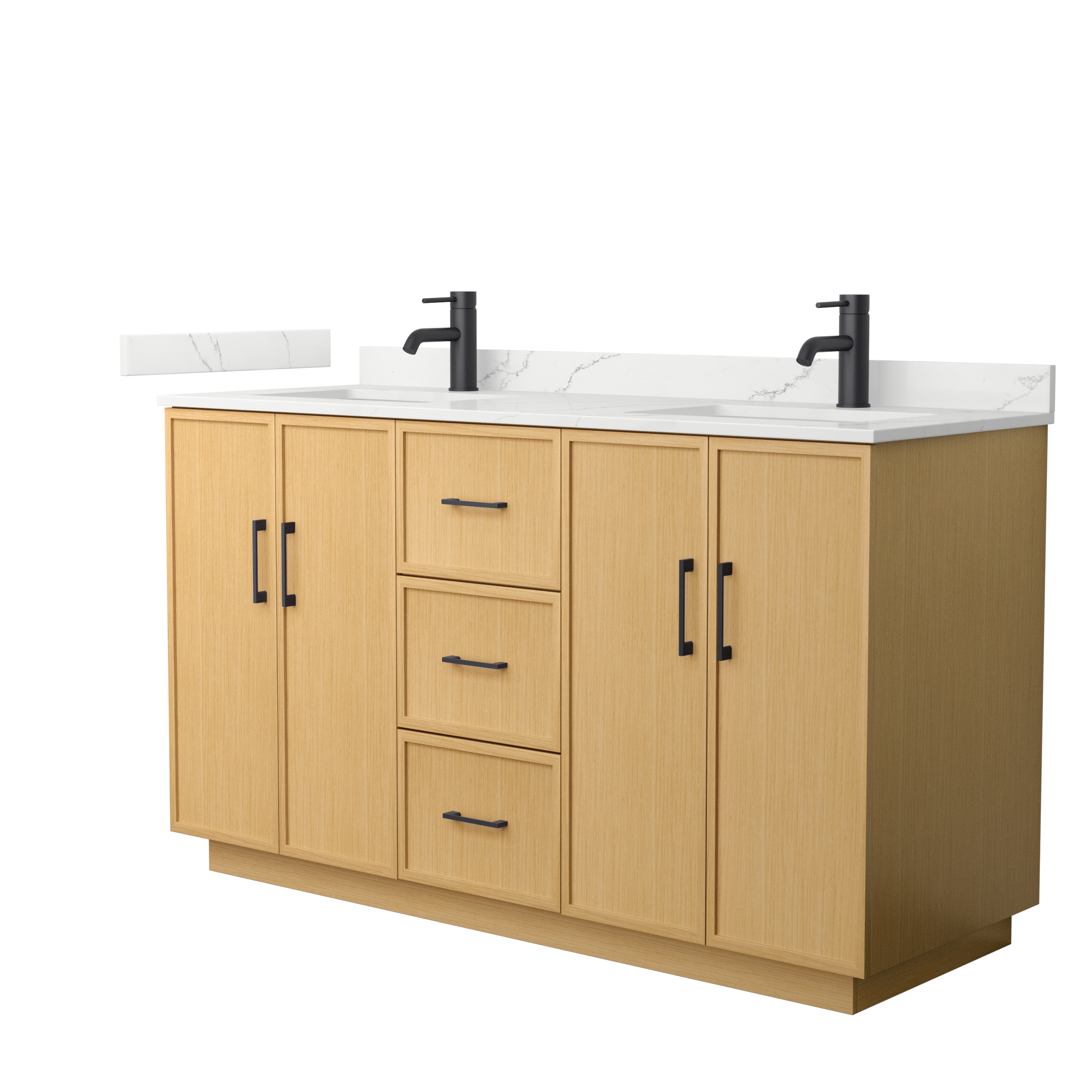 This transitional bathroom vanity exudes sleek sophistication with its clean lines and minimalist slim shaker design. The Elan vanity is crafted from high-quality materials like solid wood and plywood, with counters in multiple material options. Quartz and cultured stone counters include a back-and side-splash. Finished painted or in rift-cut light oak veneer, it seamlessly combines beauty and real-life usefulness. Its integrated, soft-closing drawers (featuring 3D adjustable glides) and doors offer ample storage space for toiletries, towels, and other essentials, keeping the space clutter-free. The sleek, angular hardware contributes to the overall aesthetic, creating a stylish focal point in the bathroom. Elevate your bathroom haven without compromising form or function.