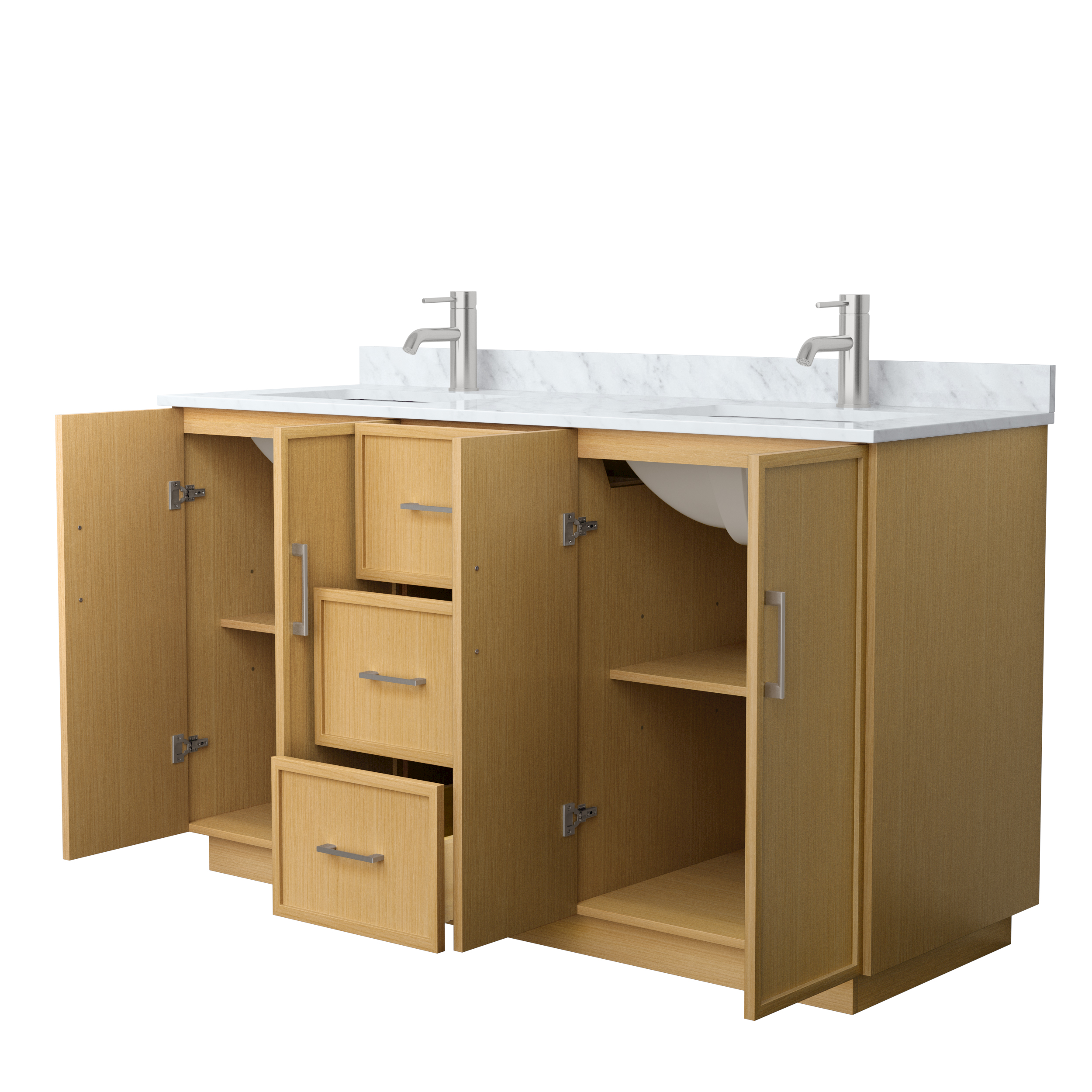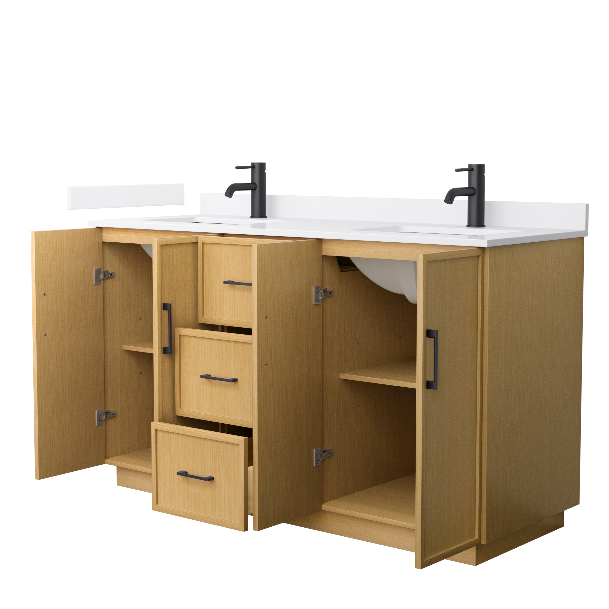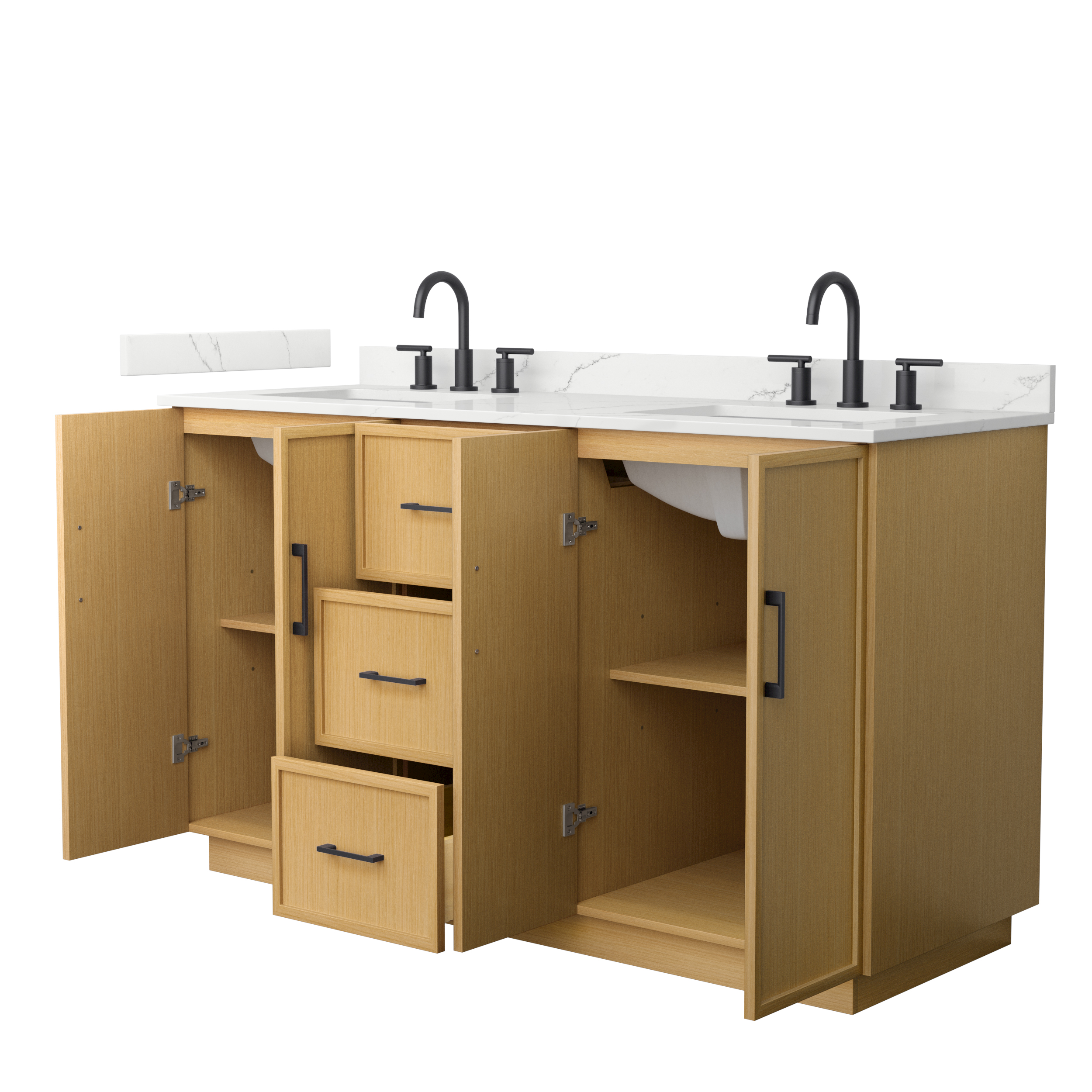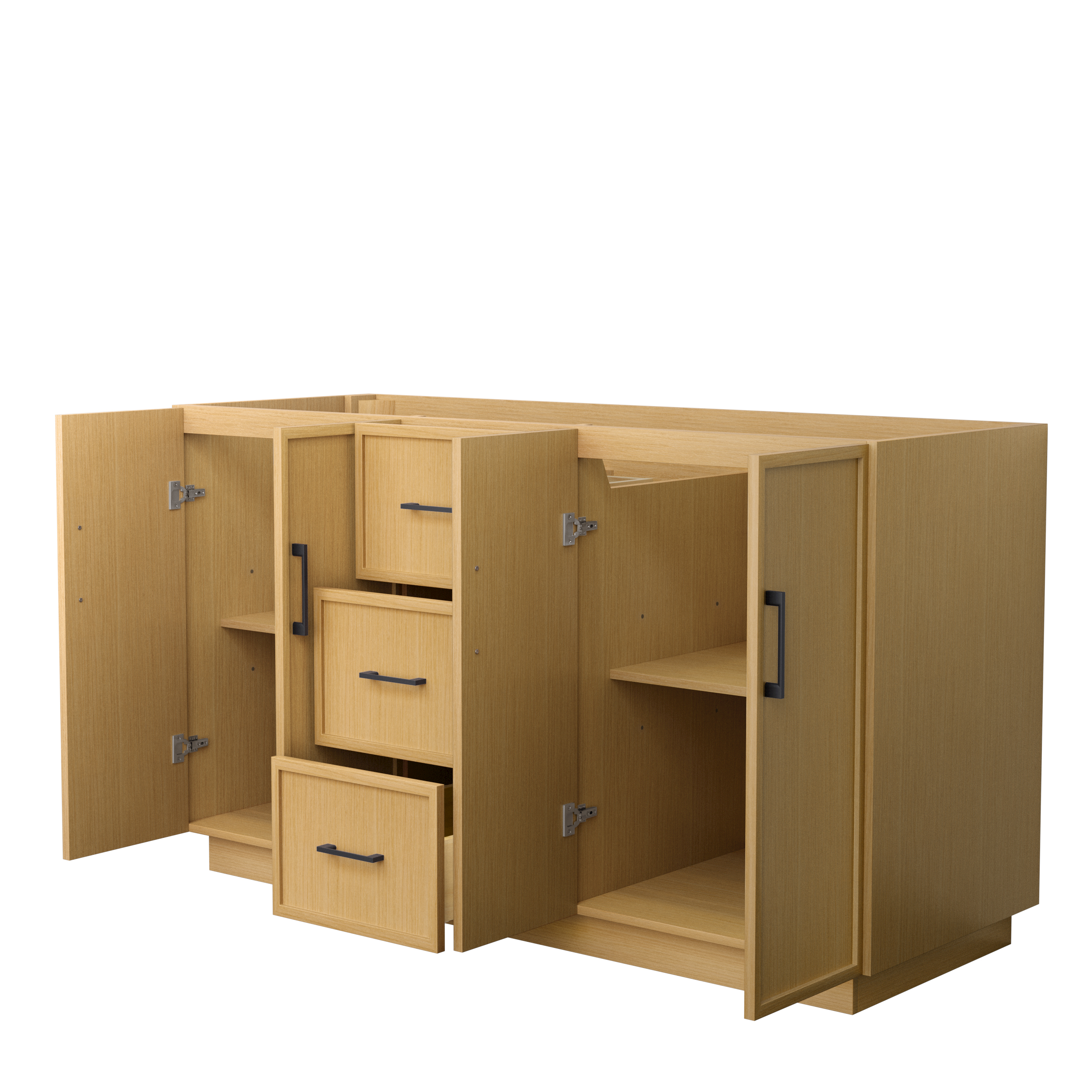 This transitional bathroom vanity exudes sleek sophistication with its clean lines and minimalist slim shaker design. The Elan vanity is crafted from high-quality materials like solid wood and plywood, with counters in multiple material options. Quartz and cultured stone counters include a back-and side-splash. Finished painted or in rift-cut light oak veneer, it seamlessly combines beauty and real-life usefulness. Its integrated, soft-closing drawers (featuring 3D adjustable glides) and doors offer ample storage space for toiletries, towels, and other essentials, keeping the space clutter-free. The sleek, angular hardware contributes to the overall aesthetic, creating a stylish focal point in the bathroom. Elevate your bathroom haven without compromising form or function.