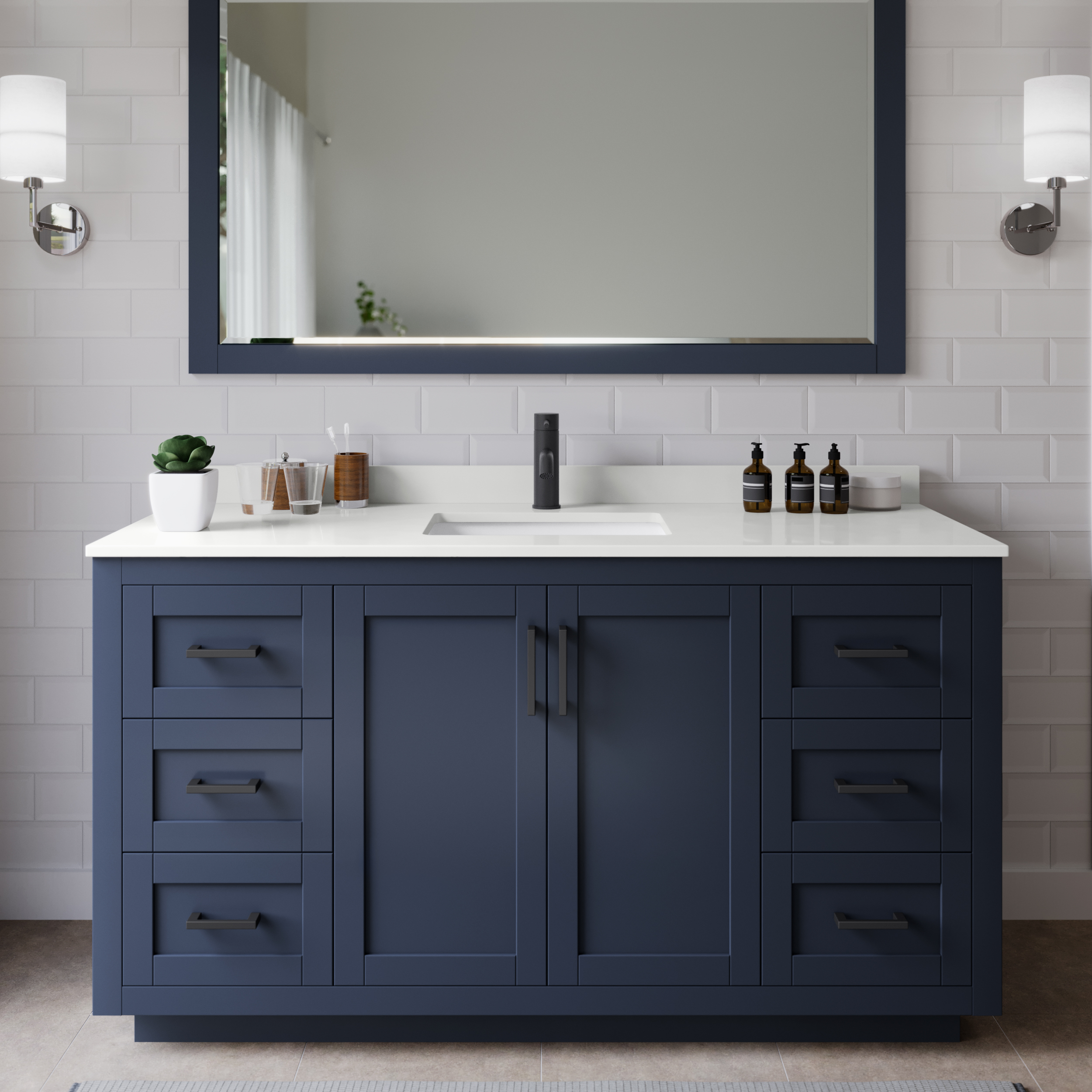 Sleek and Chic are the best words to describe this European shaker vanity, a piece that bridges modern and contemporary. The Miranda vanity is manufactured in high quality durable materials and finished to the exacting standards you've come to expect from the Wyndham Collection. With function as important as form, the elegant design focuses on ample storage and counter space, a choice of three handle colors, and 3D adjustable soft-close doors and dovetail drawers. Available with your choice of beautiful Quartz, Carrara Marble, or Cultured Marble counter.