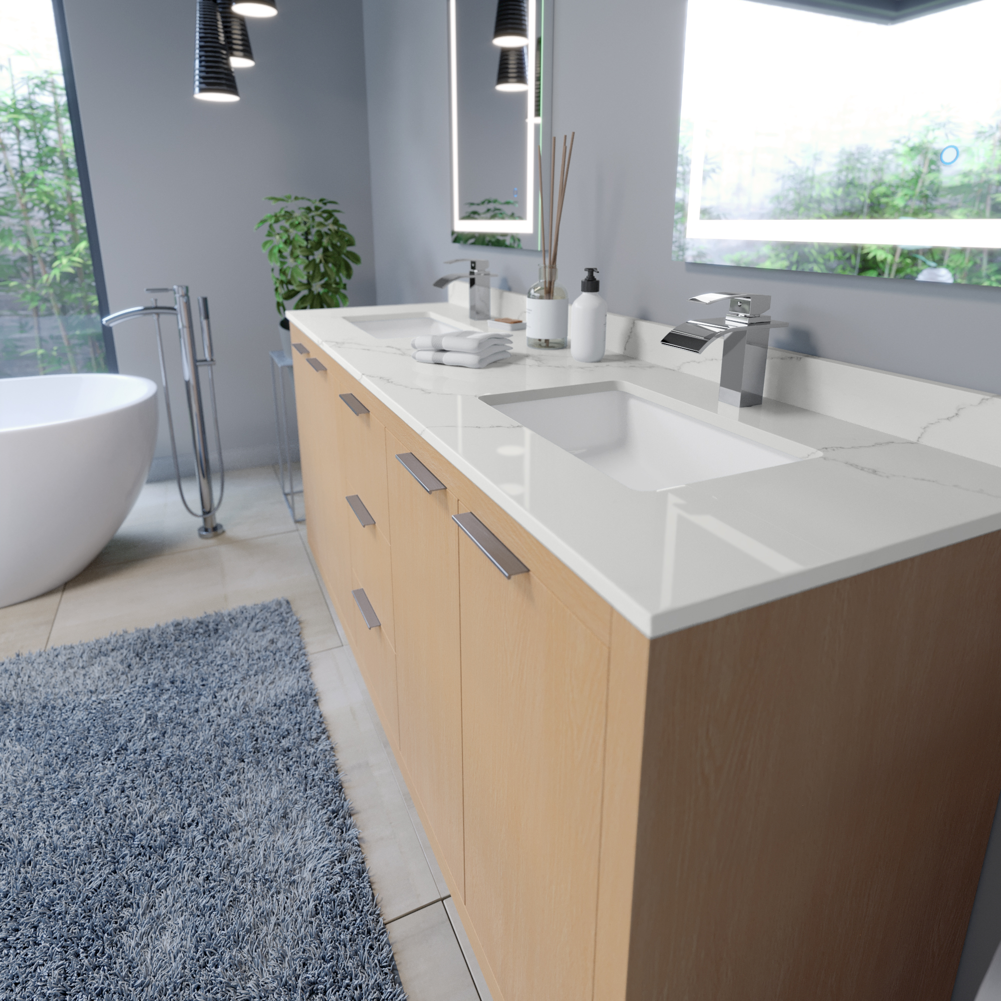 Maroni 60" Double Bathroom Vanity with optional Quartz or Carrara Marble Counter - Light Straw