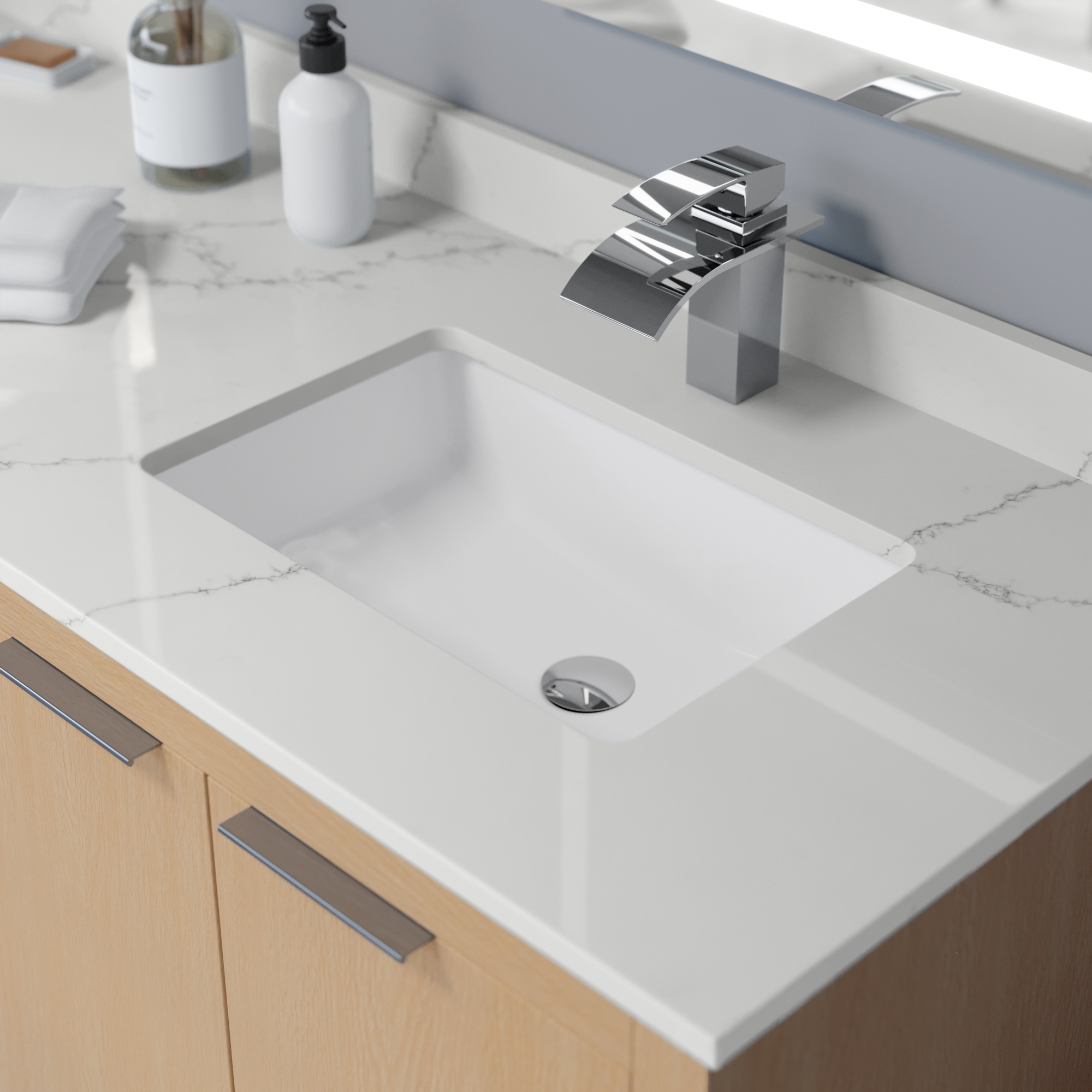 This modern classic is sheer sophistication, with its elegant lines and eye-catching finishes making a bold centerpiece to your bathroom. The Maroni freestanding vanity is manufactured in quality hardwood and veneer to the exacting standards you've come to expect from the Wyndham Collection. Conveniently designed with plenty of storage space and an integrated toe-kick to keep things clean and tidy underneath. Available with your choice of beautiful Quartz, Carrara Marble, or Cultured Marble counter.