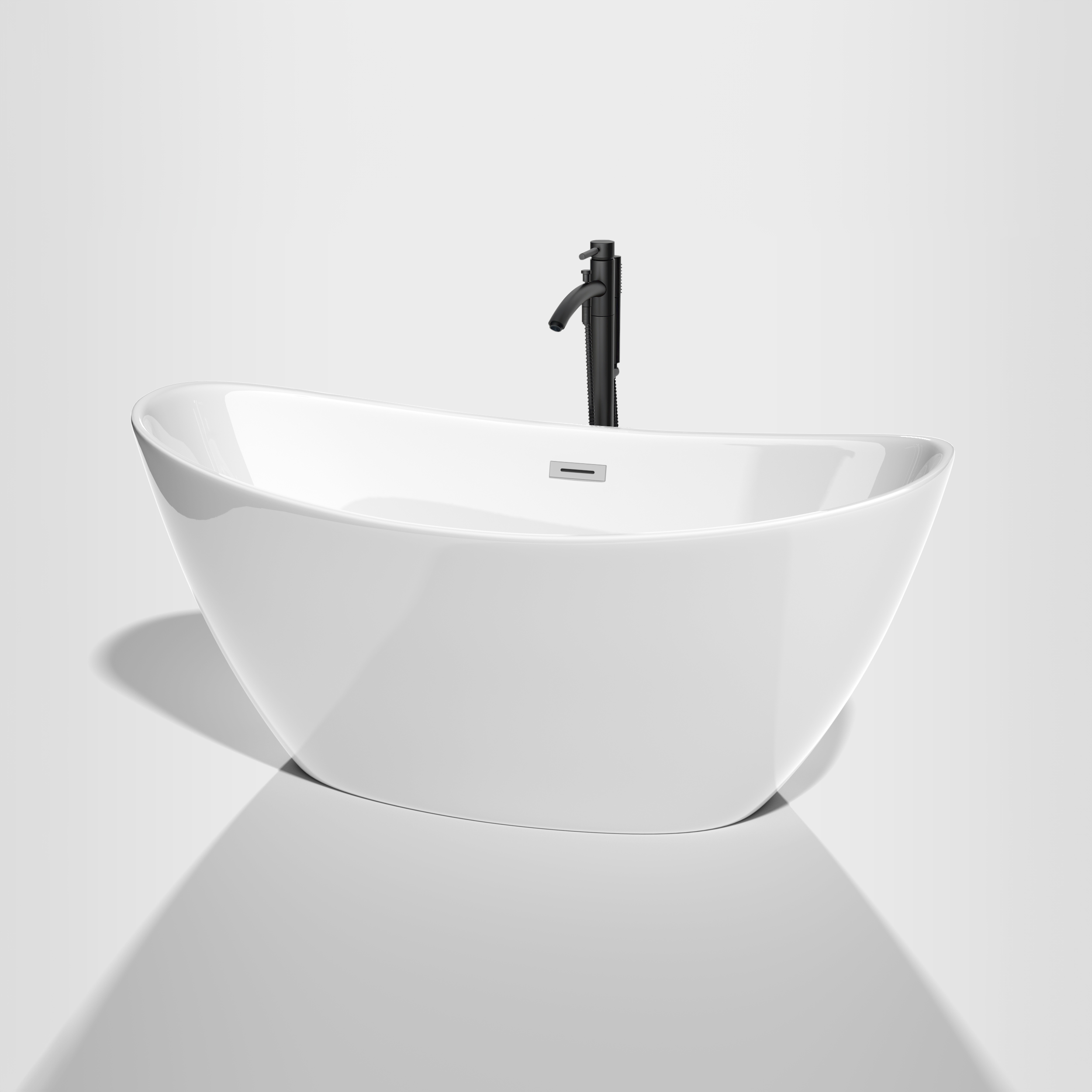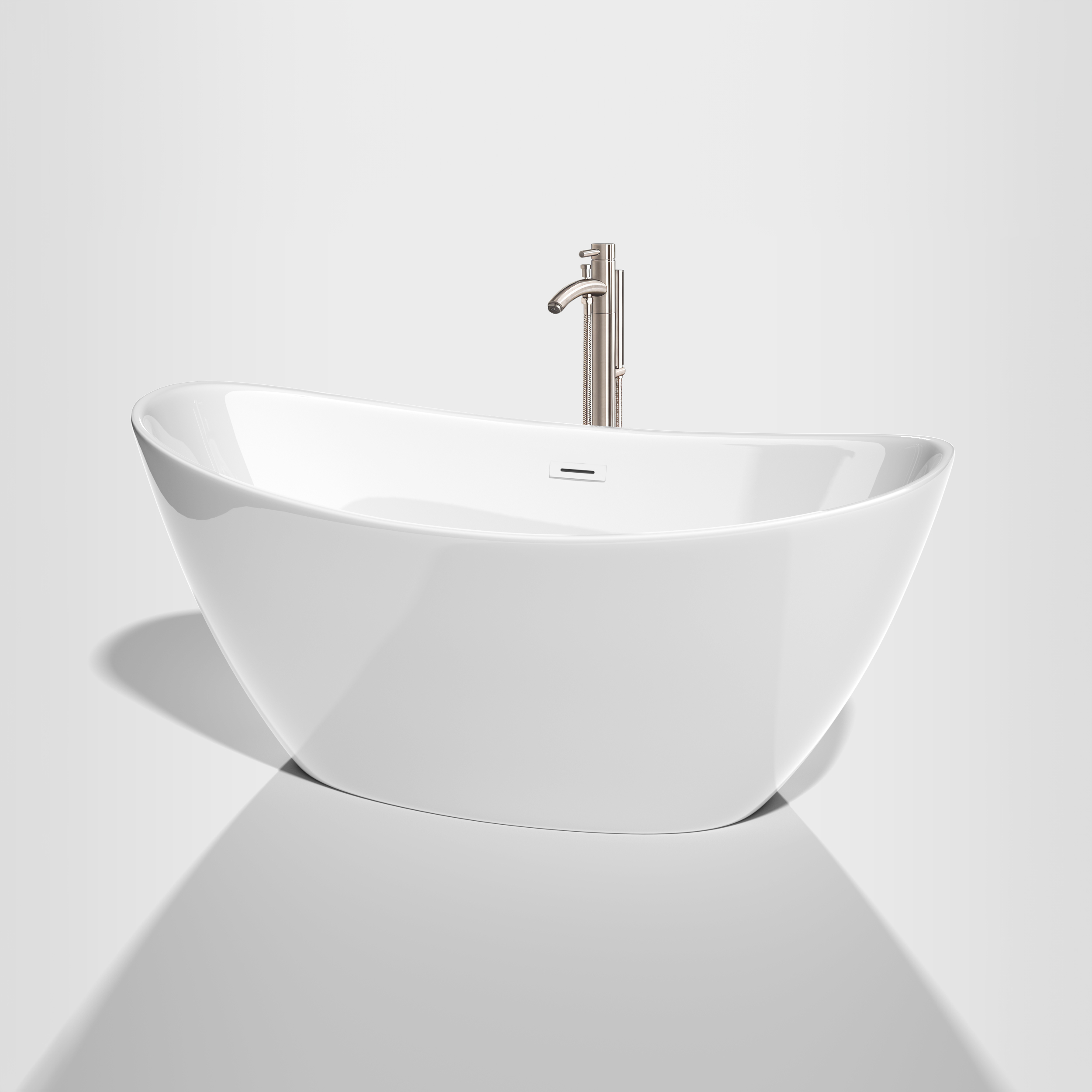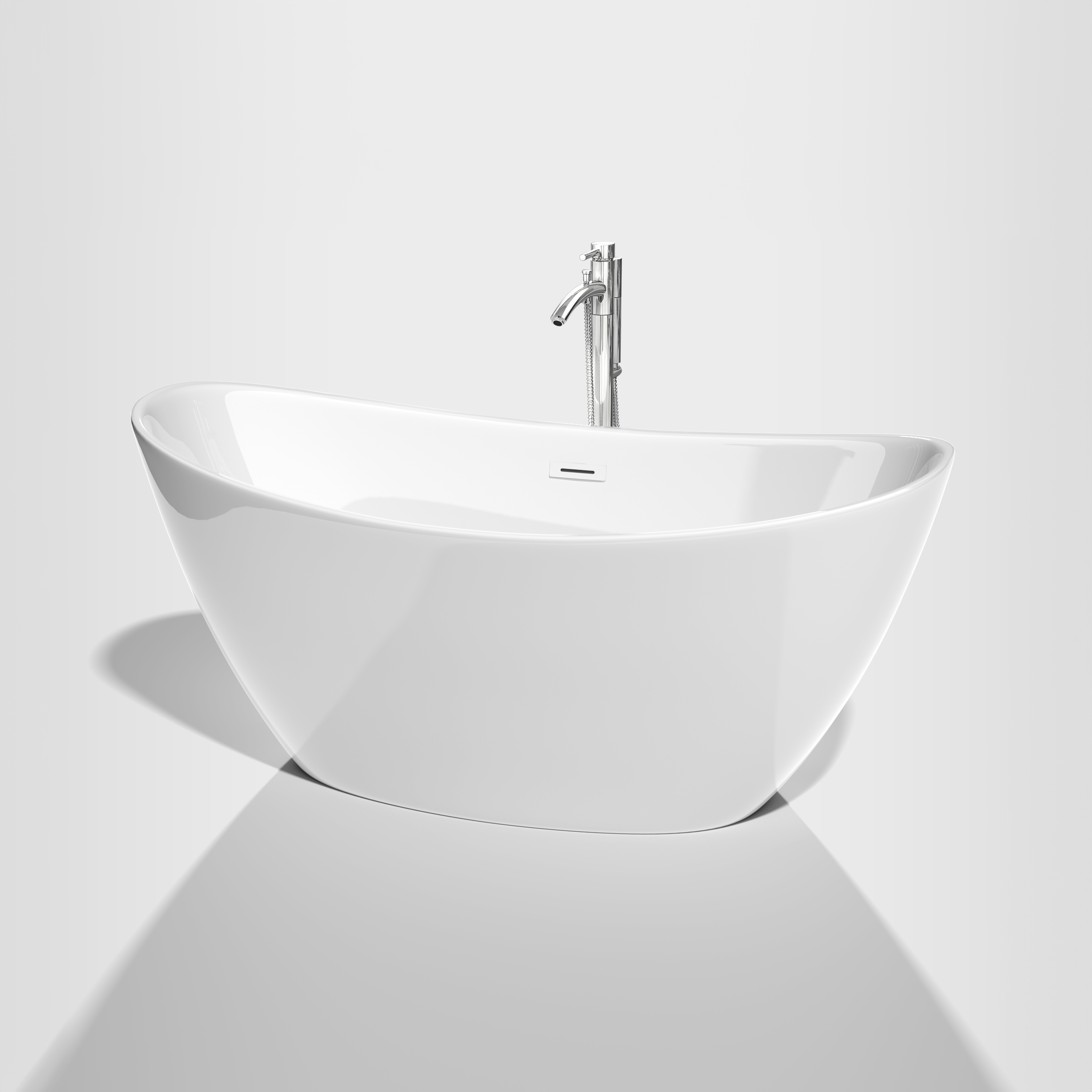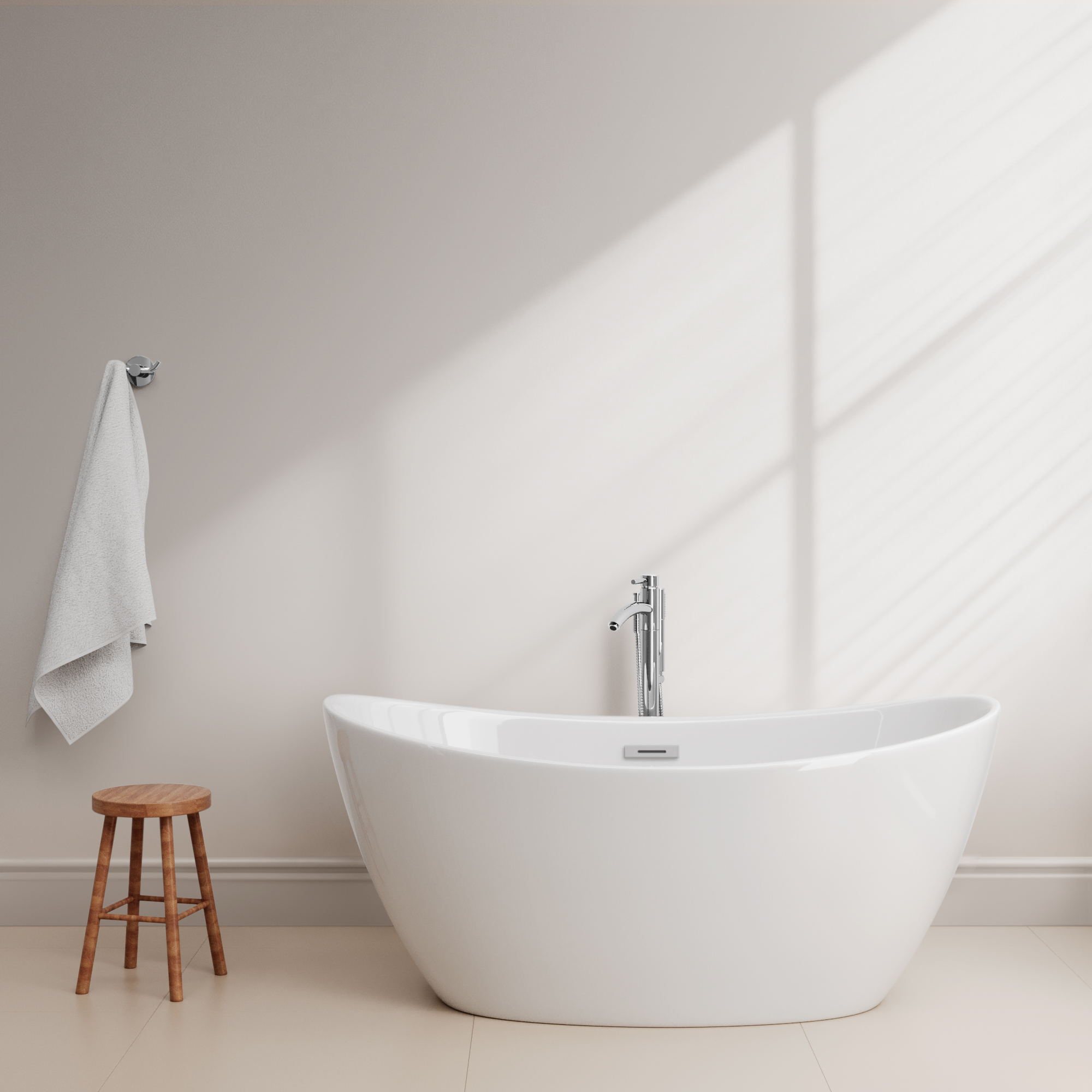Transform your bathroom into a luxurious spa retreat with this beautiful white acrylic double slipper tub. Designed with gracefully sloped ends, this freestanding bathtub provides the ultimate comfort and support for a relaxing soak. The high-gloss acrylic finish not only adds a touch of elegance but also ensures durability, heat retention and easy maintenance, with a smooth, non-porous surface. Its lightweight yet sturdy construction makes installation simple. This tub is perfect for both classic and modern bathroom designs, making it the ideal centerpiece for unwinding after a long day. Available in 2 sizes and built for a more comfortable and generous bathing experience.
