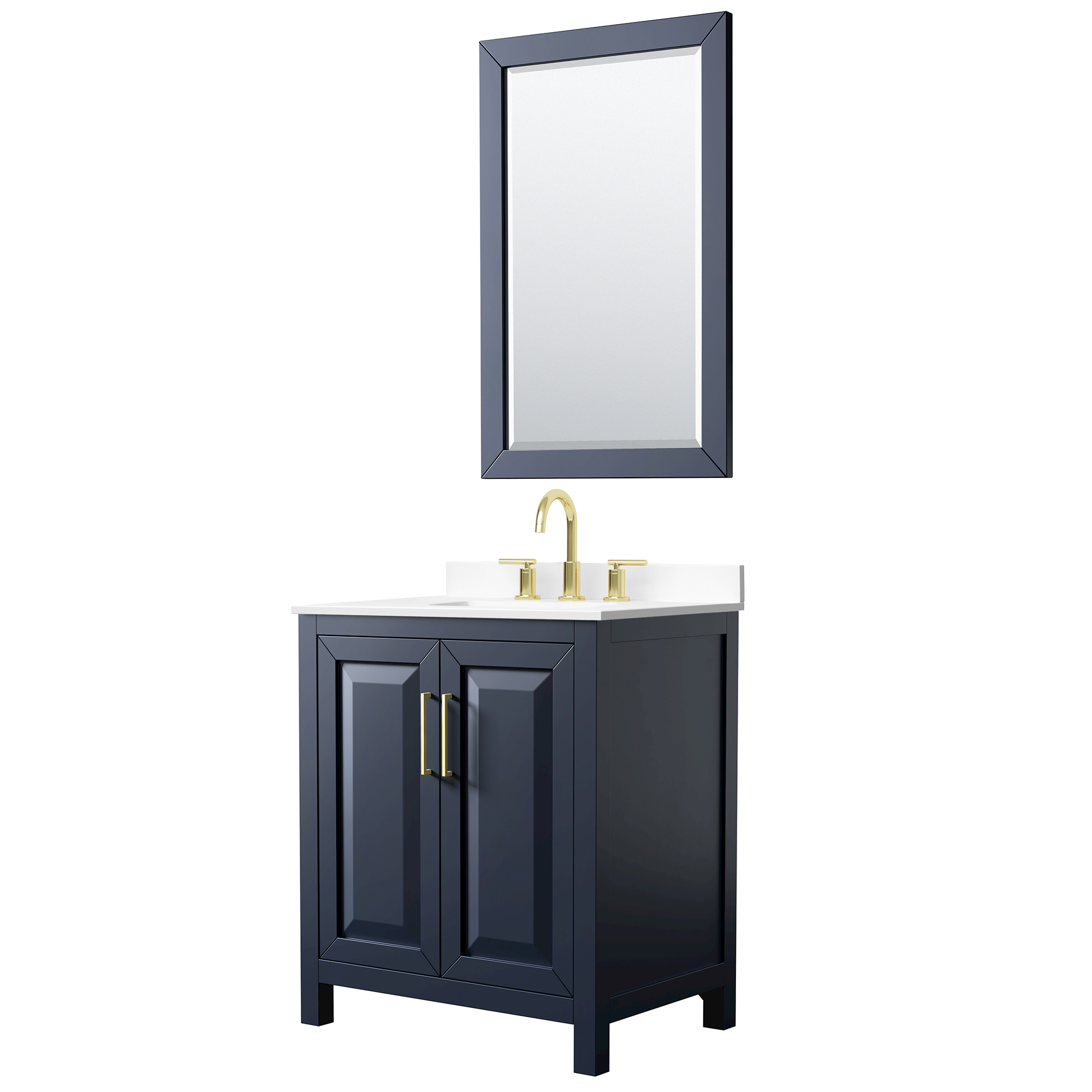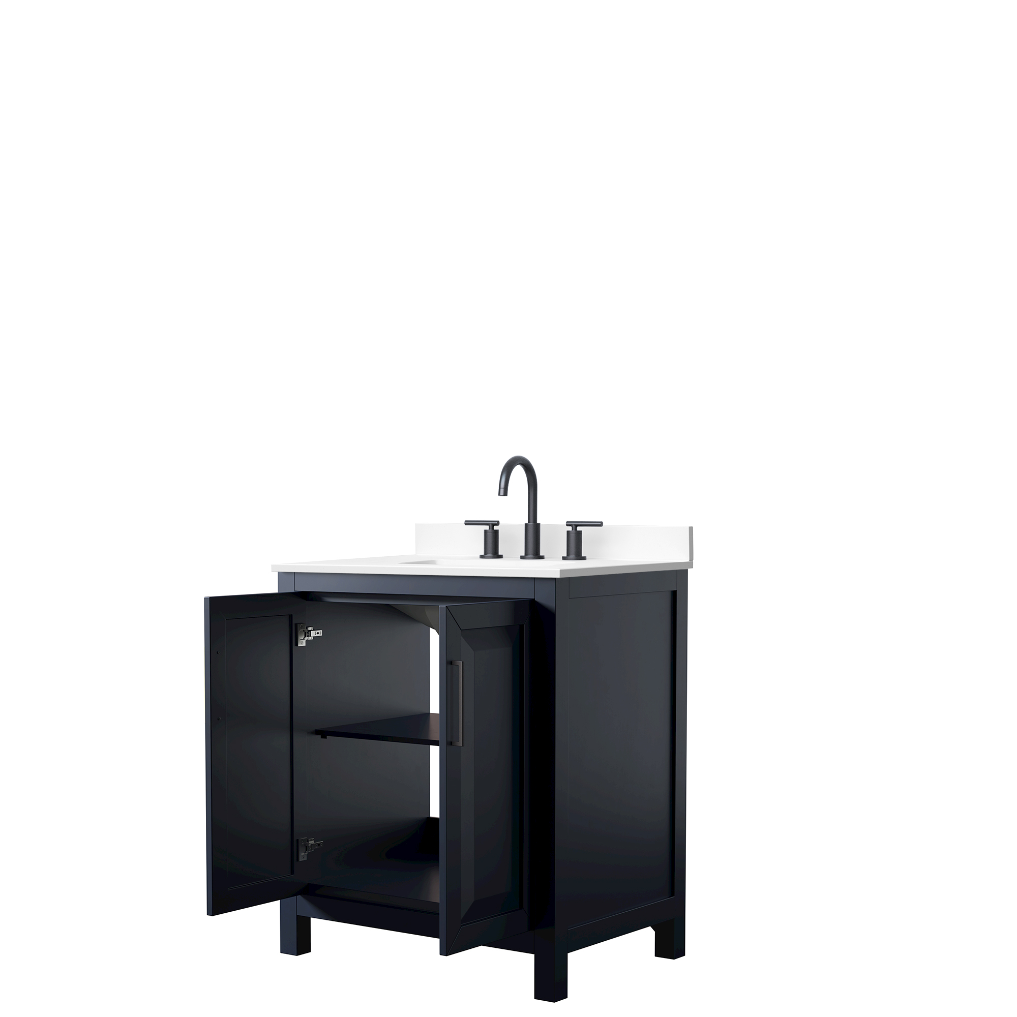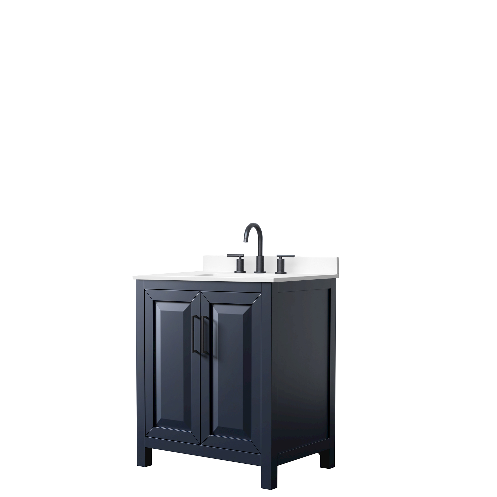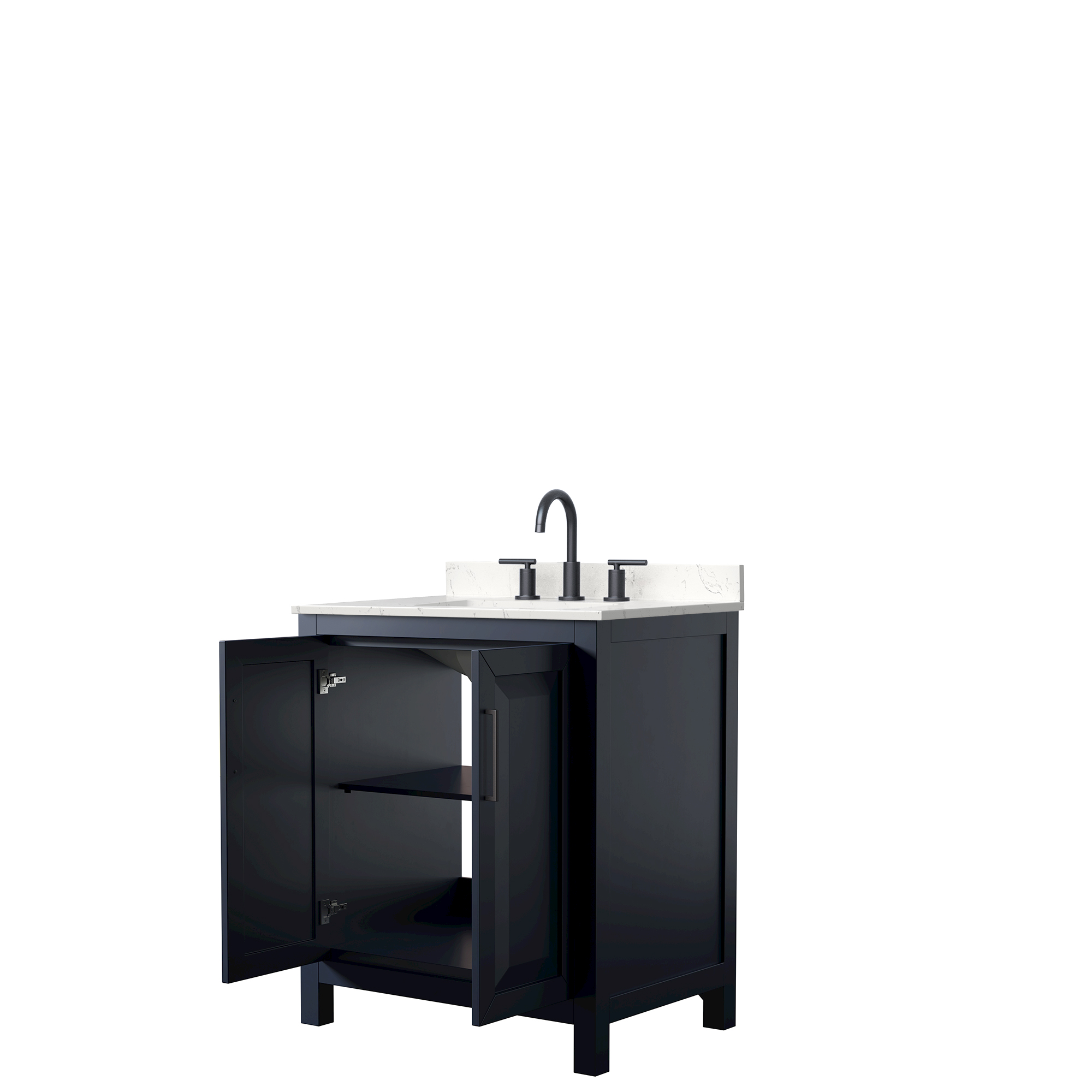 The beautiful Daria collection vanities stand out in any bathroom with strong, clean lines, raised panels and elegant counters with square sinks. There's plenty of cabinet space, the doors are soft-close construction, and matte black or brushed gold finish detailing completes the look. Daria vanities deftly combine the function of today with a nod to the elegance of the past. It's the new modern - classic styling with a contemporary twist.