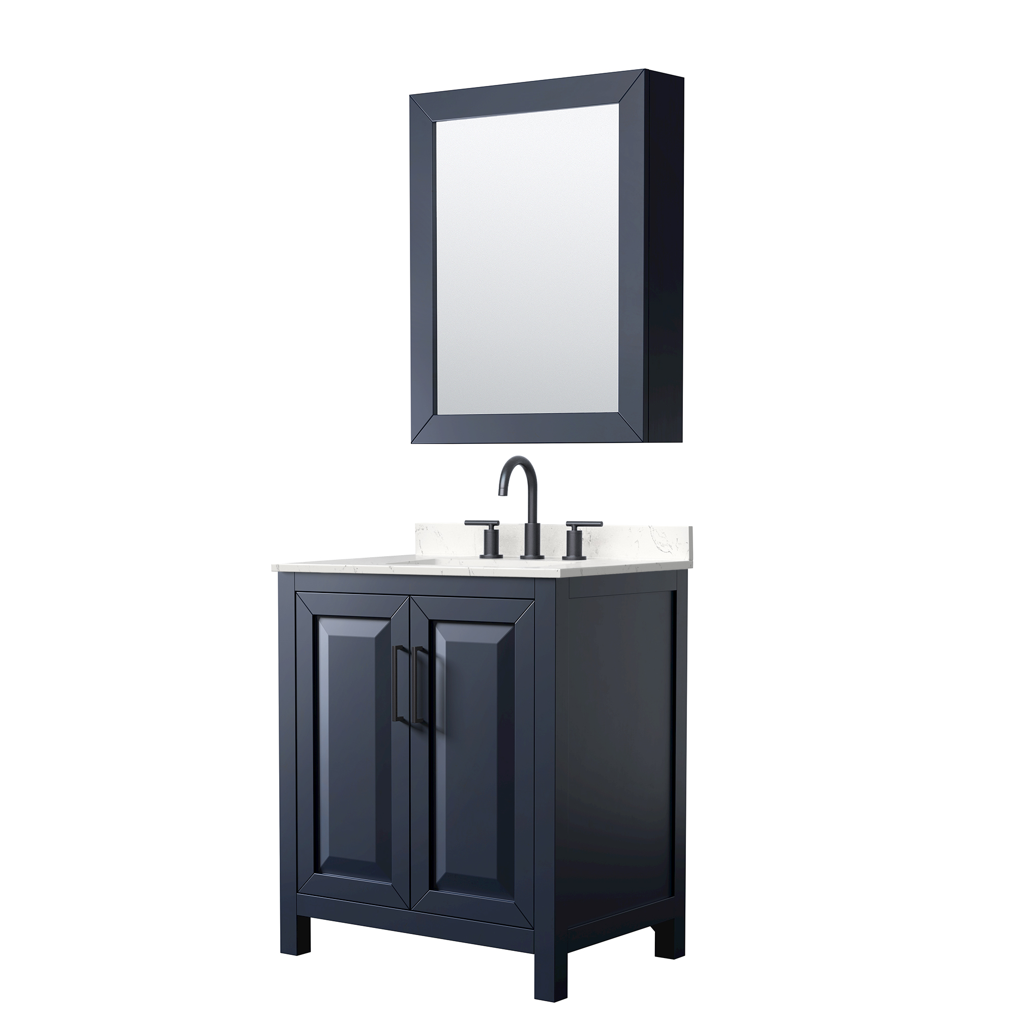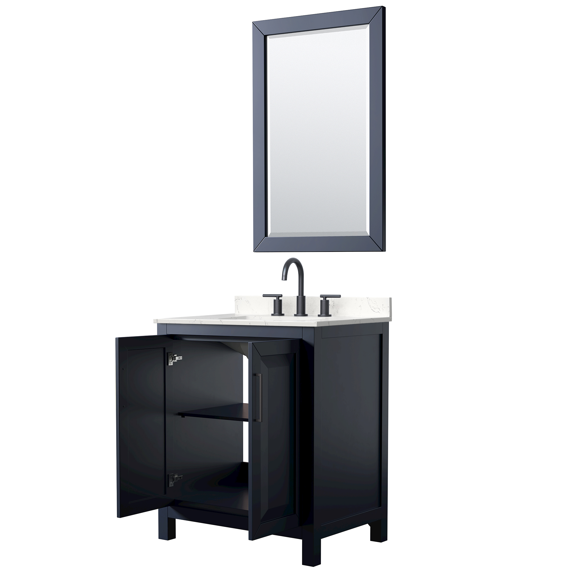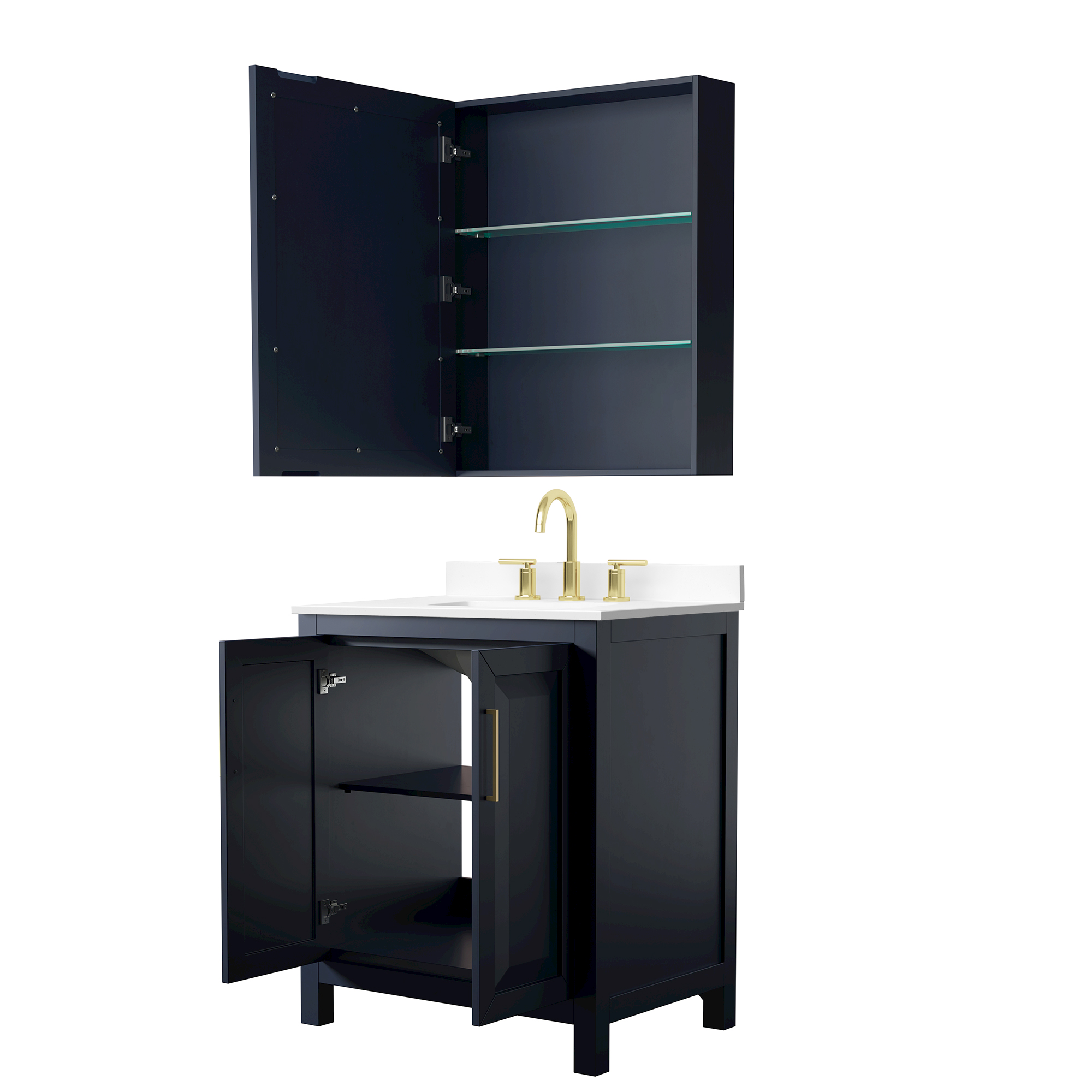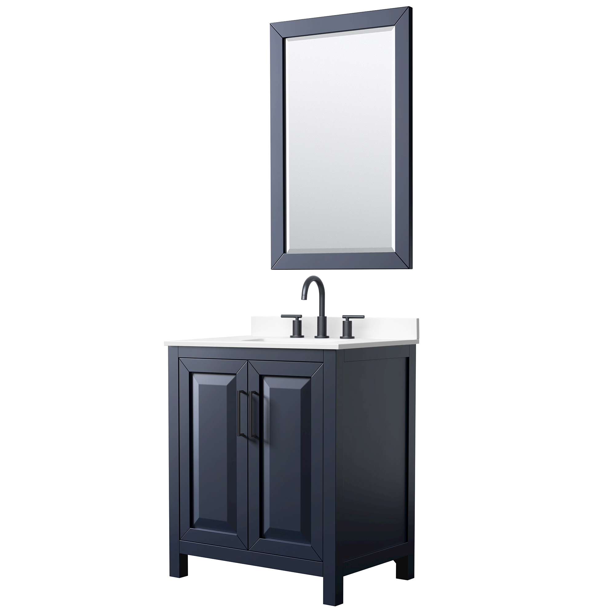 The beautiful Daria collection vanities stand out in any bathroom with strong, clean lines, raised panels and elegant counters with square sinks. There's plenty of cabinet space, the doors are soft-close construction, and matte black or brushed gold finish detailing completes the look. Daria vanities deftly combine the function of today with a nod to the elegance of the past. It's the new modern - classic styling with a contemporary twist.