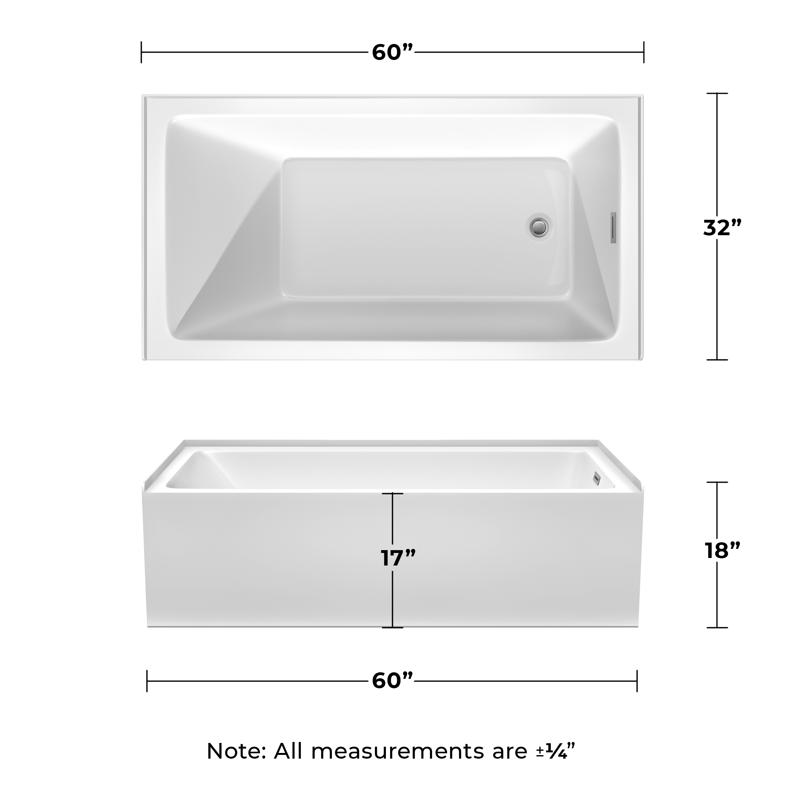 Grayley Alcove 60" Bathtub, Right Side Drain (60"Lx32"Wx18"H)