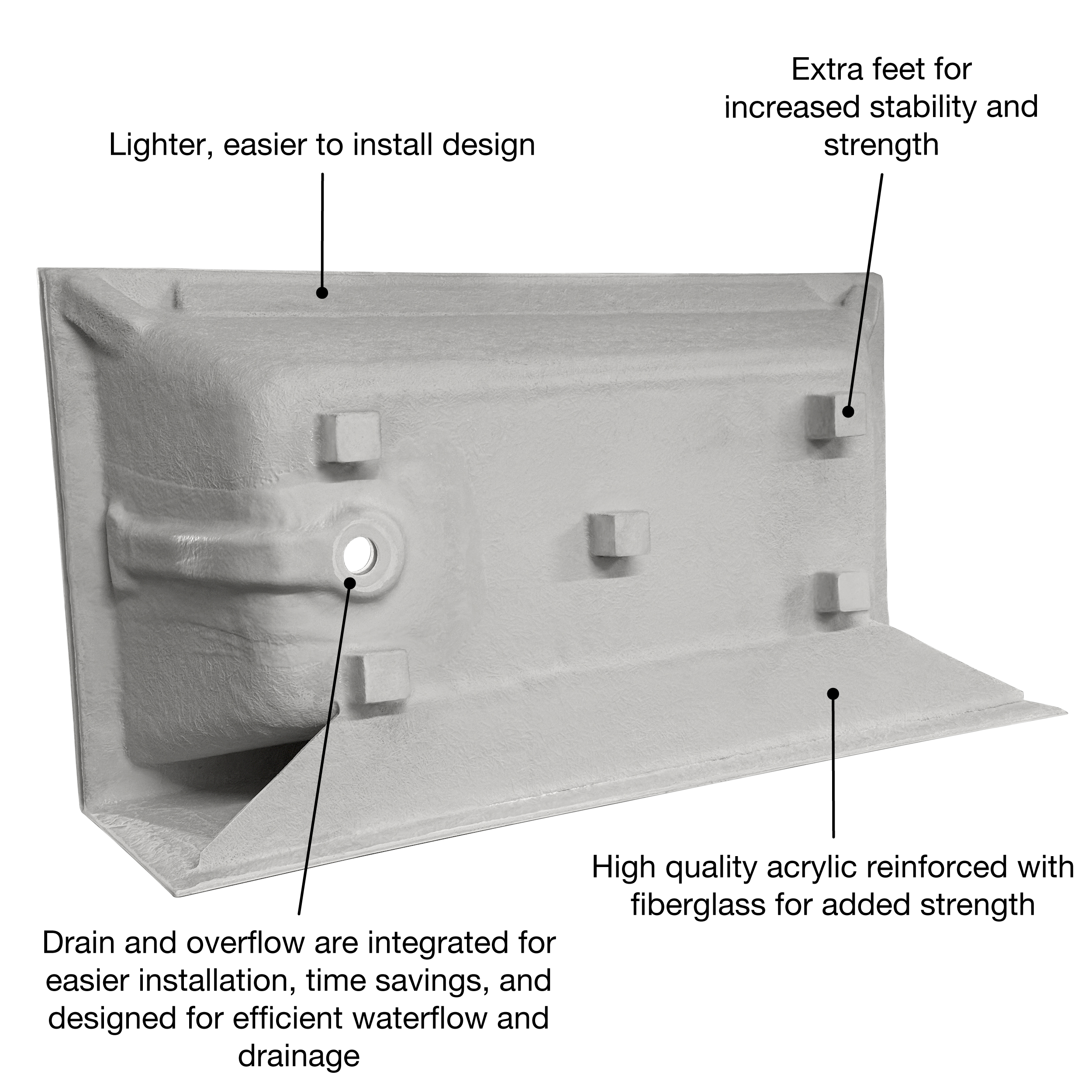 • Made from reinforced acrylic: A strong, flex resistant material with a smooth finish. Acrylic fixtures are sanitary, attractive, and easy to maintain and clean.