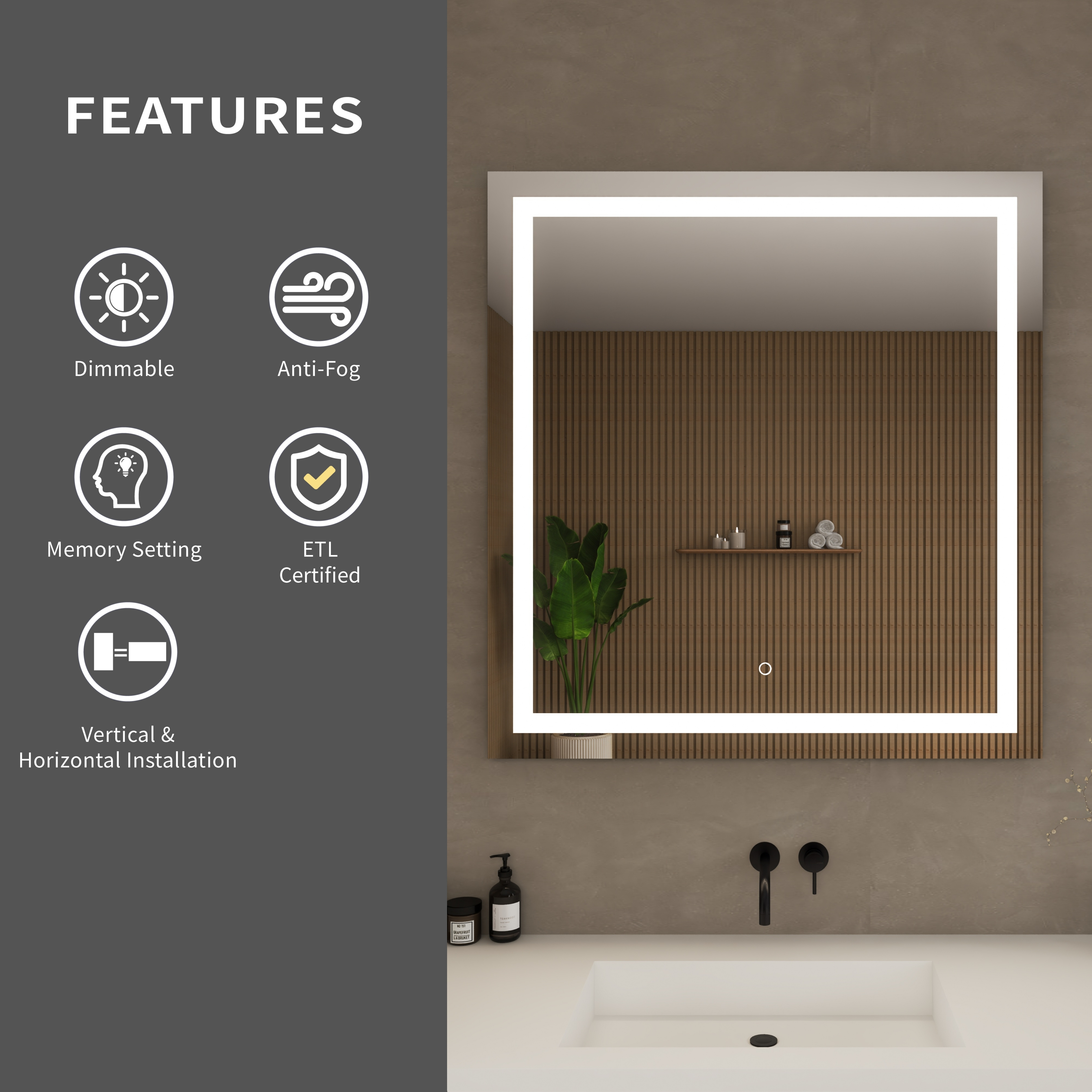 The Lucia LED Mirror Collection by Wyndham Collection combines modern functionality with user-friendly design. Equipped with a sleek touch sensor button, Lucia allows users to power the mirror on and off and adjust brightness directly from the mirror itself. The built-in dimming feature lets you create the perfect level of illumination for any setting, while the integrated defogger ensures a consistently clear reflection, even in humid bathroom environments. With its streamlined design and intuitive operation, the Lucia Collection is an excellent choice for customers seeking both convenience and contemporary style in their bathroom.