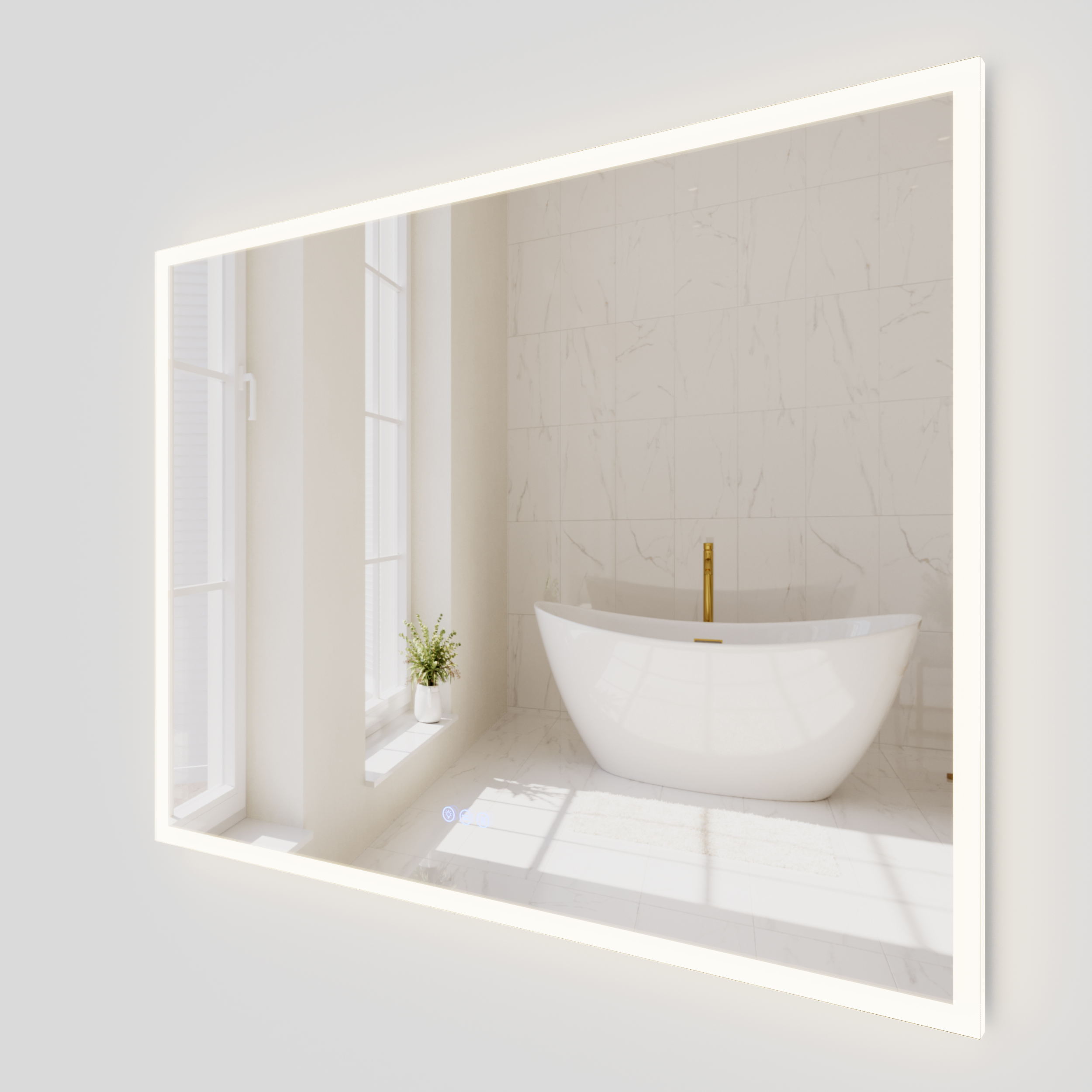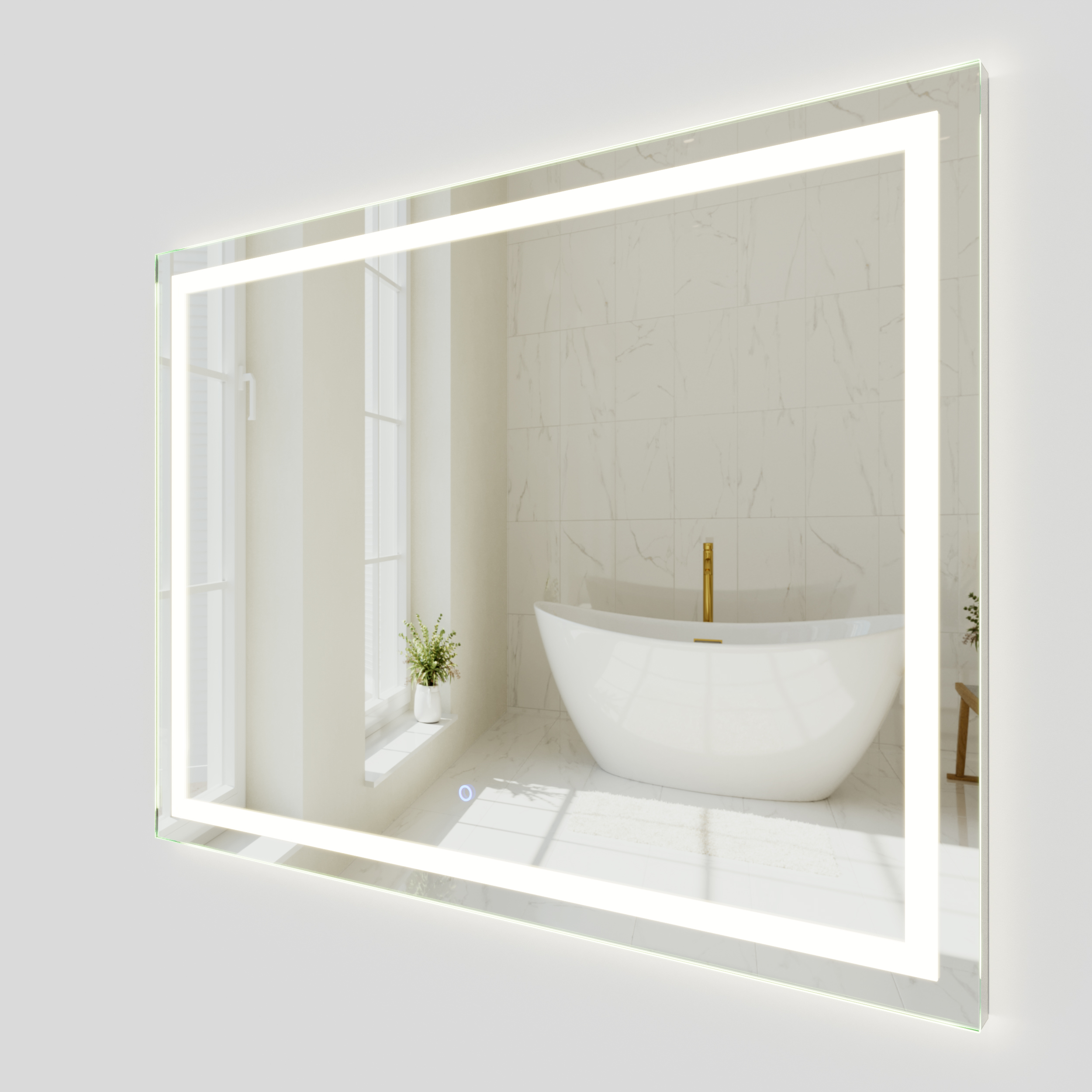 Hilton 48 in. W x 36 in. H Frameless LED Perimeter Lighted Bathroom Vanity Mirror with Dimmer and Defogger without button