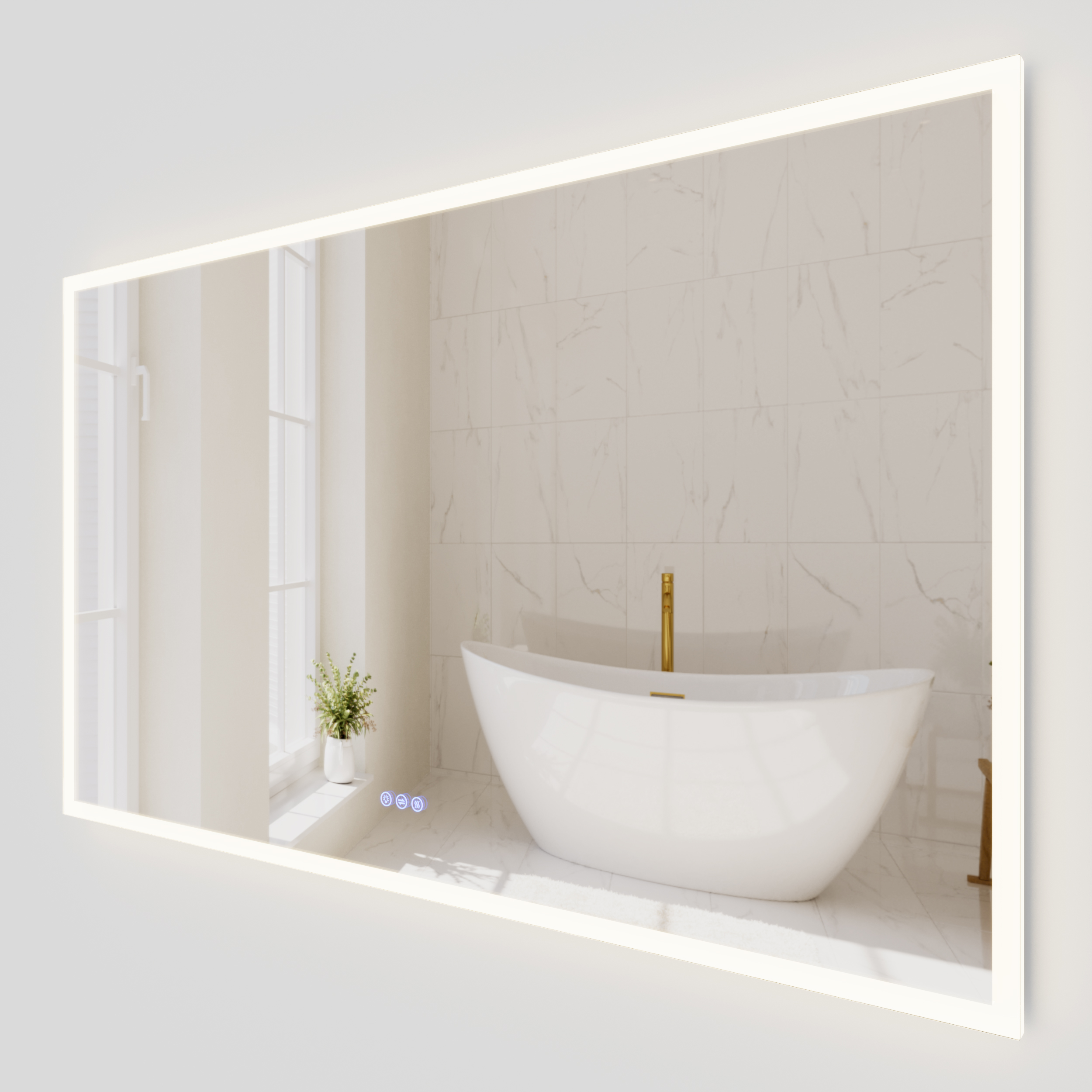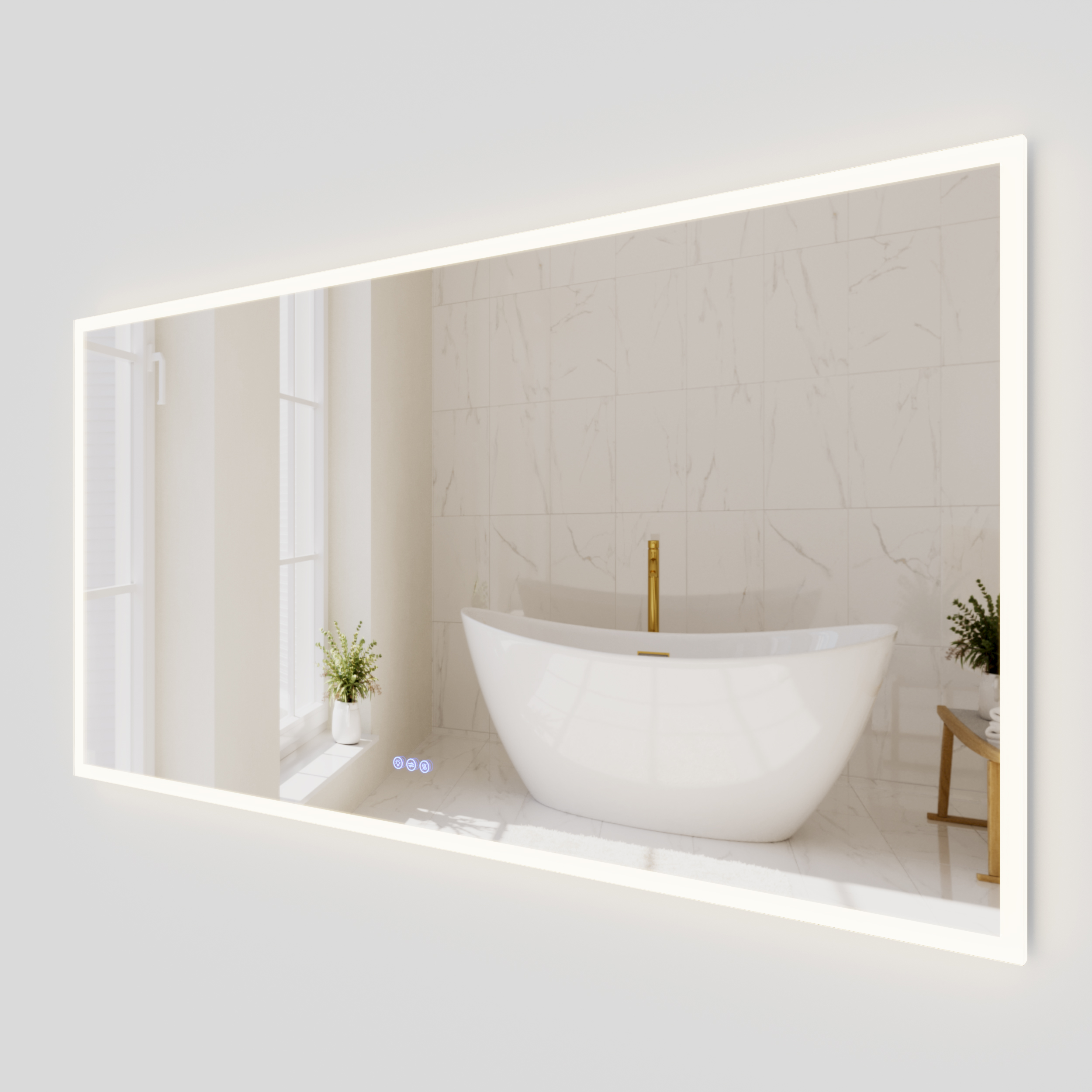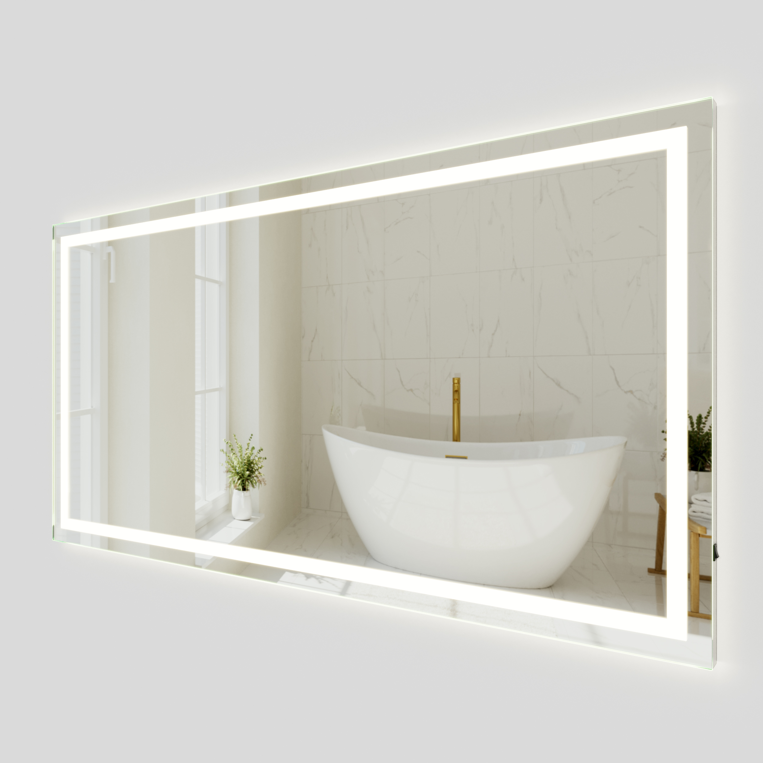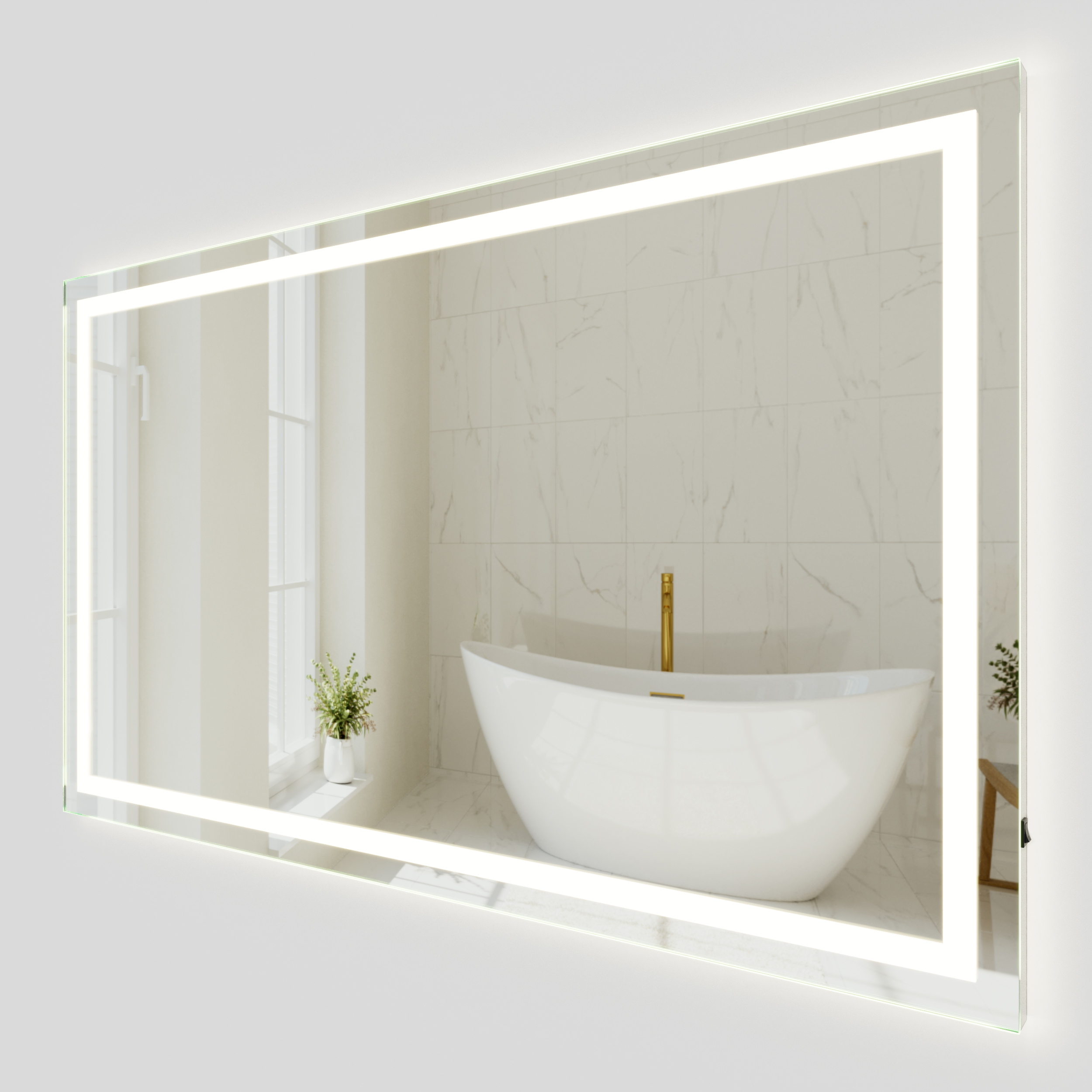 Hilton 60 in. W x 36 in. H Frameless LED Perimeter Lighted Bathroom Vanity Mirror with Dimmer and Defogger without button