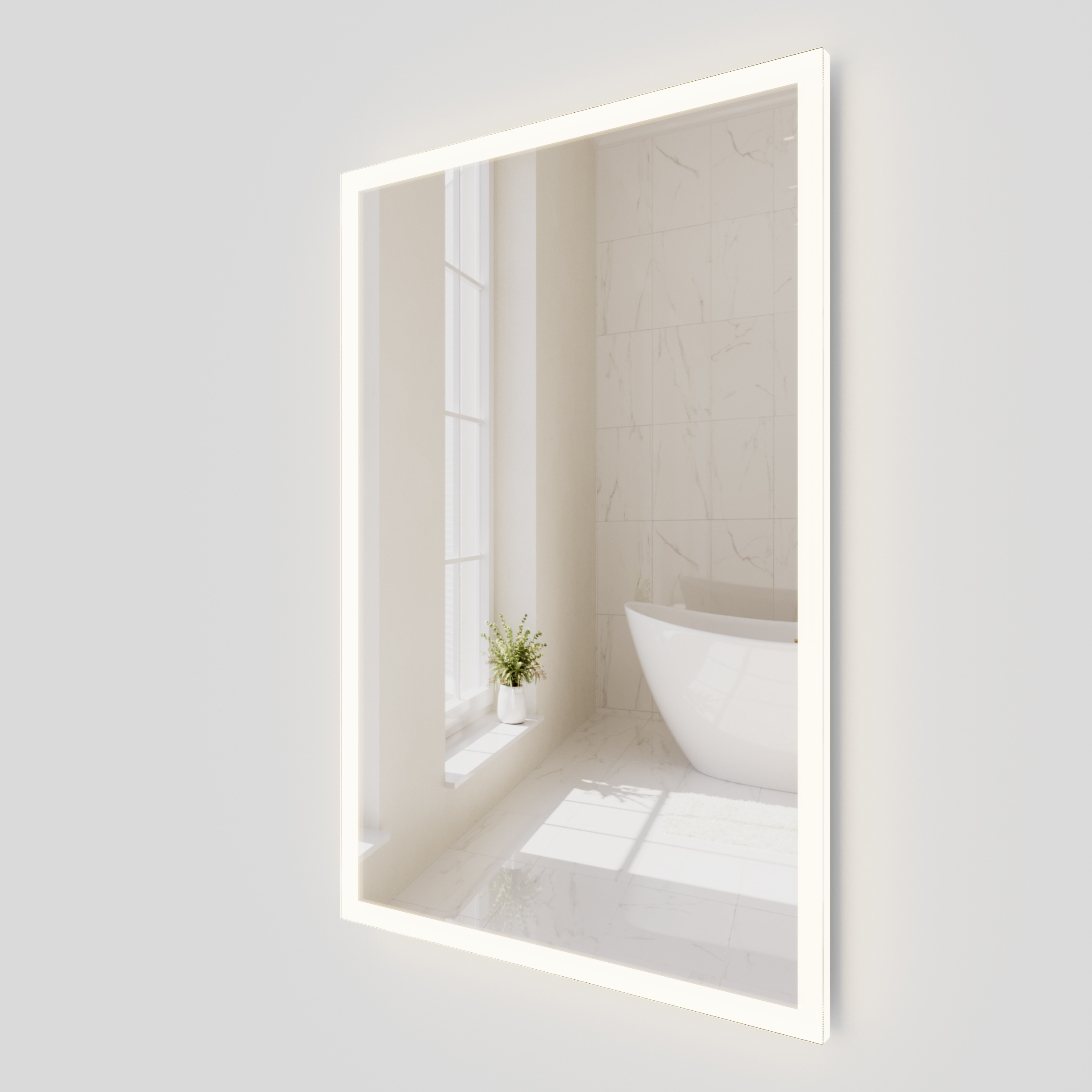 Hilton 24 in. W x 36 in. H Frameless LED Perimeter Lighted Bathroom Vanity Mirror with Dimmer and Defogger without button